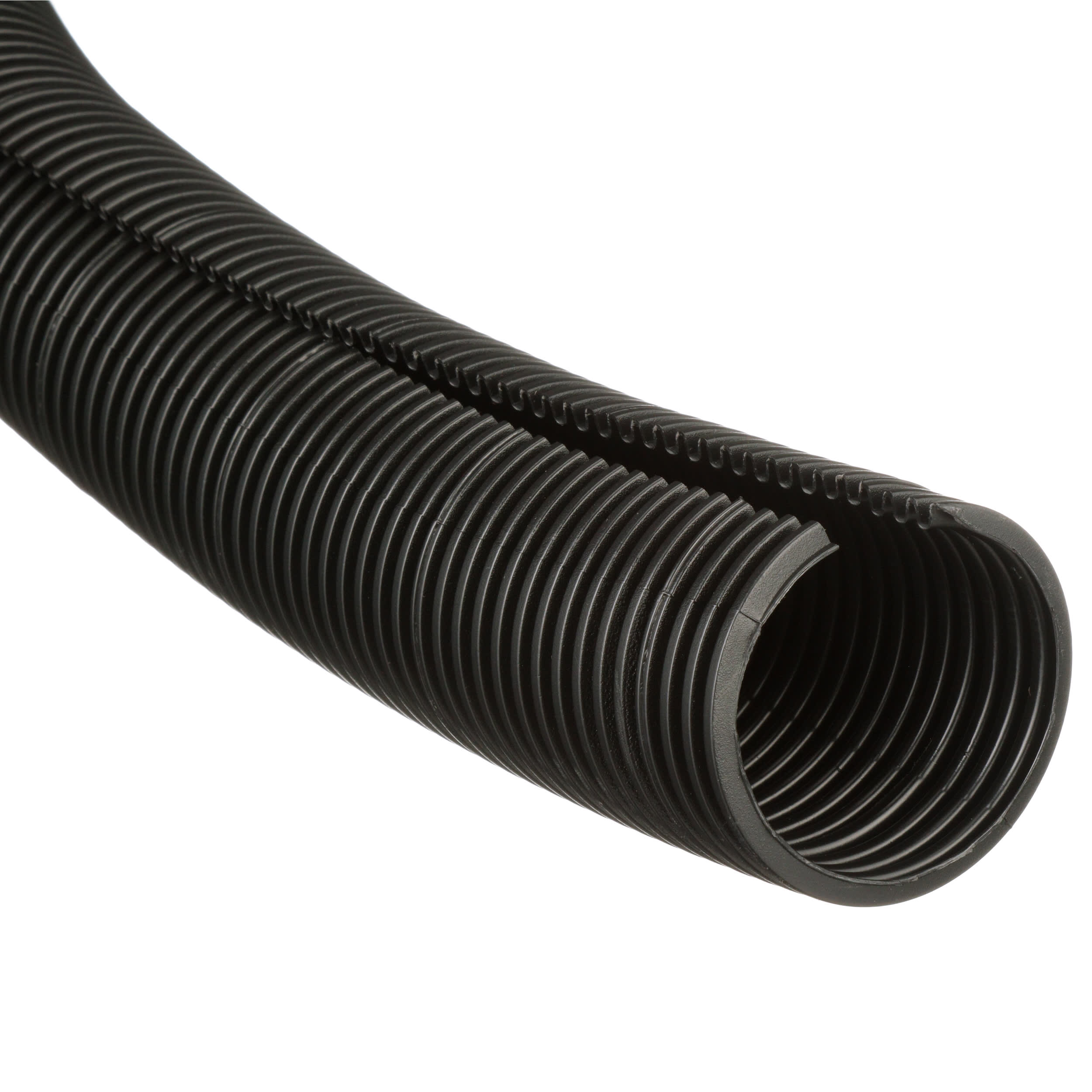 La gaine annelée à paroi fendue CLT188PUV-0 protège les câbles des impacts et de l'abrasion. Cet élément est doté d'une fente pour une installation facile dans un faisceau de fils ou un ensemble de faisceaux préassemblés, ce qui augmente la productivité. Cet élément est fixé par des colliers de serrage et des accessoires. Pour les applications extérieures. Résistant aux UV, indice d'inflammabilité UL94-HB et température maximale de 85 °C. Polypropylène. 47,75 mm x 270 m. Diamètre intérieur : 48,01 mm. Coloris noir. 1 unité par package.