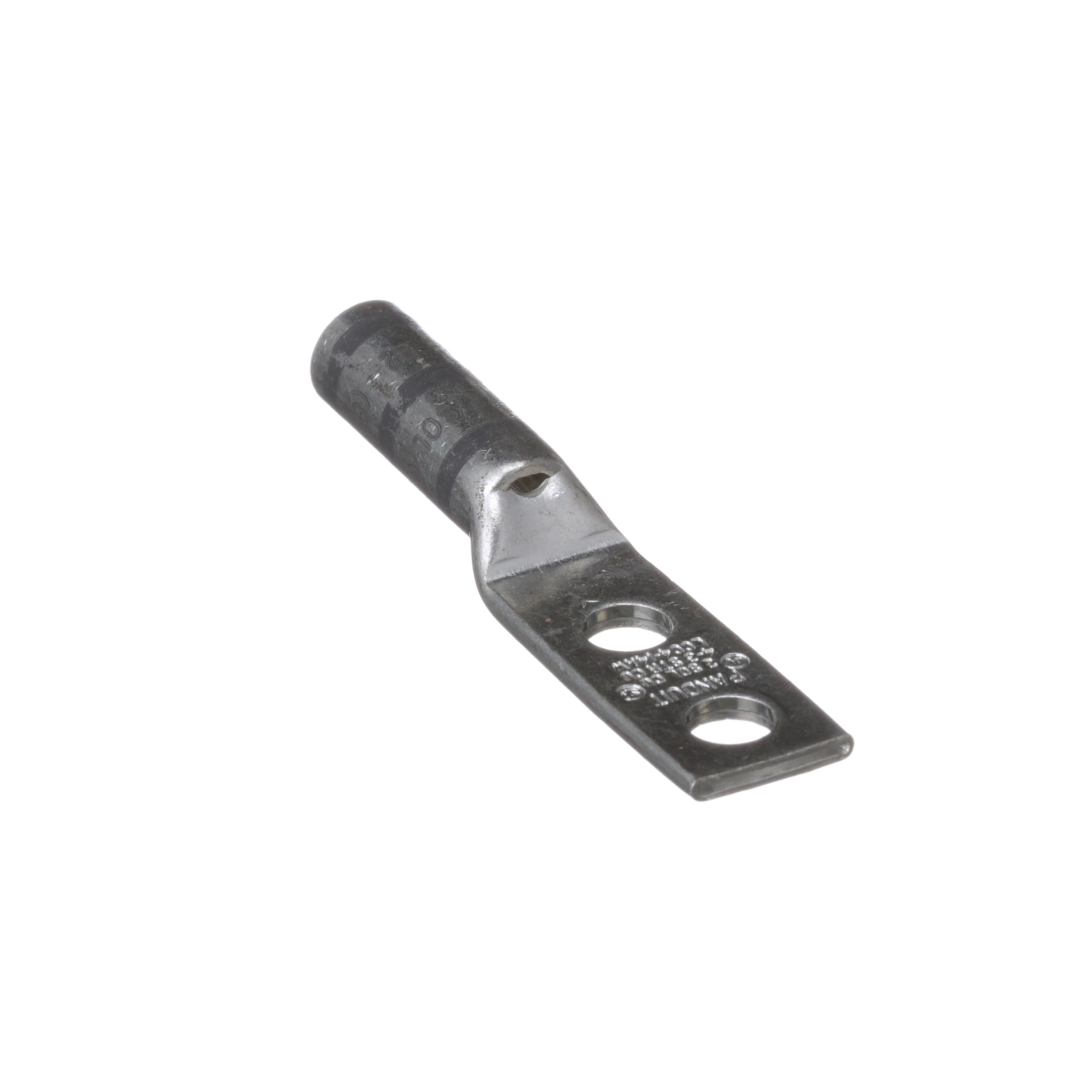 Cosse à deux trous à long fût à fenêtre, fil #4 — #3 AWG STR, #2 AWG SOL, trou de goujon 1/4, espacement de trou 0,63.