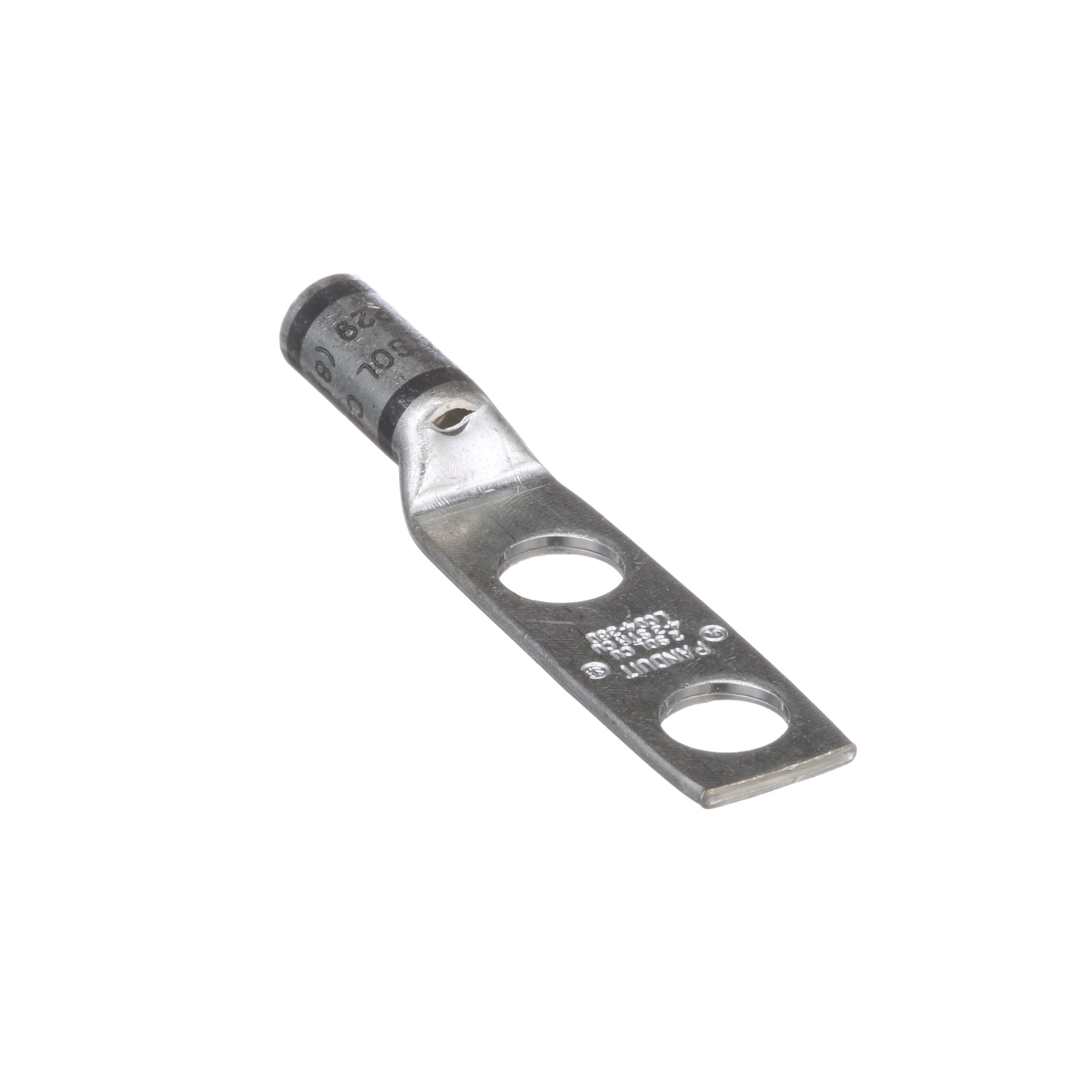 Cosse à deux trous à long fût à fenêtre, #4 — #3 AWG STR, #2 AWG SOL, trou de goujon 3/8, espacement de trou 1.