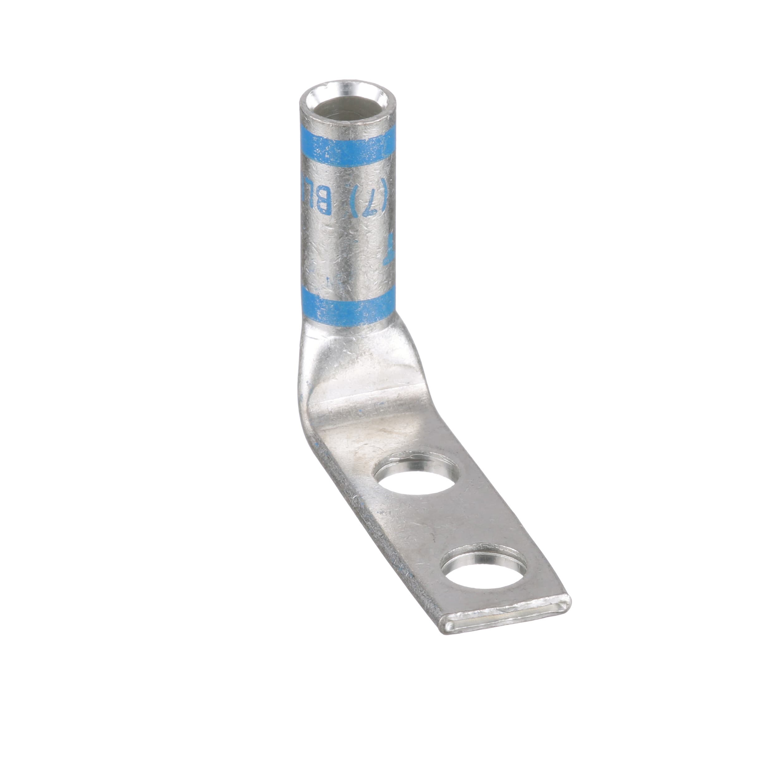 La cosse de compression étamée en cuivre à deux trous et fût standard LCD6-14AF-L possède des fûts à codage couleur et marquage avec numéros d'index de matrice Panduit et concurrents pour une sélection de matrice de sertissage adéquate. Une fenêtre d'inspection permet d'assurer visuellement l'insertion complète des conducteurs, et la finition étamée permet d'inhiber la corrosion. Homologué UL et certifié CSA pour 35 kV et température homologuée à 90 °C.