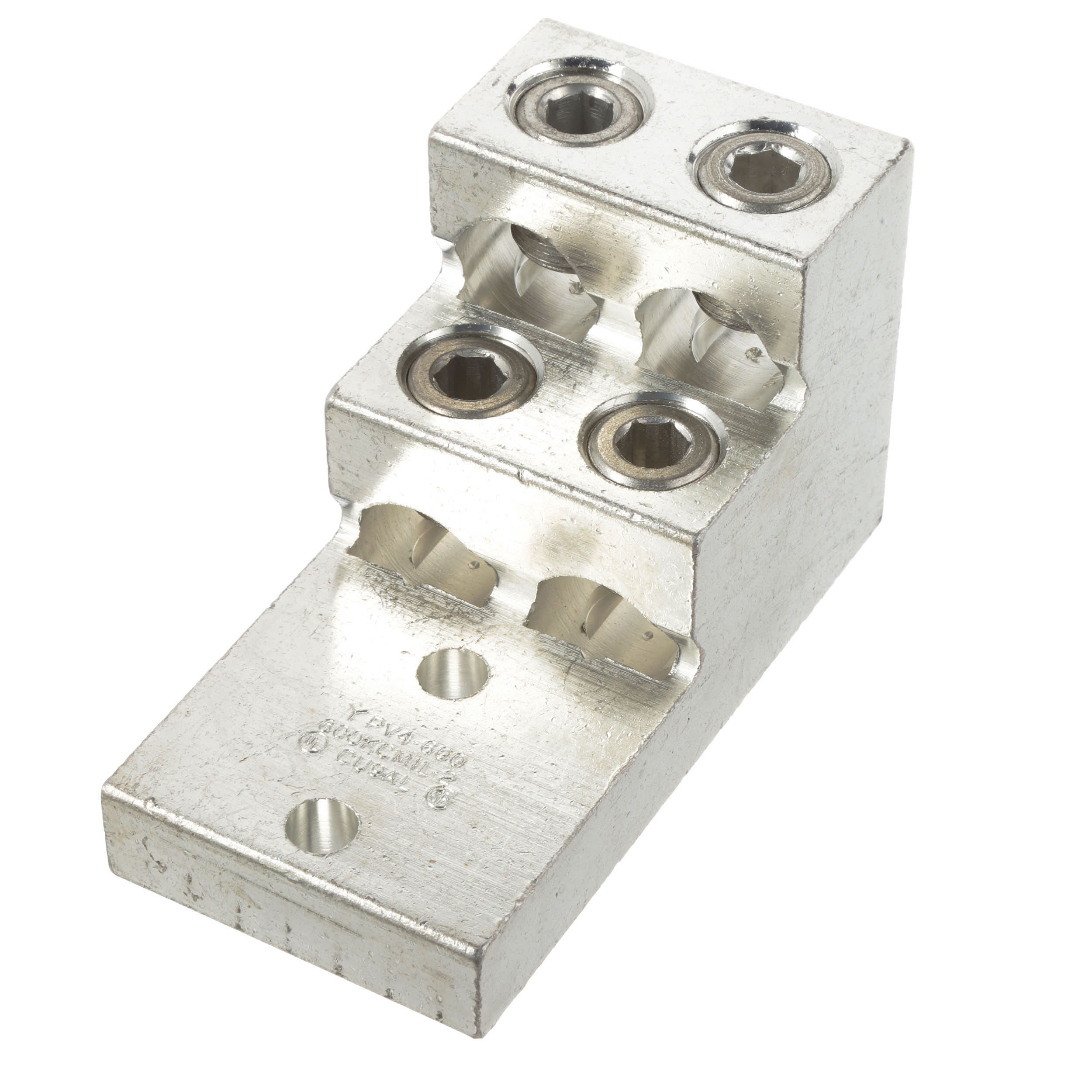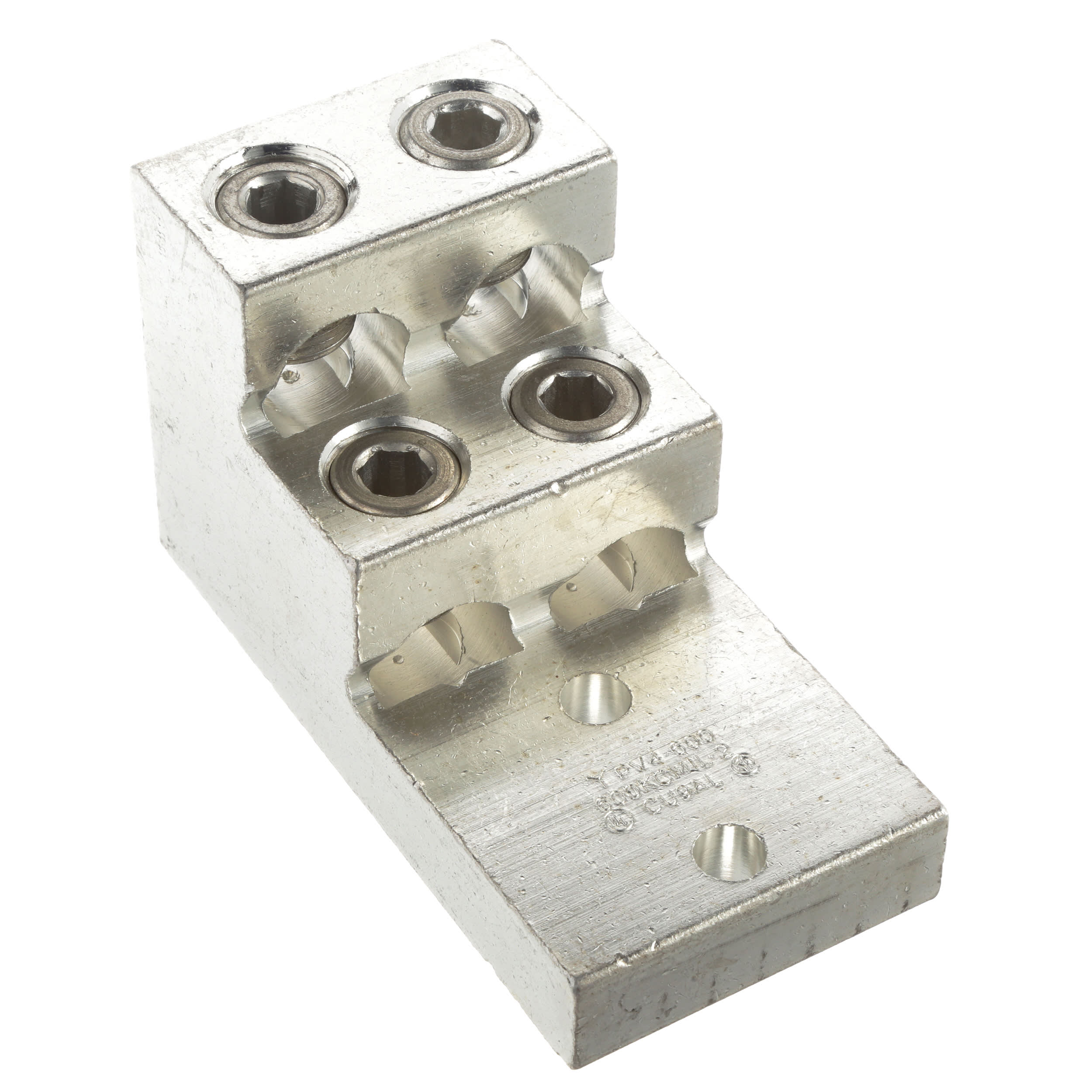 Cosse à deux trous et quatre fûts verticaux, aluminium, type LAM4SB, #2 AWG - 600 kcmil, trou de goujon 3/8 (9,5 mm).