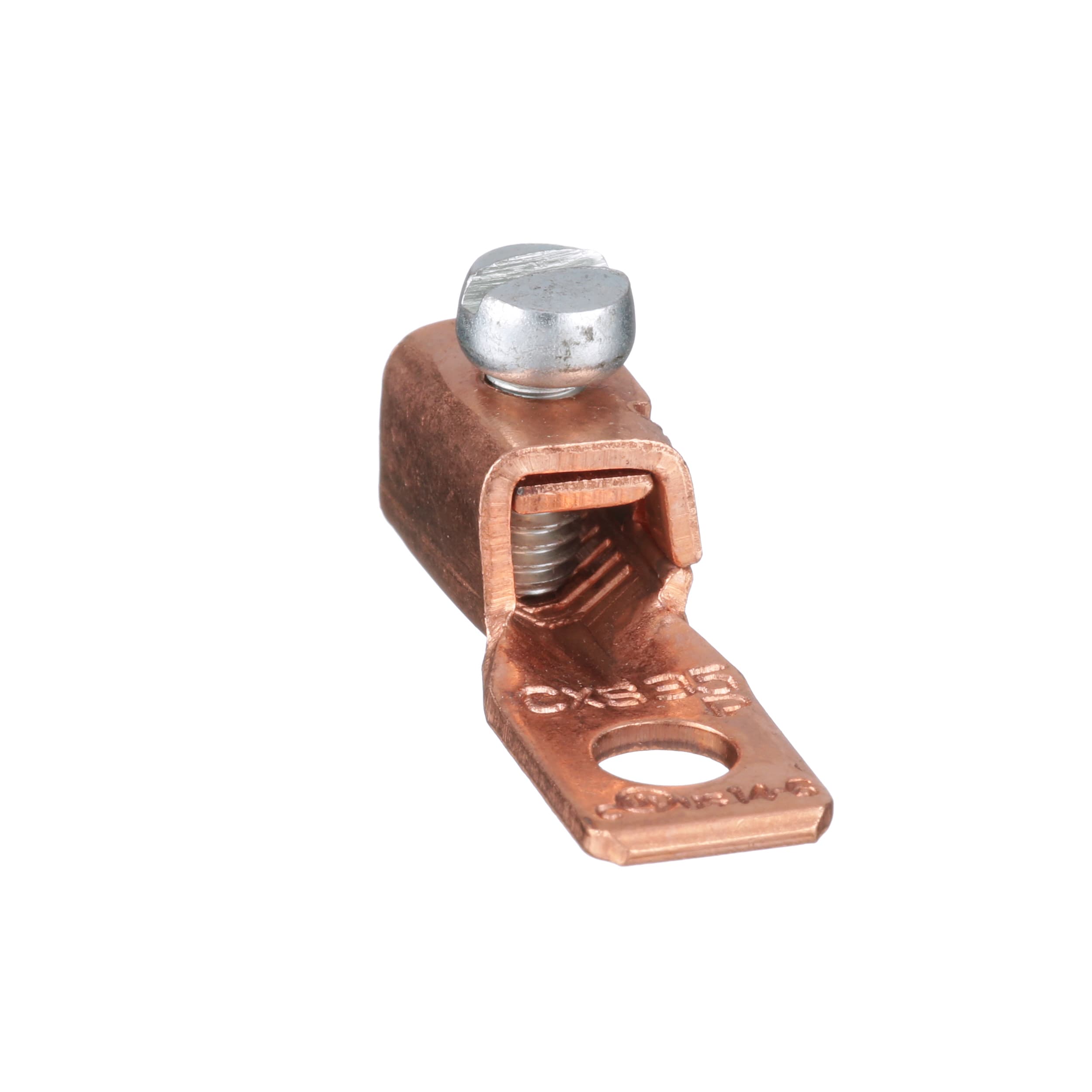 Cosse pour conn. méca. en cuivre CXS35-36-C à 1 trous et à un fût, fabriquée à partir de cuivre électrolytique à haute résistance. Fournit des performances élec. et méca. de première qualité pour une large gamme de capacité d'accueil de fils. Réduire les besoins en matière d'inventaire. Vis fendue en acier plaqué assure un contact électrique durable entre le conducteur et le connecteur. Barre de pression interne et collier à base en V pour une force d'attache uni. et assurer un contact positif.