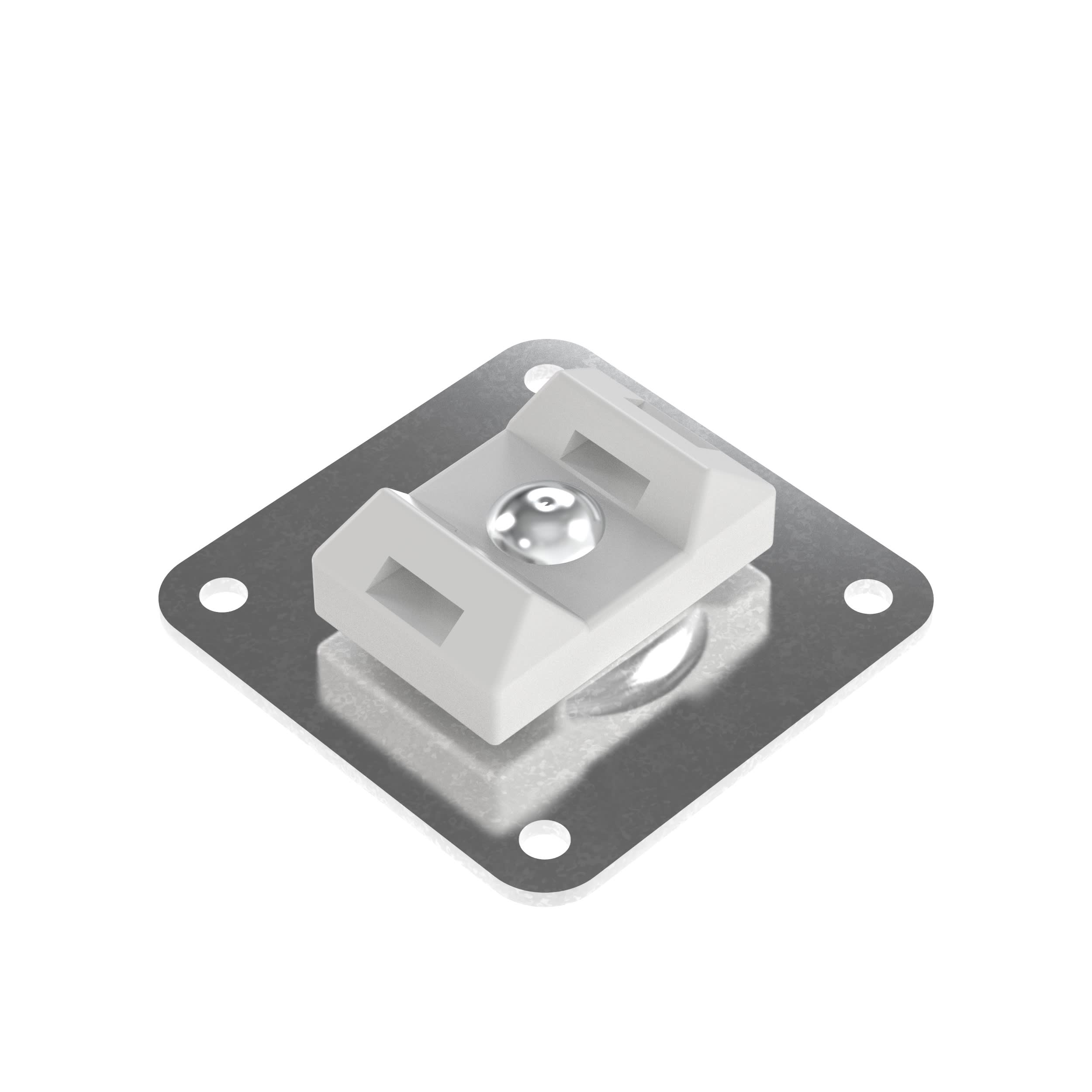 Les embases pivotantes fixées à l'aide d'époxy ASMS-A-T Panduit sont fixées à l'aide de l'époxy EMA fourni par l'utilisateur. Elles pivotent à 360° afin d'assurer une bonne orientation avec le faisceau et disposent de quatre trous d'inspection pour observer la couverture adhésive. Dimensions 44,5 mm × 28,7 mm, pour les environnements intérieurs. L'embase est en polyamide et la base est en aluminium. De coloris naturel et disponibles en packages de 200 unités.