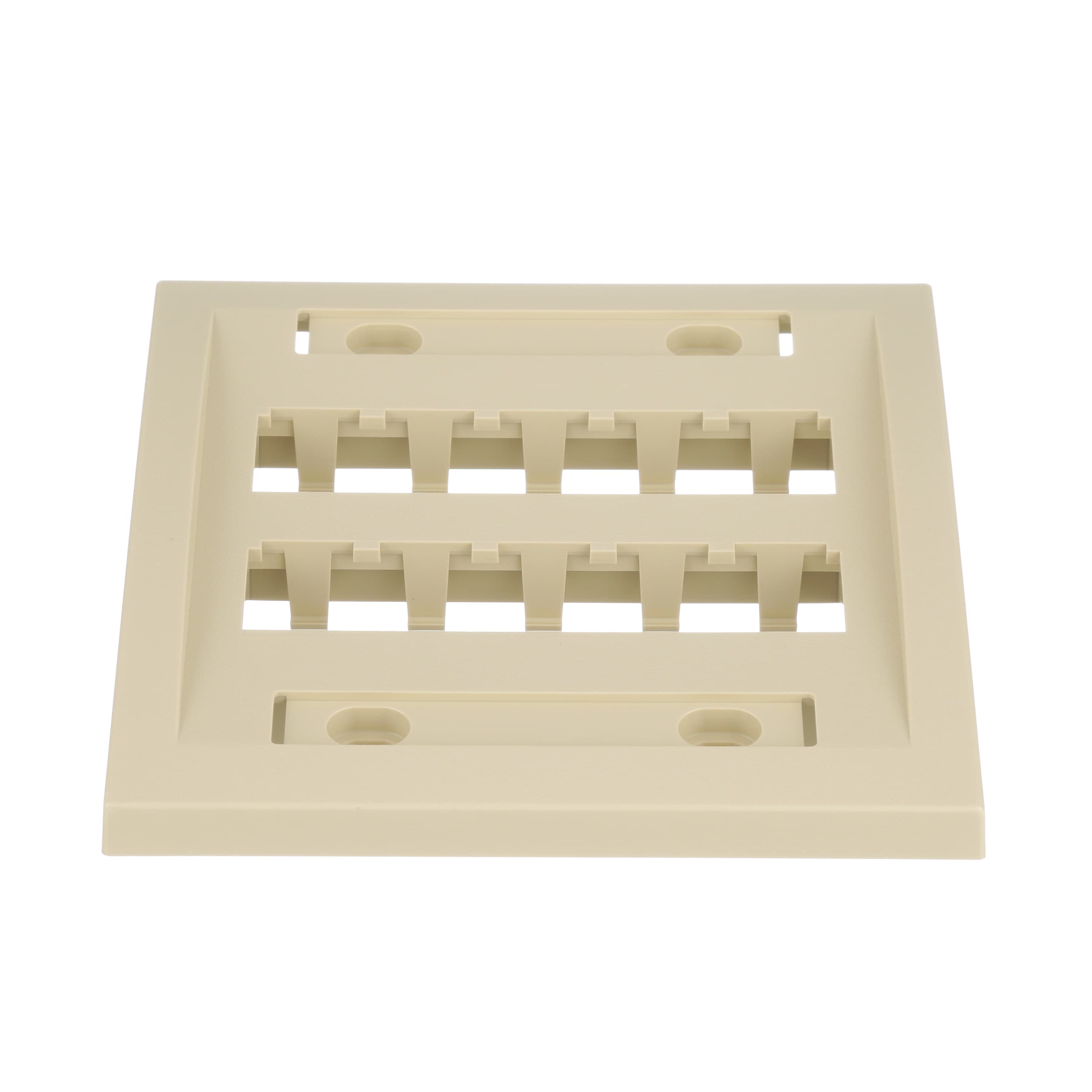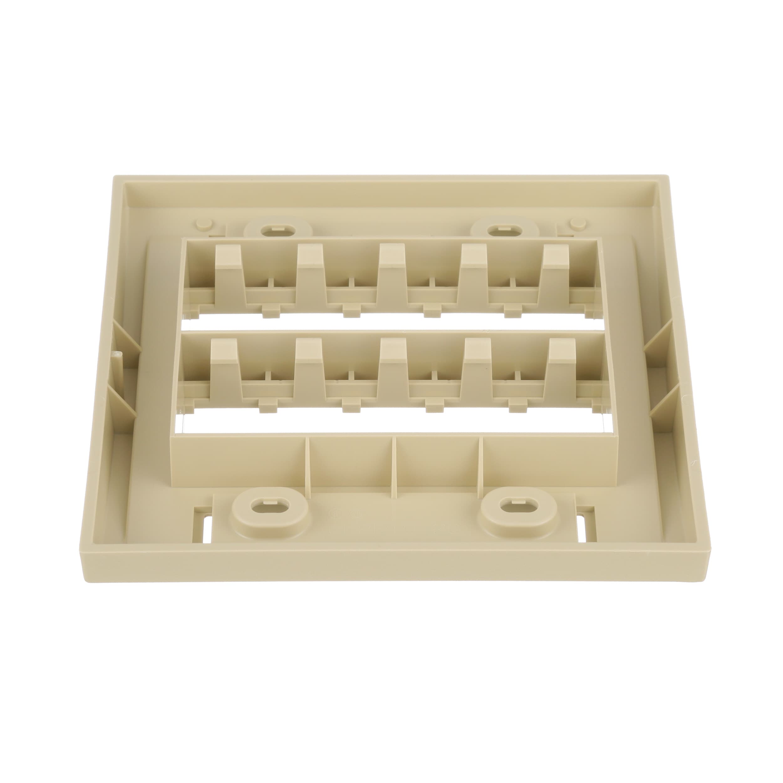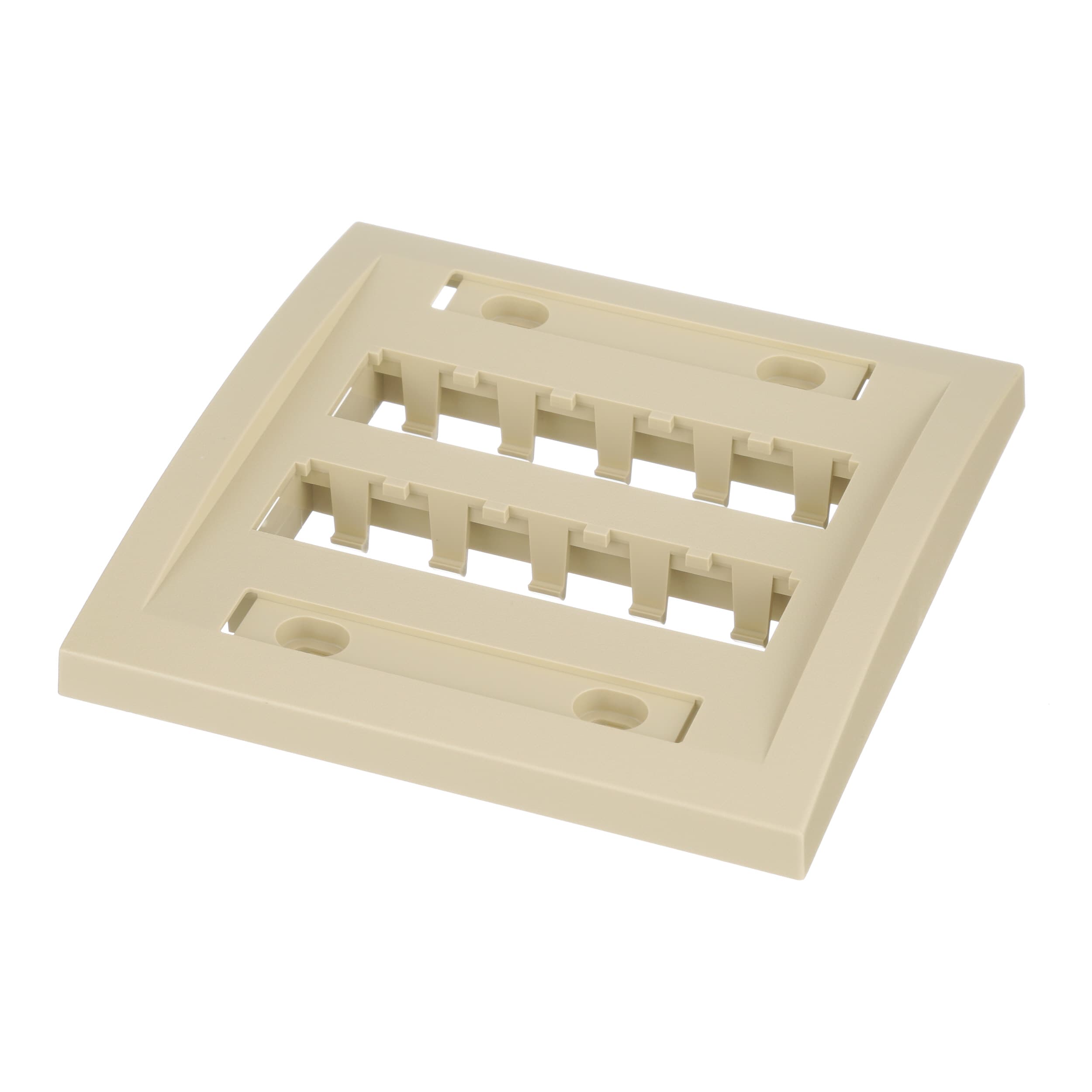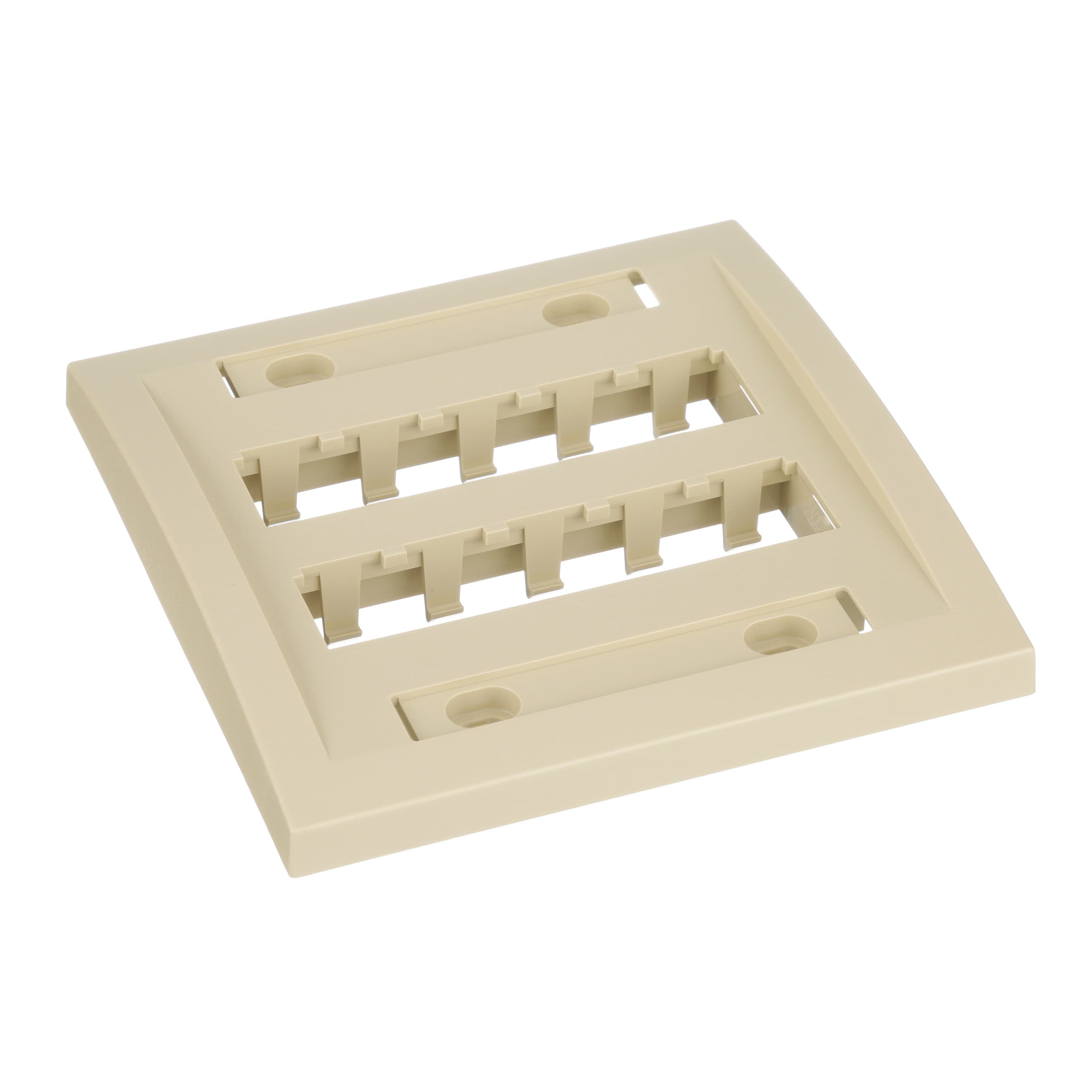 La plaque frontale Mini Com à branchement double de la série Exécutive peut accueillir dix modules Mini-Com™, fournie avec une étiquette ainsi qu’un porte-étiquette. Ivoire électrique.