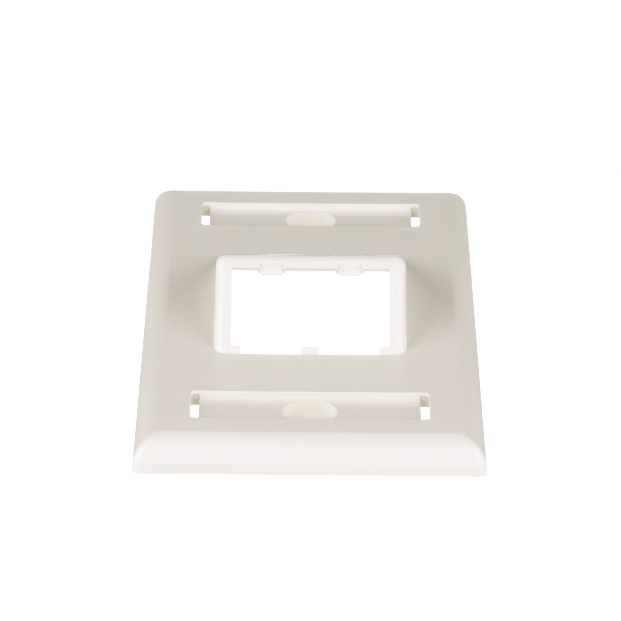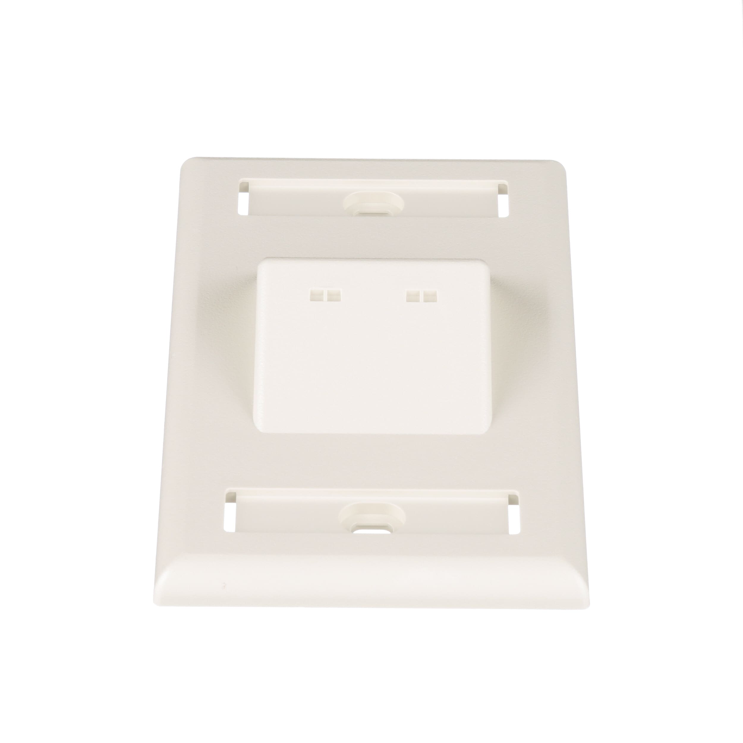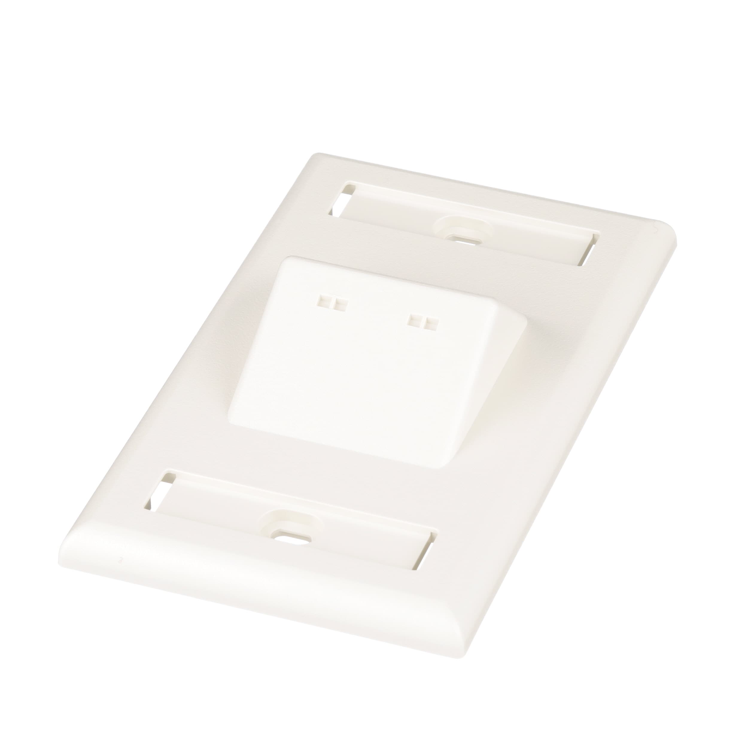 Plaque verticale inclinée Mini Com à branchement simple de la série Classique, peut accueillir deux modules Mini-Com™, fournie avec une étiquette ainsi qu’un porte-étiquette. Blanc cassé