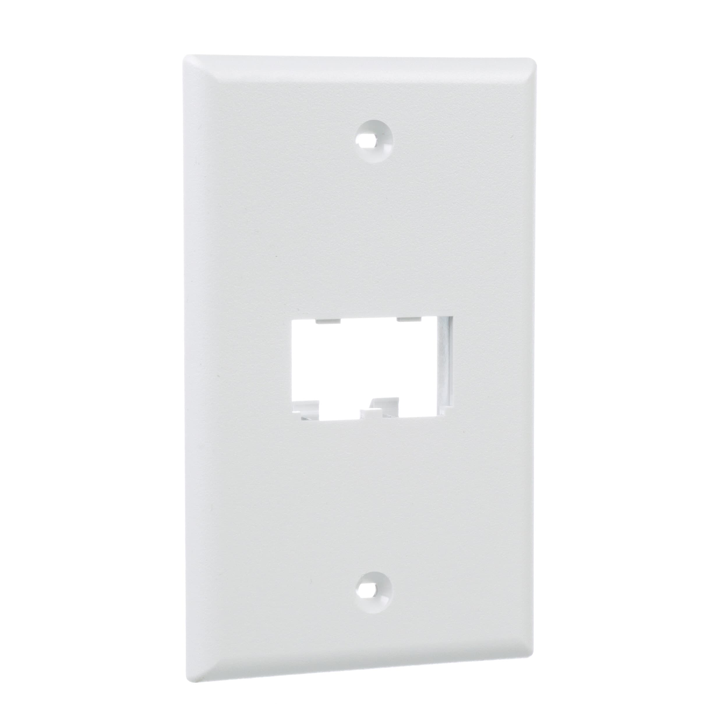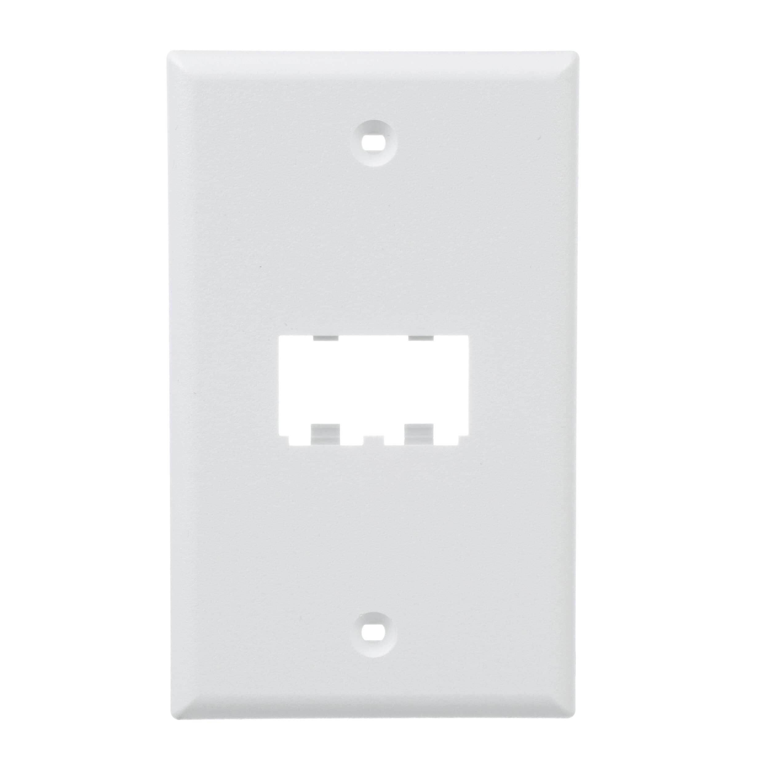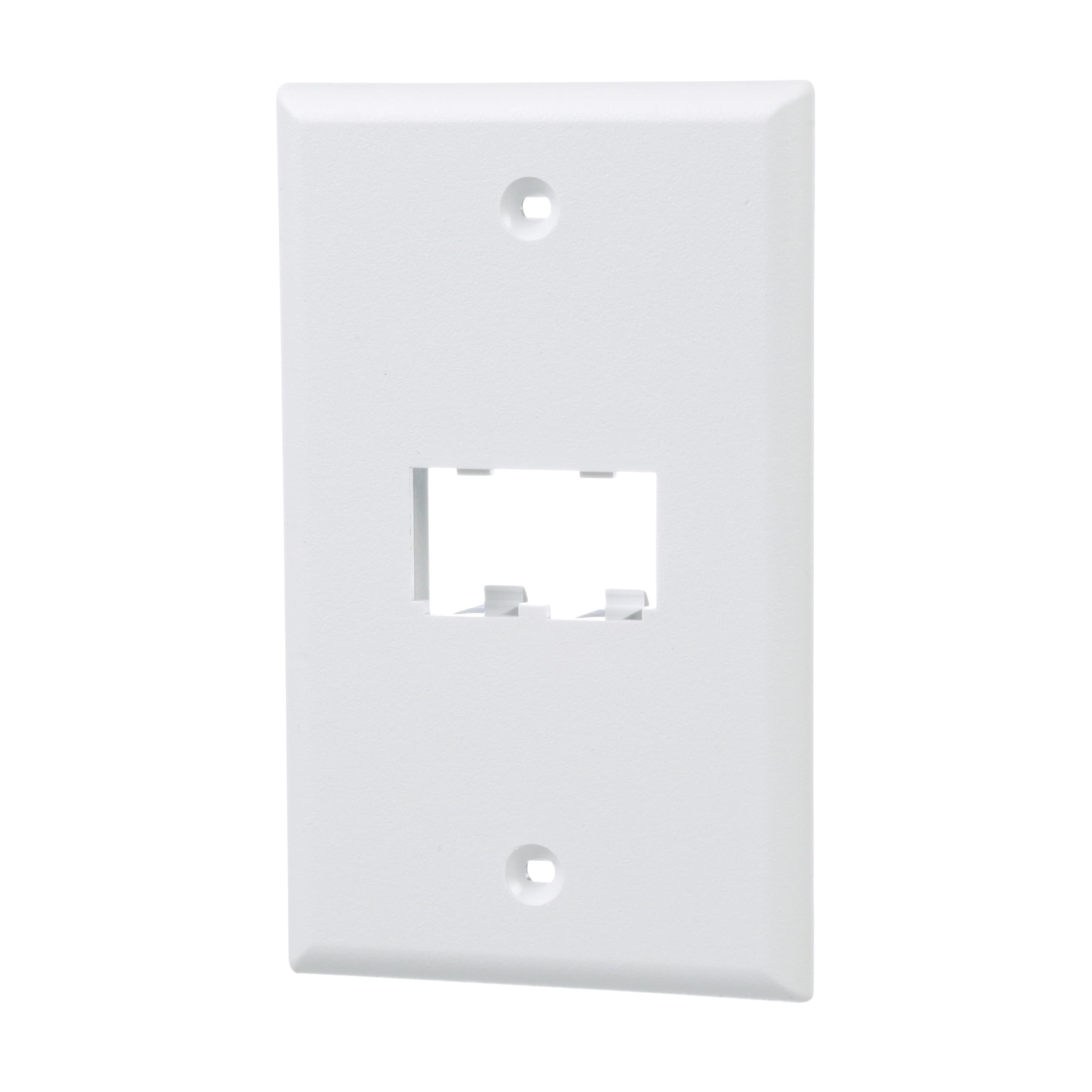 La plaque frontale de la série Classique Mini-Com™ peut accueillir deux modules Mini-Com. La plaque frontale est à branchement simple et se monte sur une ouverture à branchement simple standard NEMA. La plaque frontale peut être identifiée à l'aide d'une étiquette adhésive et est de coloris blanc.