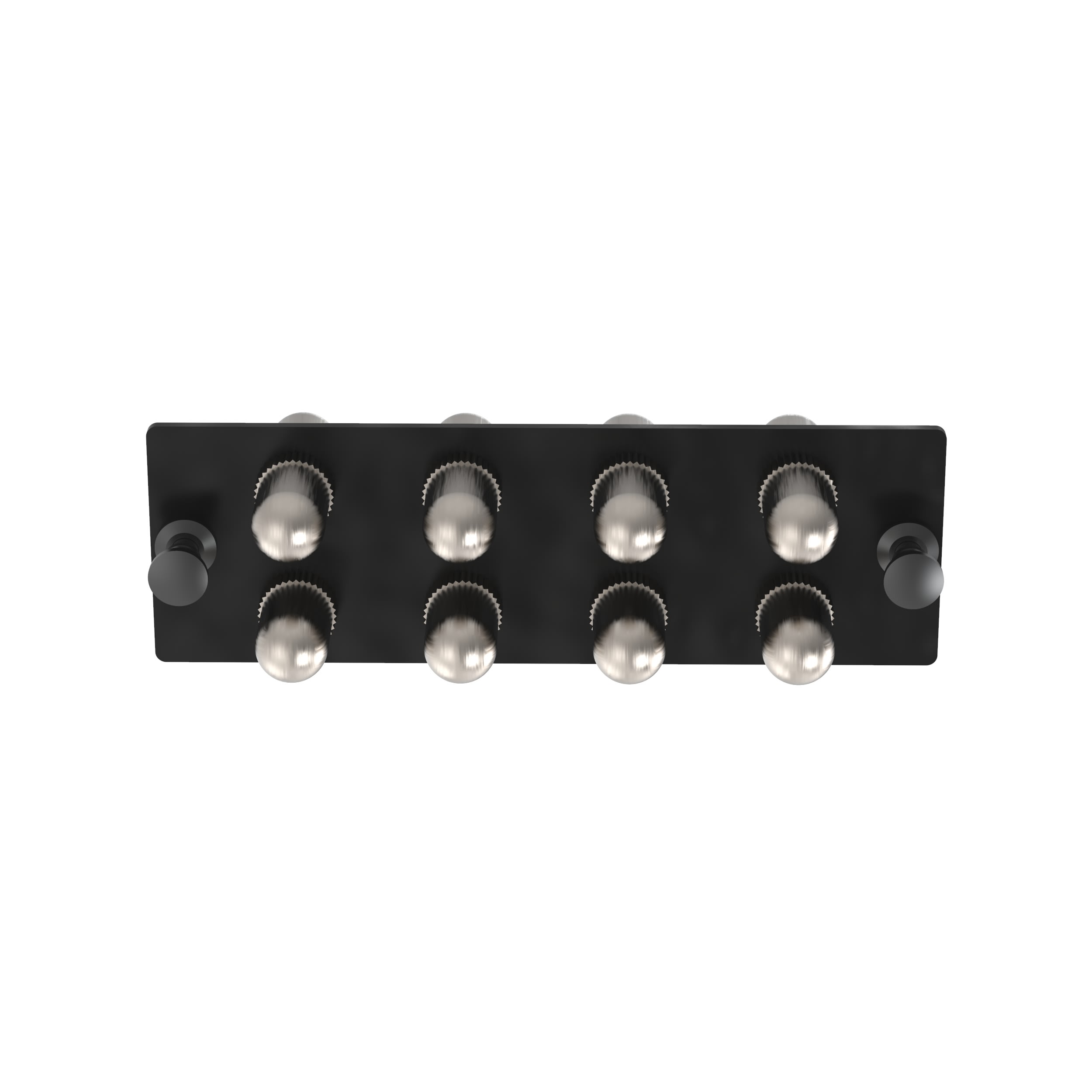 Le panneau d'adaptateur fibre ST est préchargé avec huit adaptateurs fibre optique monomode simplex ST. Il est noir avec des manchons fendus en céramique de zircone.