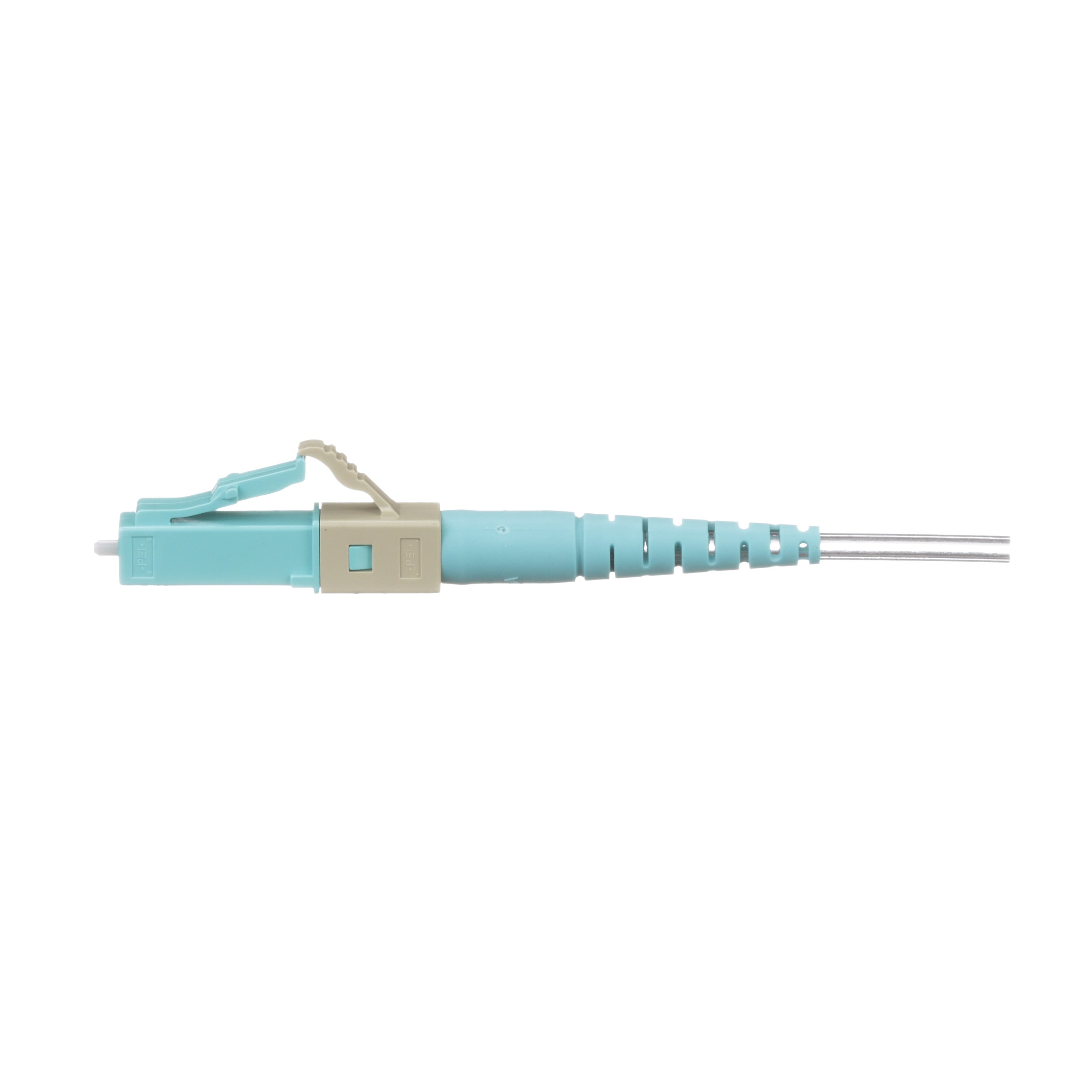 Connecteur d'épissure à fusion LC pour fibre multimode duplex OM3/OM4/OM5 de 50/125 μm, conçu pour les installations de fibre avec couche tampon à structure serrée de 900 µm ou tubulaire détachée de 250 µm. Raccordement sur site en deux minutes à l'aide de machines d'épissure à fusion courantes (non vendues par Panduit). L'extrémité en fibre prépolie élimine le long polissage sur site, ce qui réduit les coûts d'installation. Partie avant et partie arrière/gaine en coloris bleu aqua et gris.