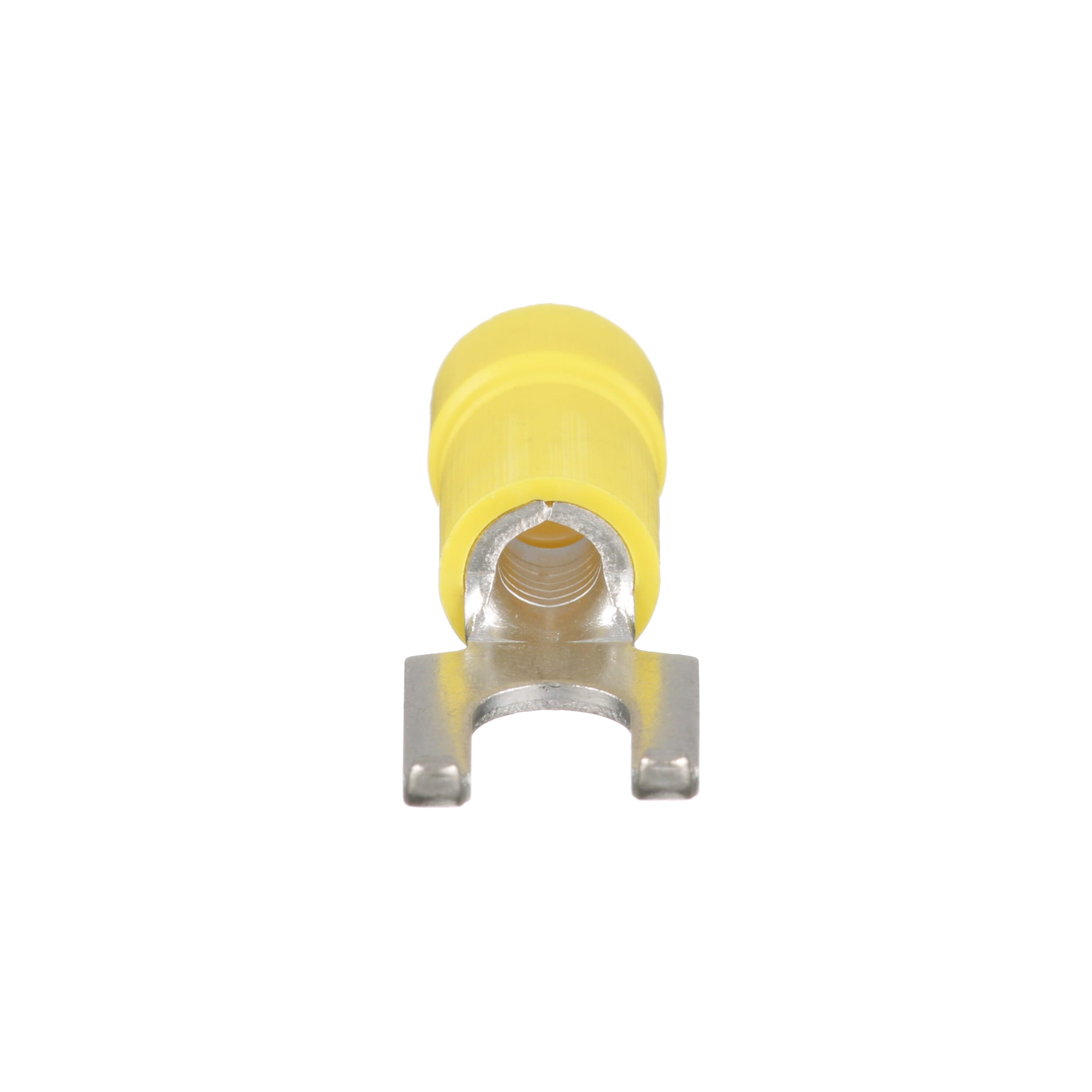 Cosse à fourche à bride, vinyle isolé, entrée en entonnoir, sertissage d'isolation en plastique, calibre de fil 12- 10 AWG, taille de goujon #10.