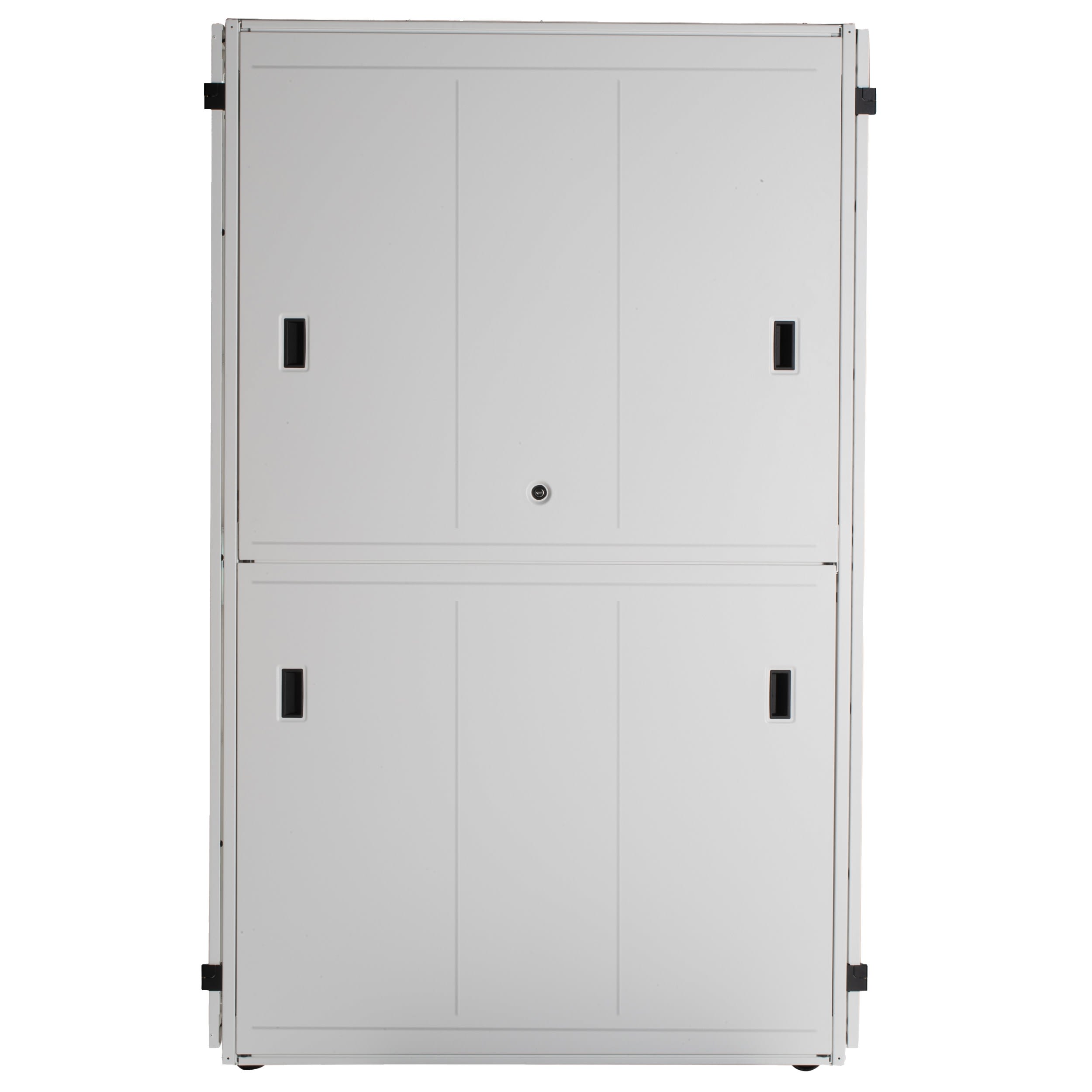 600mm × 48 U × 1 070 mm, blanc, avec porte avant perforée à charnière, porte arrière perforée en 2 parties, panneaux latéraux gauche et droit, rails d'équipement à écrou-cage, jeu de support de montage de PDU, roulettes