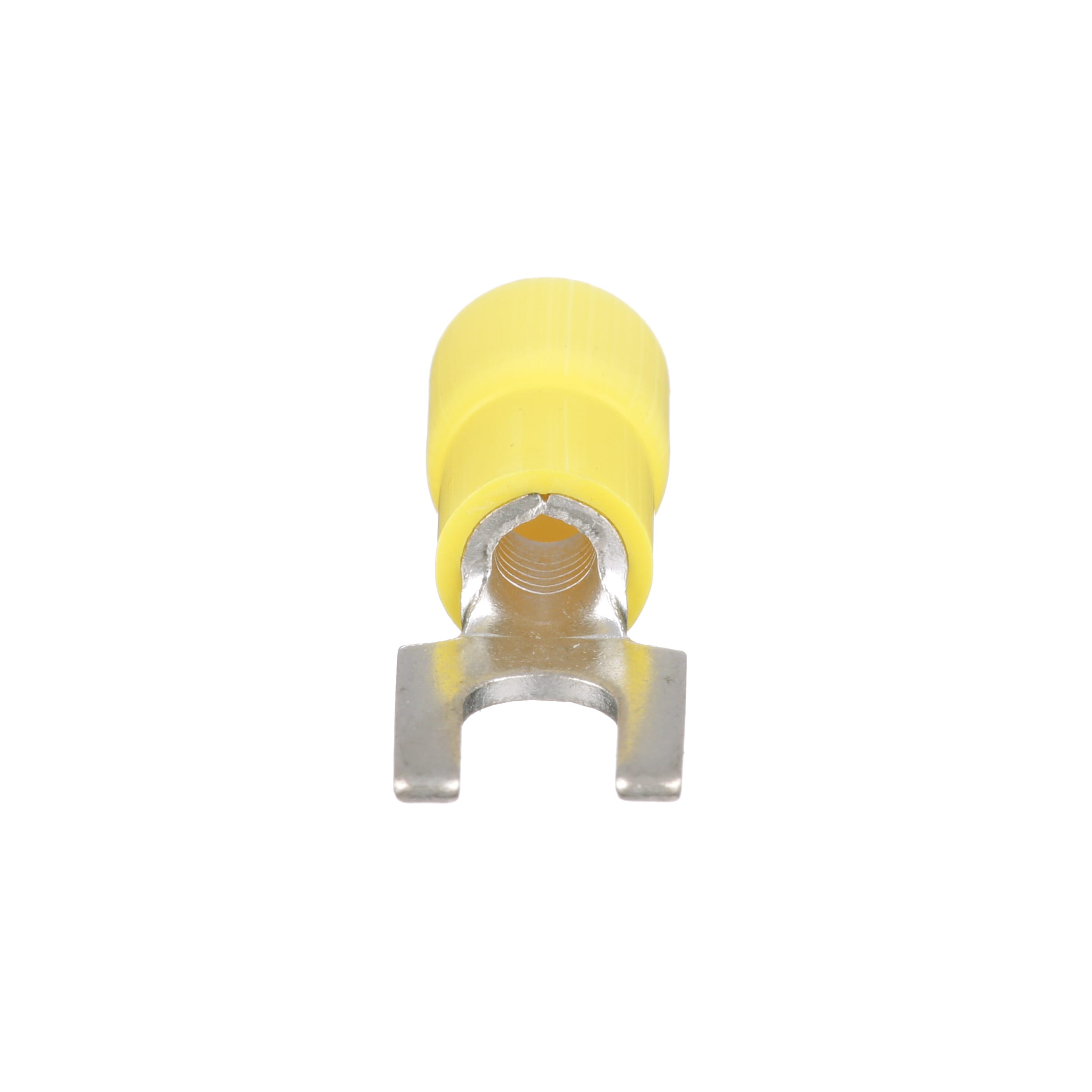 Cosse à fourche, isolation en vinyle, 12 - 10 AWG, taille de goujon #10, isolation expansée pour câble à large diamètre extérieur, conditionnement en vrac.