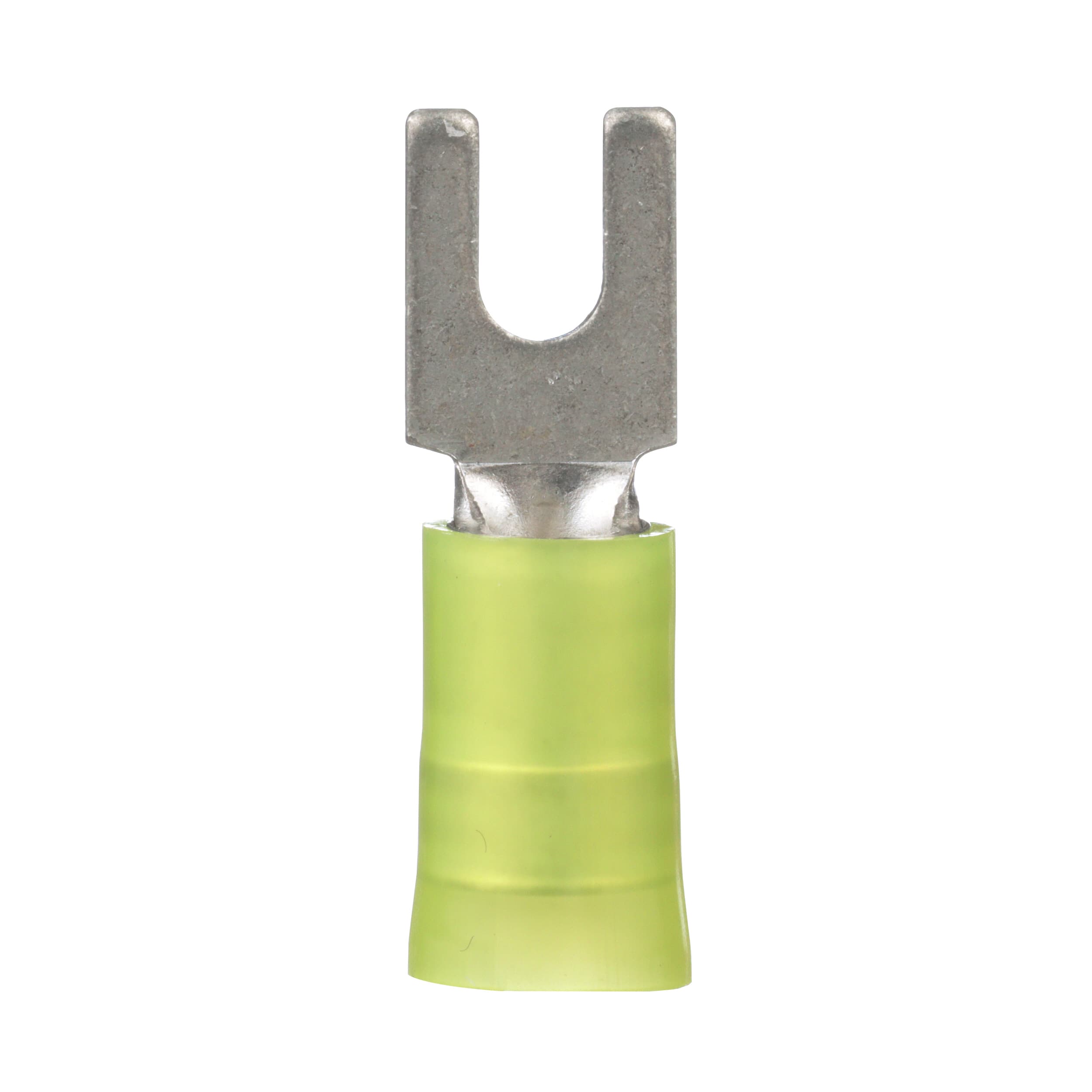 Cosse à fourche, polyamide isolé, 12 - 10 AWG, taille de goujon #6, conditionnement standard.