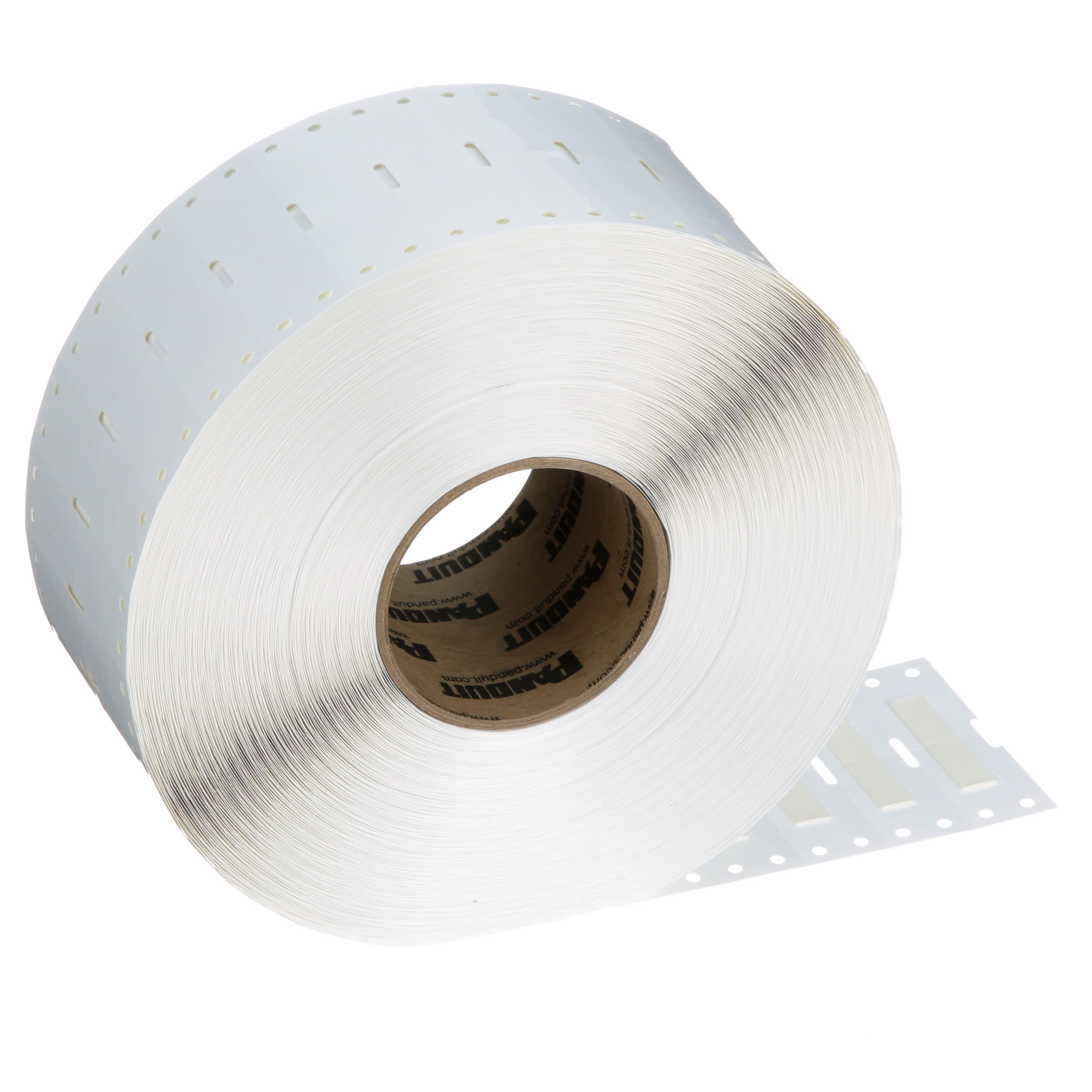 Etiquette thermorétractable en polyoléfine de qualité militaire H100X044H1T-B imprimable d'un seul côté. Elle permet aux légendes d'être claires tout en offrant une lisibilité supérieure pour une production d'étiquettes rapide et facile. La gaine thermorétractable permet d'identifier les câbles et fils de manière claire, fiable et durable. Conçues pour une utilisation avec les imprimantes Panduit TDP. Rapport de rétraction 3:1. 25,4 mm × 11,2 mm. Coloris : blanc. 5000 étiquettes par rouleau.
