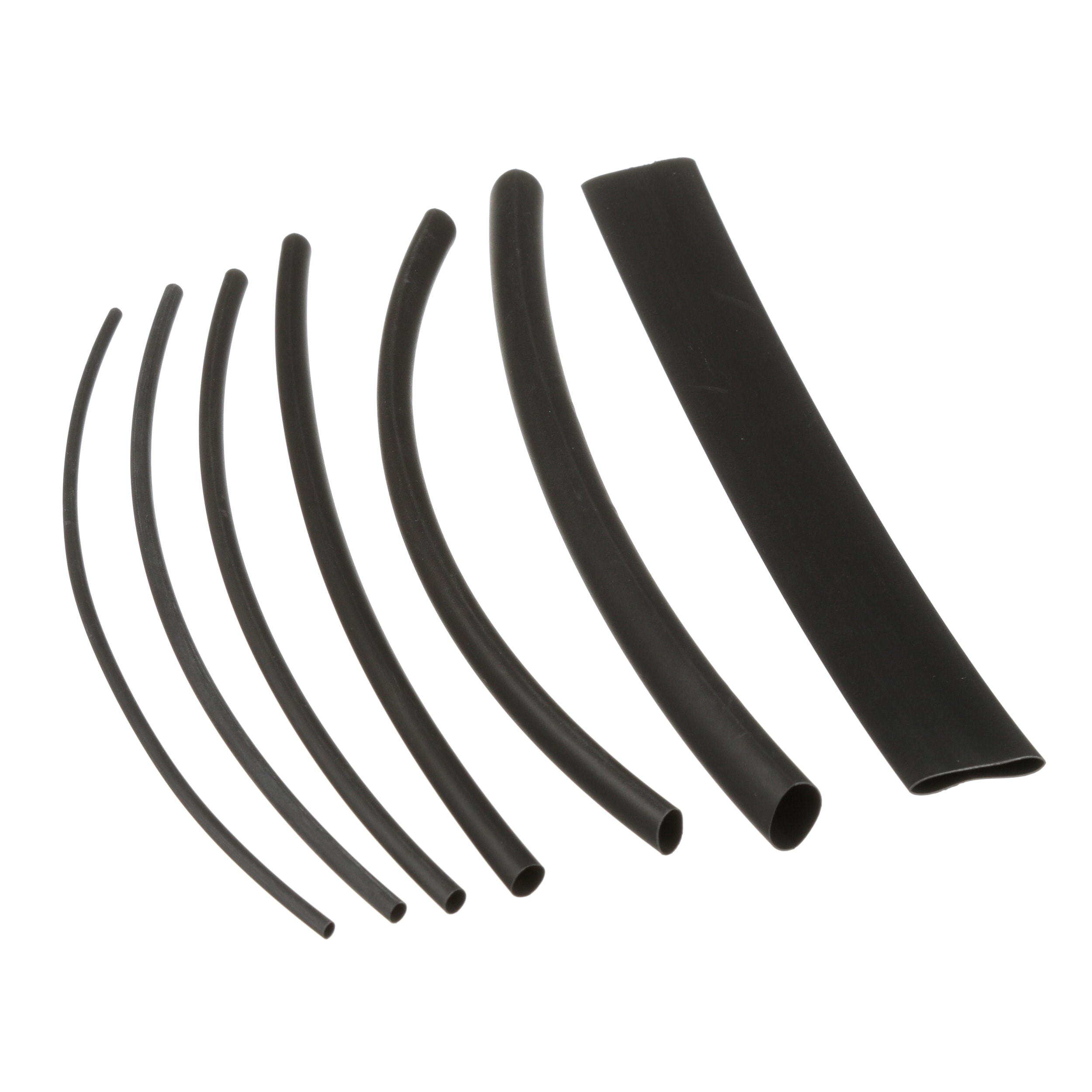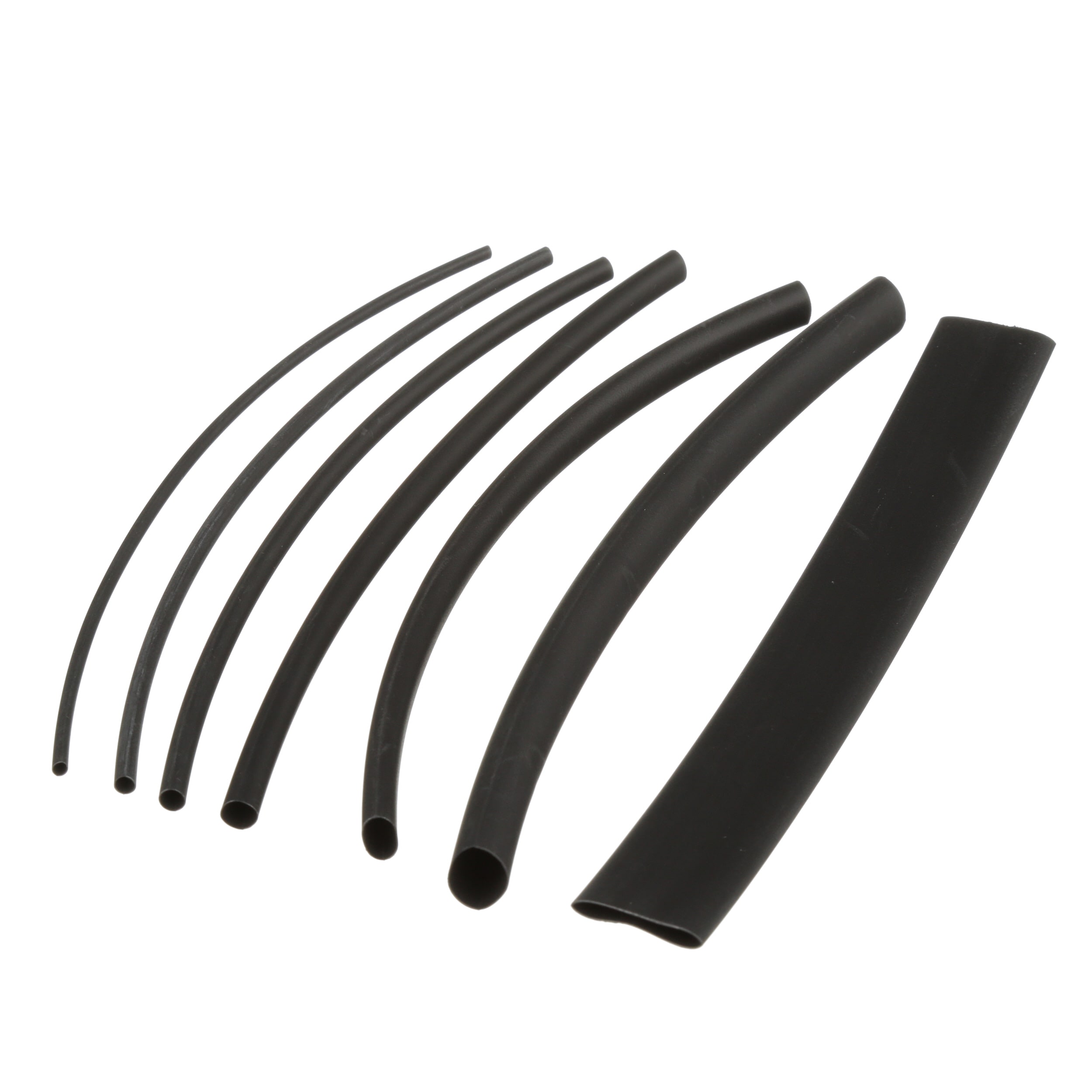Gaine thermorétractable à paroi fine en polyoléfine réticulée en morceaux de 6", noir, diamètres multiples, diamètres 0,06" à 0,50" (1,5 mm à 12,7 mm).