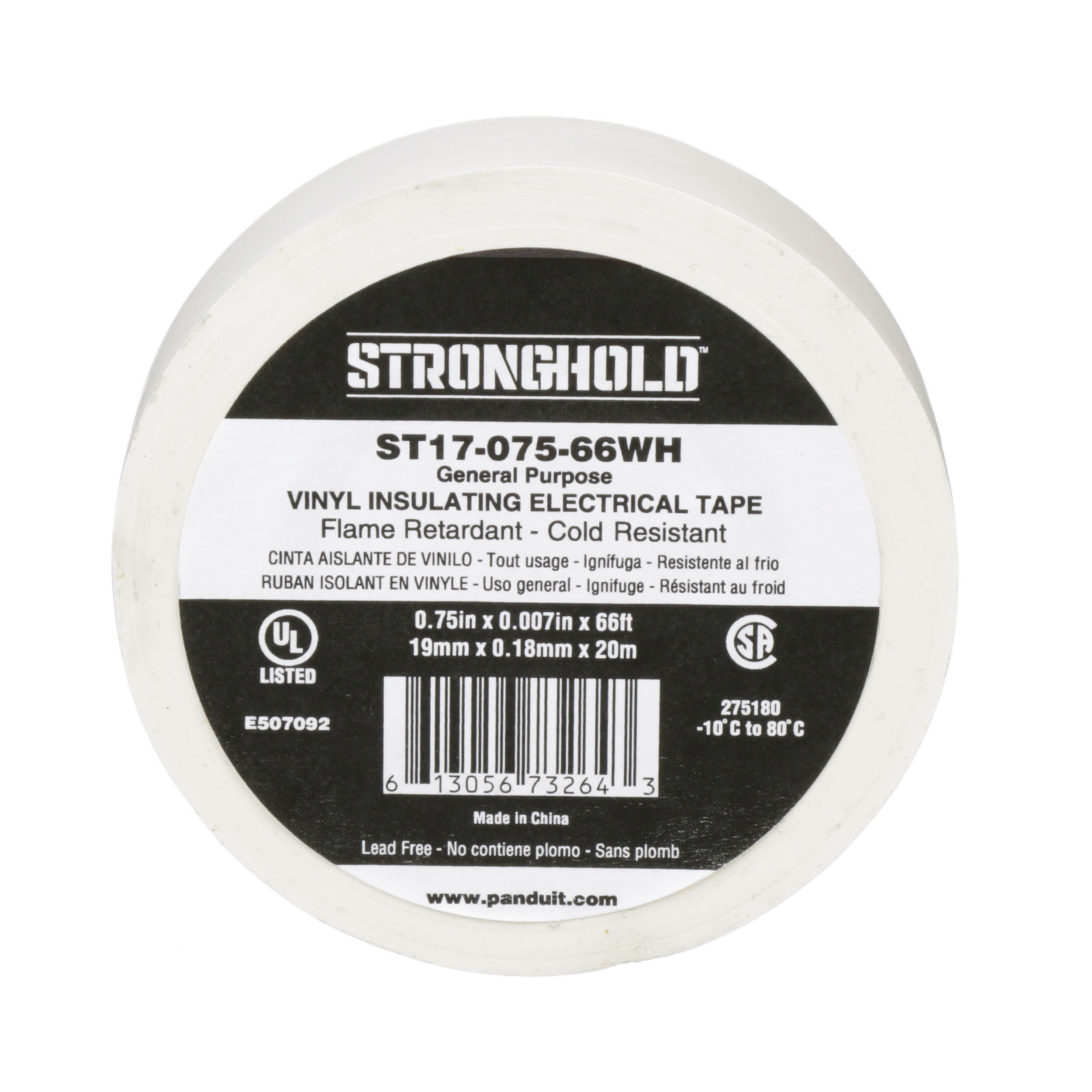 Le ruban électrique en PVC à usage général ST17-075-66WH StrongHold présente un adhésif non corrosif et sensible à la pression. La chaleur, l'humidité ou un autre catalyseur n'est donc pas nécessaire pendant l'application. Son allongement élevé offre d'excellentes propriétés de conformabilité. Dimensions : 19,05 mm x 20,12 m x 0,178 mm. Il est de coloris blanc et vendu dans un emballage individuel en cellophane. Convient en tant qu'isolant primaire pour l'épissage jusqu'à 600 volts ou 80 °C.