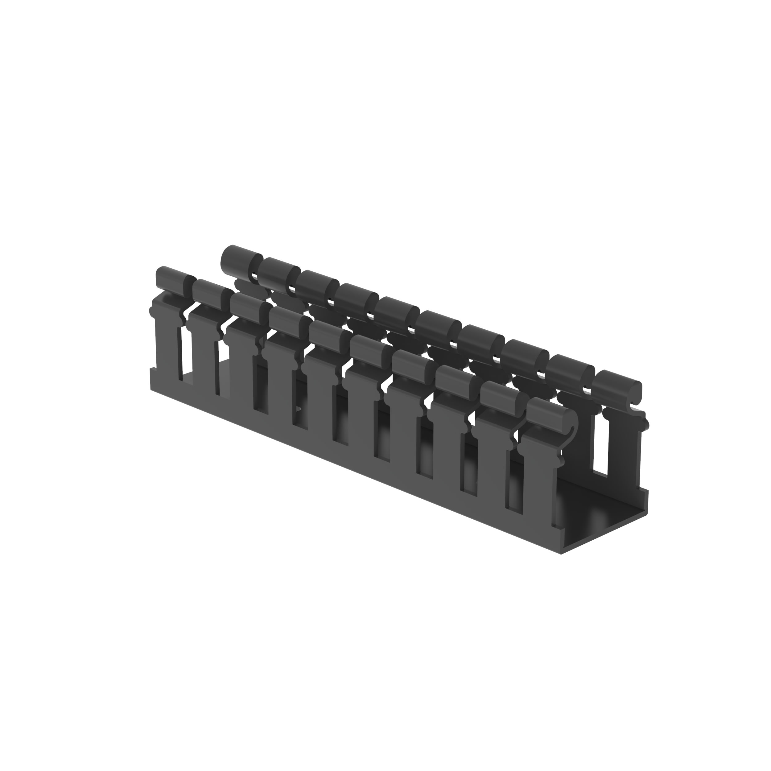 La goulotte de câble à fente large avec capot à charnière en PVC H1.5X2BL6 présente une conception à fente/bande large qui offre plus de rigidité de la paroi latérale et convient à de multiples tailles de faisceau. Les lignes de repère supérieure et inférieure permettent un retrait facile de la section bande/paroi latérale. Elle possède une classe d'inflammabilité UL 94 de V-0 avec une température d'utilisation continue reconnue UL jusqu'à 50 °C. Trous de montage fournis. PVC sans plomb. 50,3 mm x 44,5 mm et 1,83 m de long. Couvercle vendu séparément. Coloris noir. 6 unités par package.