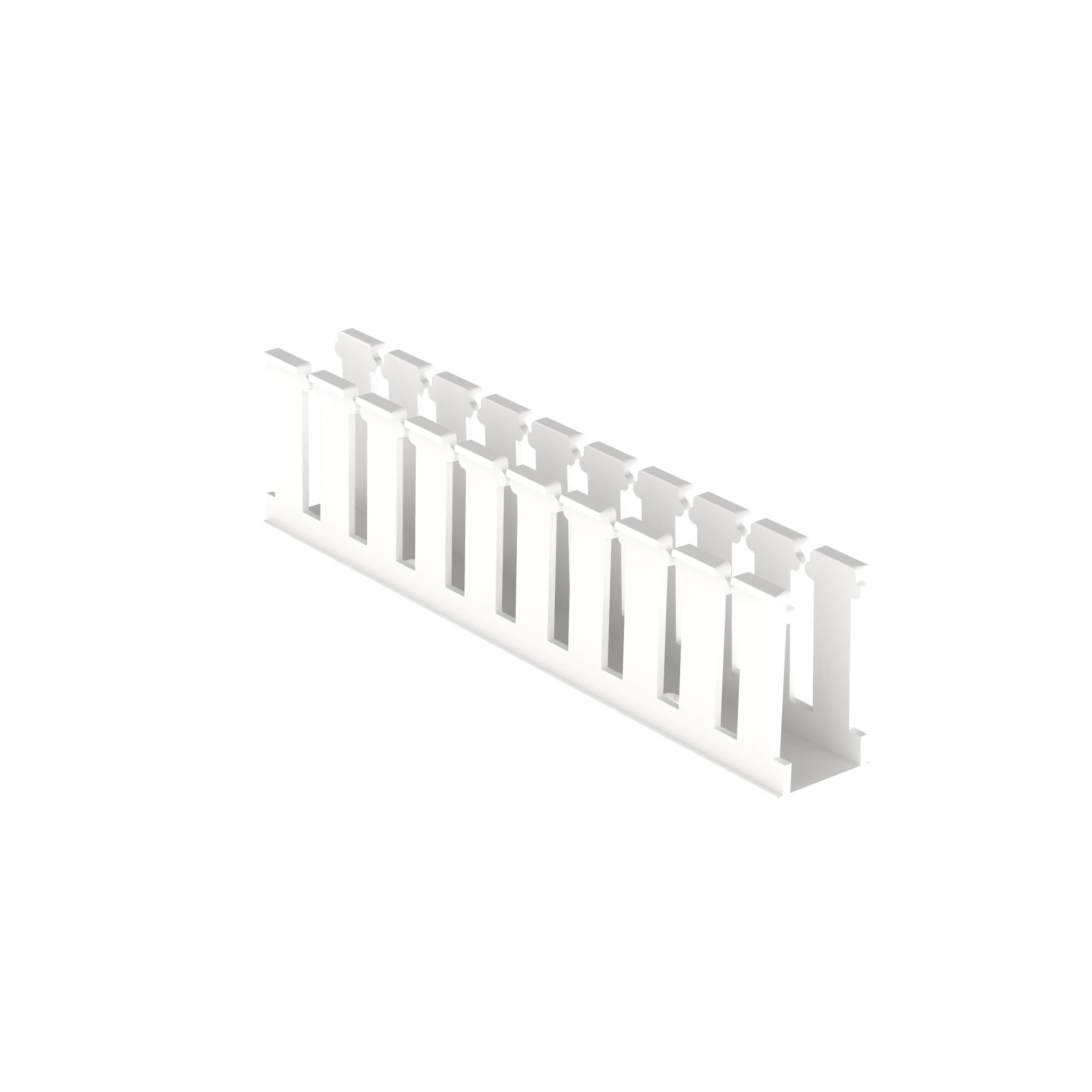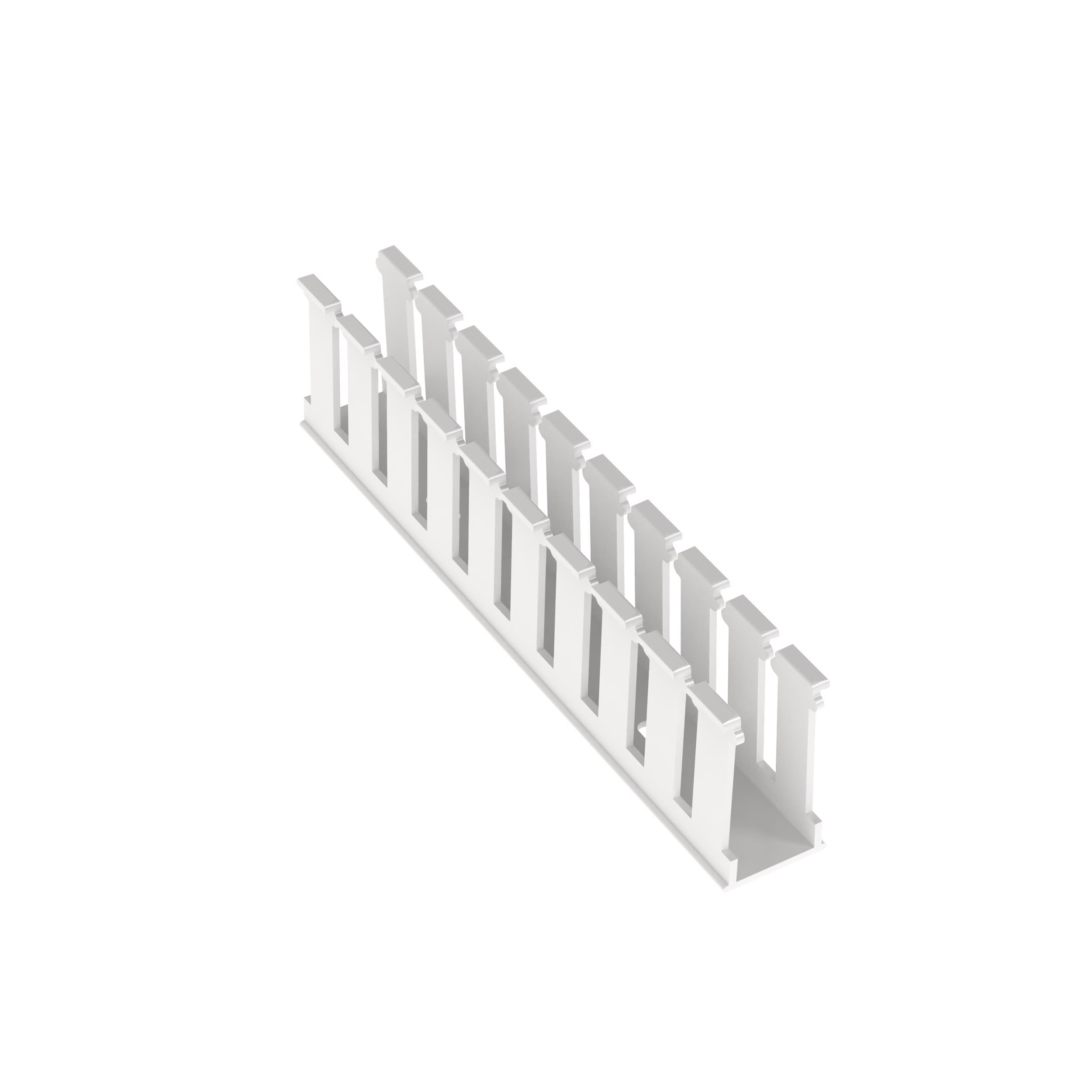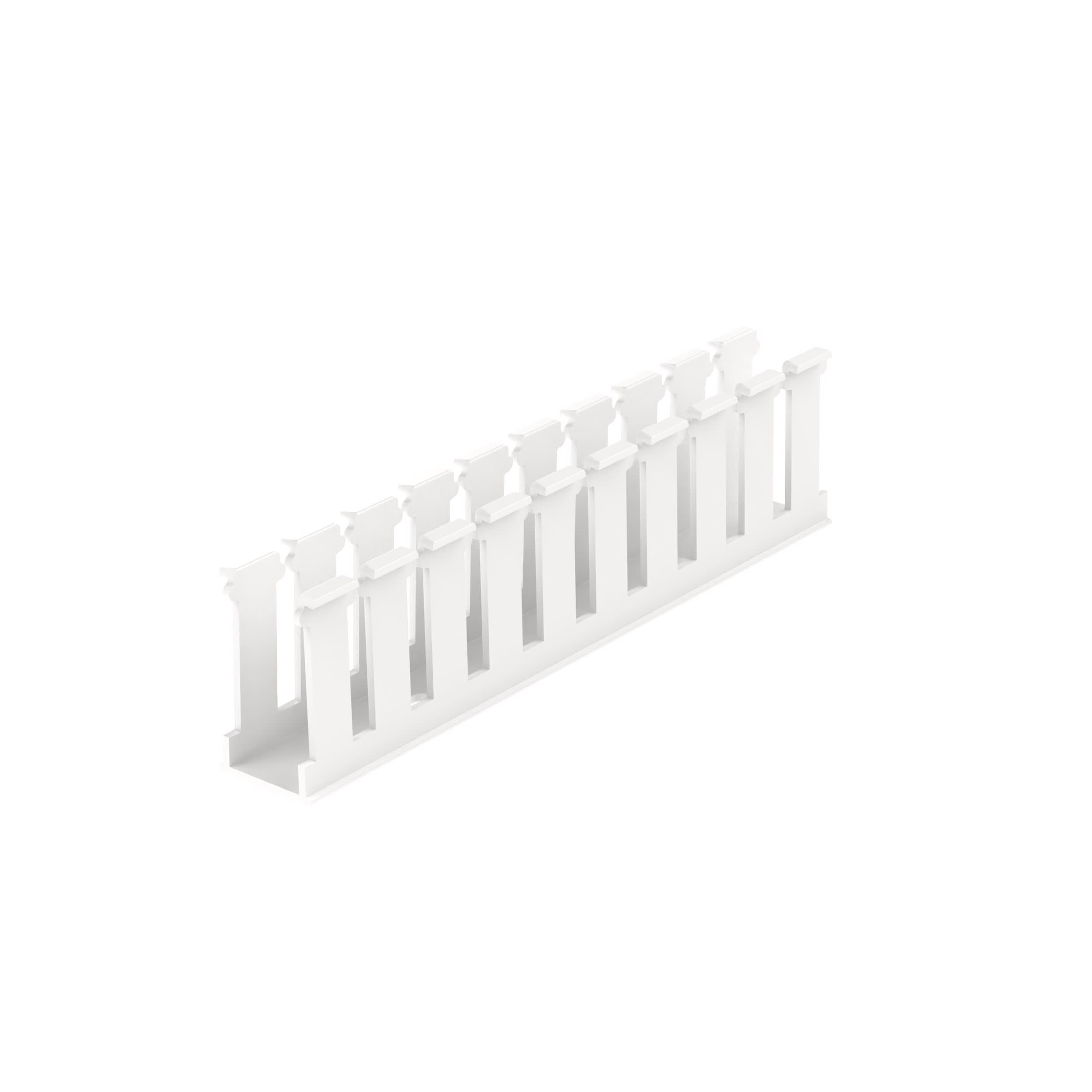 La goulotte de câble sans halogène à fente large NE1X2WH6 présente une conception plus rigide et une compatibilité avec de nombreuses tailles de câbles/faisceaux. Lignes de repère supérieure et inférieure pour un retrait facile de la section à doigt/paroi latérale. Classe d'inflammabilité UL 94 V-0 avec reconnaissance UL pour l'utilisation en continu à des températures jusqu'à 95 °C. Sans halogène, oxyde de polyphénylène (PPO). Trous de montage fournis. 52,3 mm x 29,0 mm et 1,83 m de long. Couvercle vendu séparément. Coloris blanc. 6 unités par paquet.