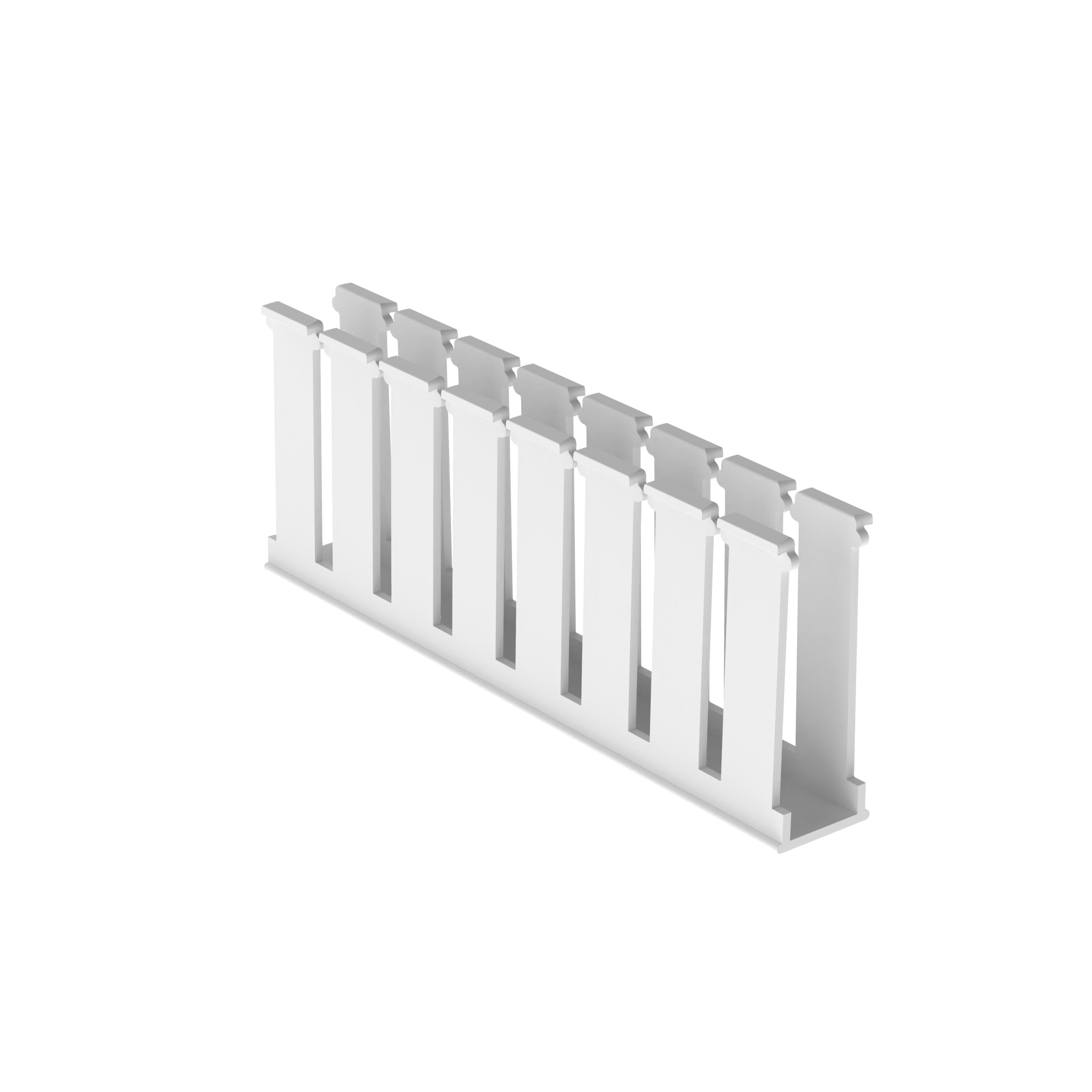 La goulotte de câble sans halogène à fente large NE1X3WH6 présente une conception plus rigide et une compatibilité avec de nombreuses tailles de câbles/faisceaux. Lignes de repère supérieure et inférieure pour un retrait facile de la section à doigt/paroi latérale. Classe d'inflammabilité UL 94 V-0 avec reconnaissance UL pour l'utilisation en continu à des températures jusqu'à 95 °C. Sans halogène, oxyde de polyphénylène (PPO). Trous de montage fournis. 77,7 mm x 29,0 mm et 1,83 m de long. Couvercle vendu séparément. Coloris blanc. 6 unités par paquet.