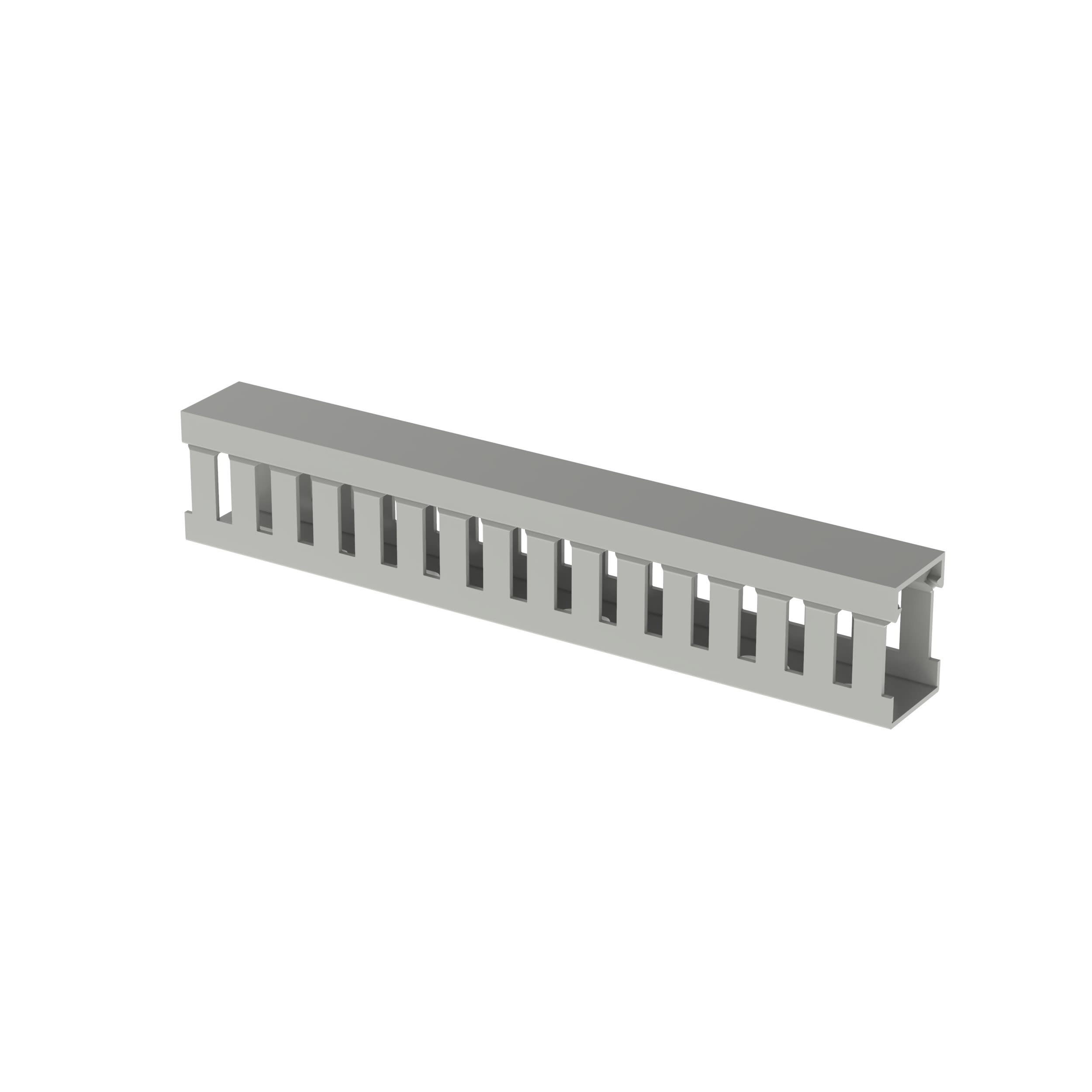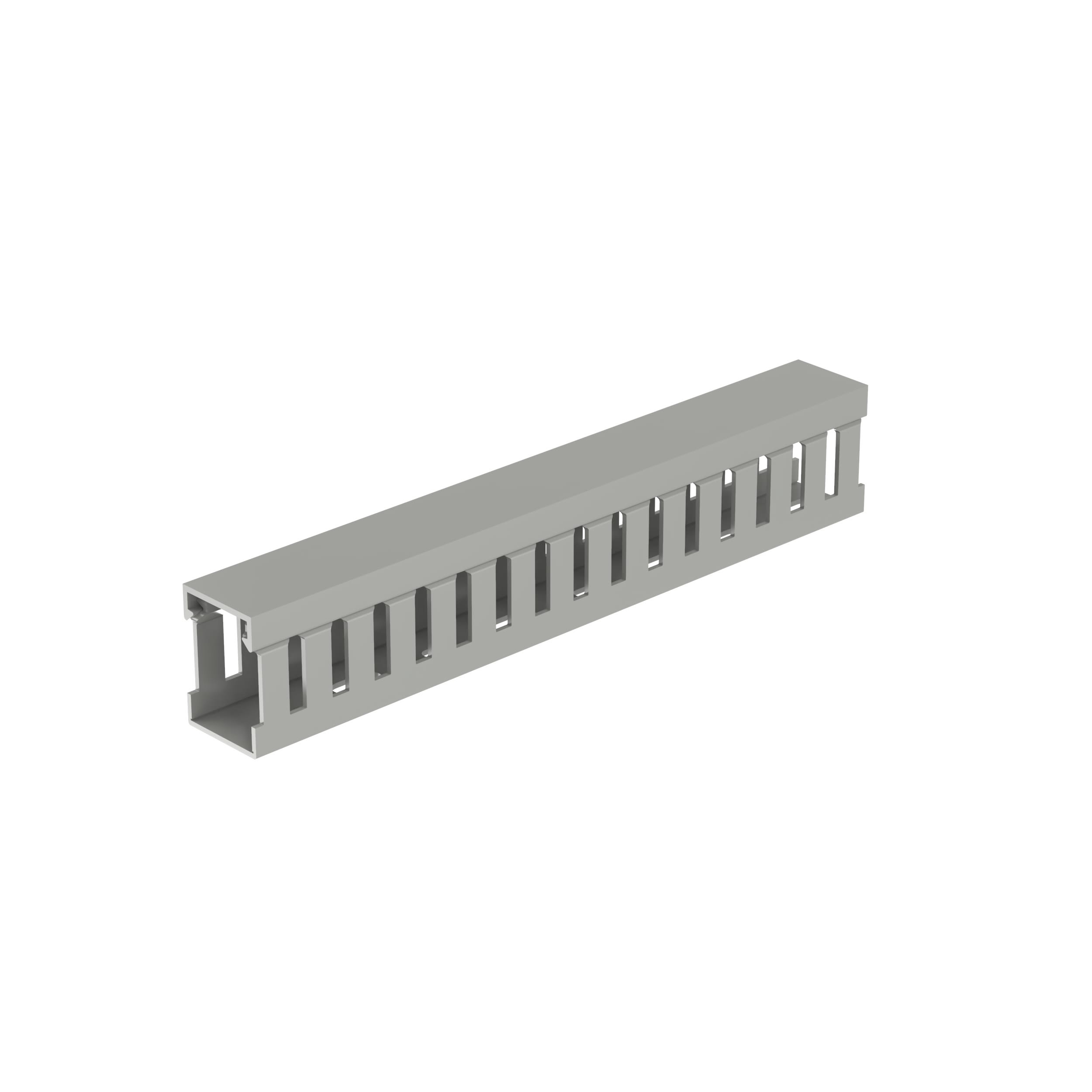 Goulotte de câble en PVC sans plomb à fente étroite MC25X37IG2, 24,6 mm × 35,8 mm. Conception à fente/bande étroites correspondant à l'espacement des composants haute densité. Les lignes de repère permettent un retrait facile de la section bande/paroi latérale. Classe d'inflammabilité UL 94 V-0 pour l'utilisation en continu à des températures allant jusqu'à 50 °C. Trous de montage fournis. PVC sans plomb. Capot inclus. Coloris : gris international. 20 m par pack (10 pièces, bases et capots).