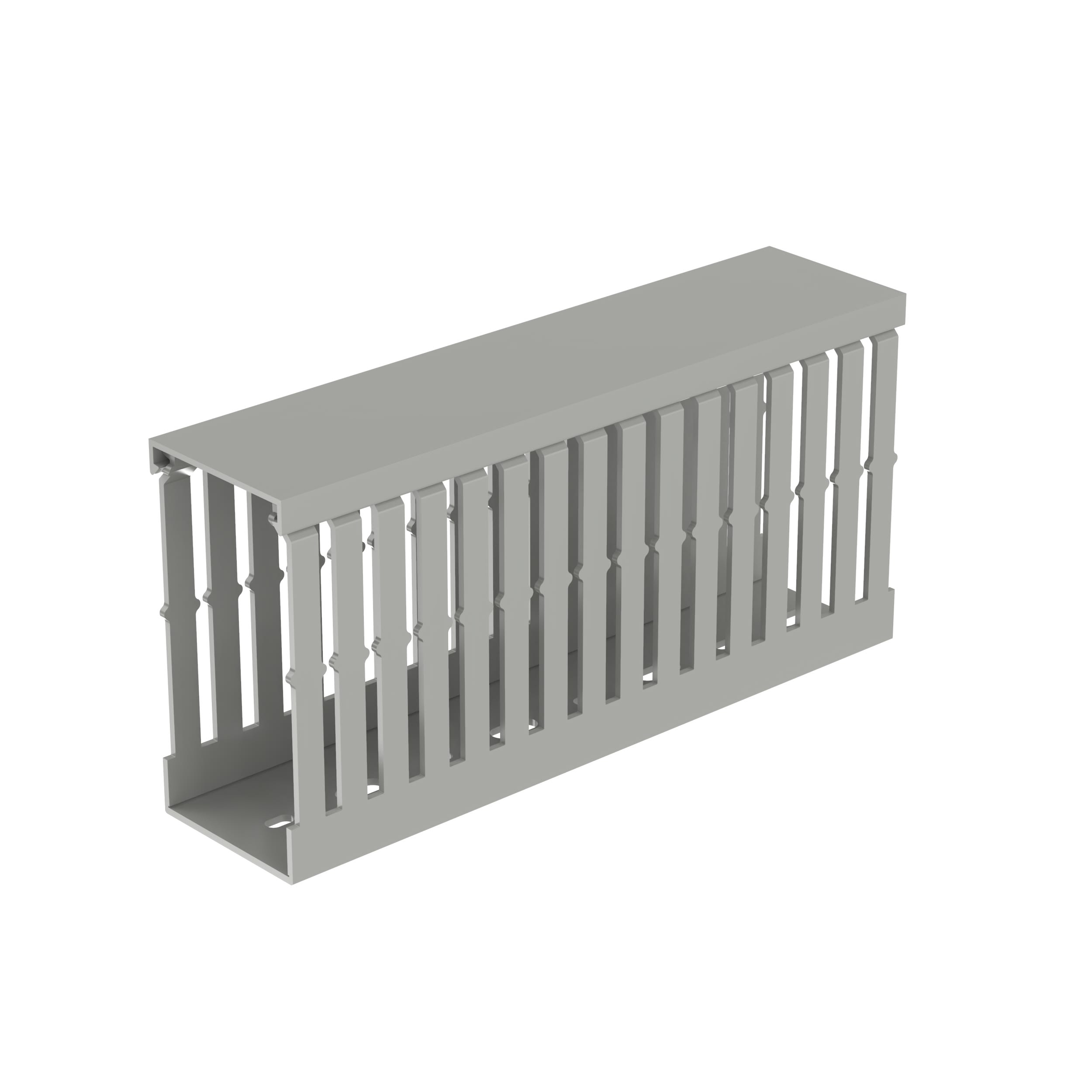Goulotte de câble en PVC sans plomb à fente étroite MC50X100IG2, 49,5 mm × 97,8 mm. Conception à fente/bande étroites correspondant à l'espacement des composants haute densité. Les lignes de repère supérieure et inférieure permettent un retrait facile de la section bande/paroi latérale. Indice d'inflammabilité V-0 selon UL 94 avec une température d'utilisation continue reconnue UL jusqu'à 50 °C. Trous de montage fournis. PVC sans plomb. Couvercle inclus. Coloris : gris international. 10 mètres par paquet (5 pièces - bases et capots).