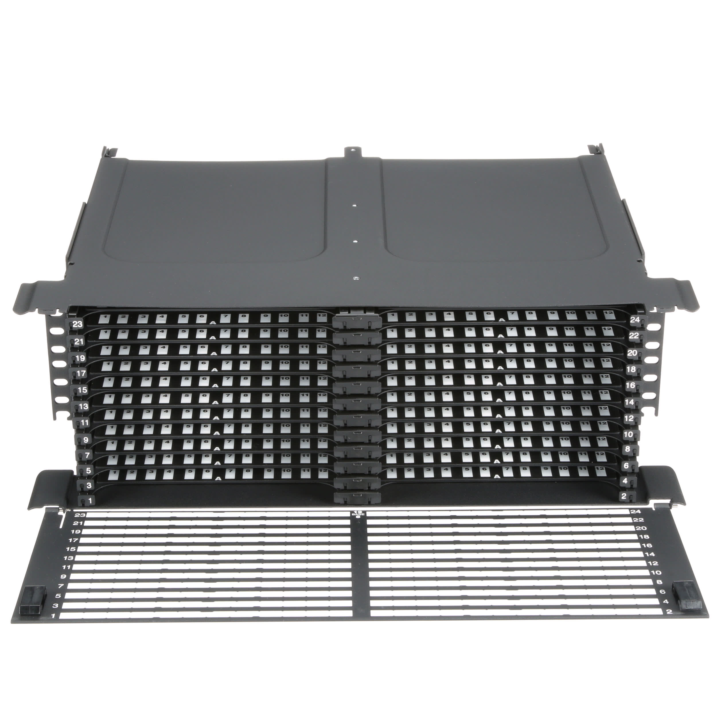 Le boîtier fibre HD Flex™ mesure 4 U et est configuré pour pouvoir accueillir les cassettes HD Flex™ à 12 ports. La conception modulaire peut accueillir jusqu'à 24 cassettes de fibres HD Flex ou panneaux d'adaptateurs fibre pour une densité maximale de 576 fibres.