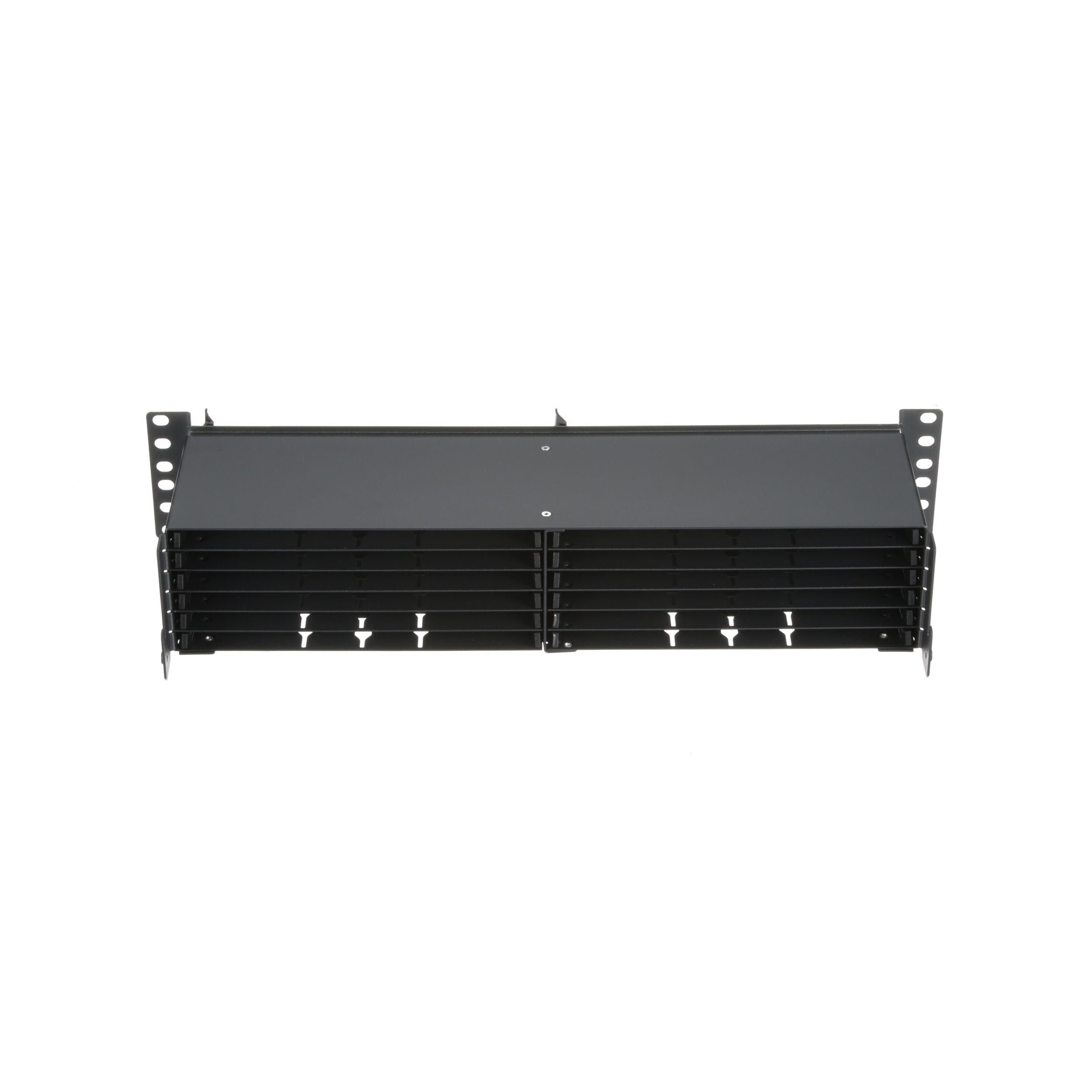 Le panneau fibre HD Flex™ mesure 2 U et peut accueillir jusqu'à 12 cassettes HD Flex™ à 12 ports ou panneaux adaptateurs fibre pour une densité maximale de 288 fibres.