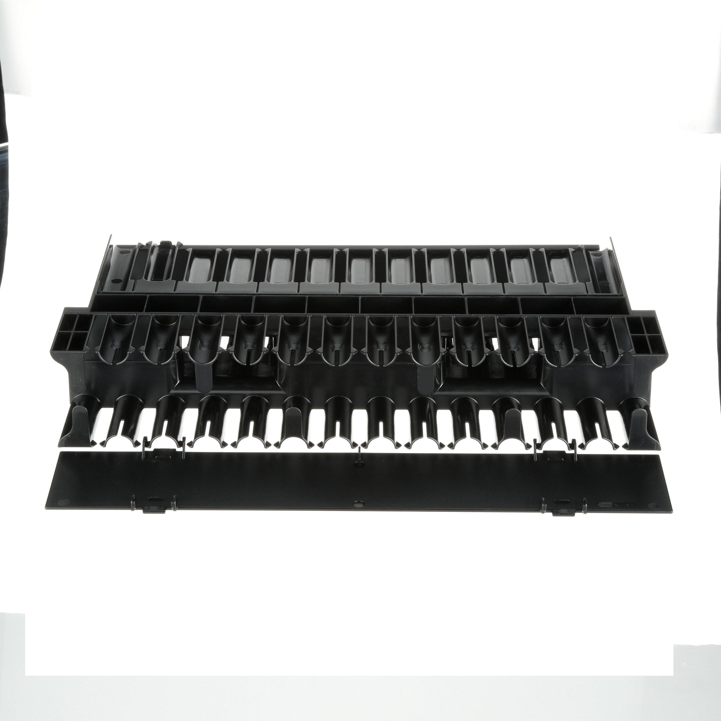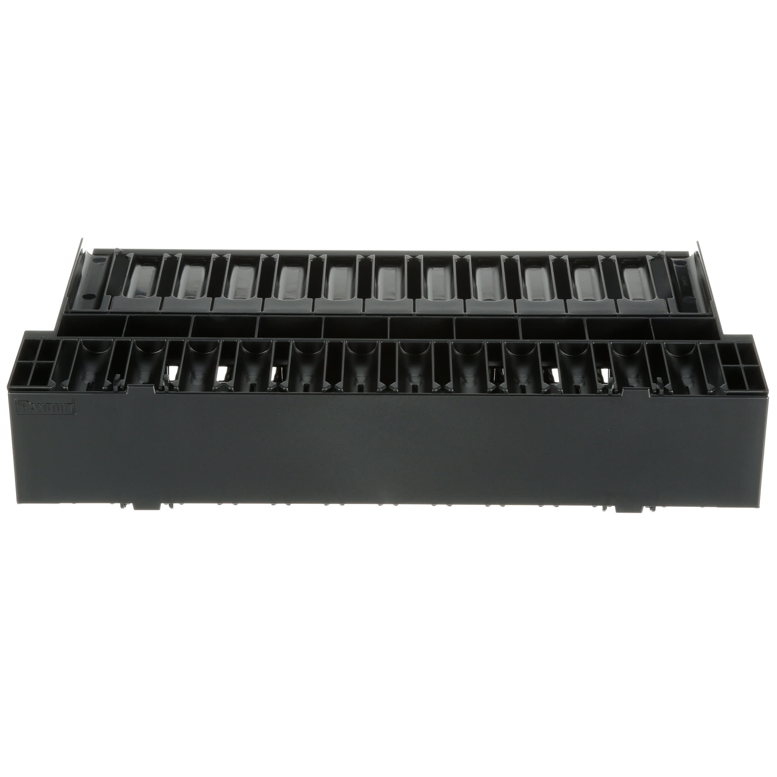Le guide-câble horizontal NetManager™ permet une protection et une organisation rentables du câblage du réseau de fibre optique et de cuivre dans n'importe quel rack ou armoire (483 mm). Un contrôle du rayon de courbure permet aux câbles de durer plus longtemps en réduisant le nombre d'accrocs et de nœuds qui interrompent le service réseau. Capot en plastique à charnières amovible, double face, plastique ABS, 2 U. Le guide-câble est noir.