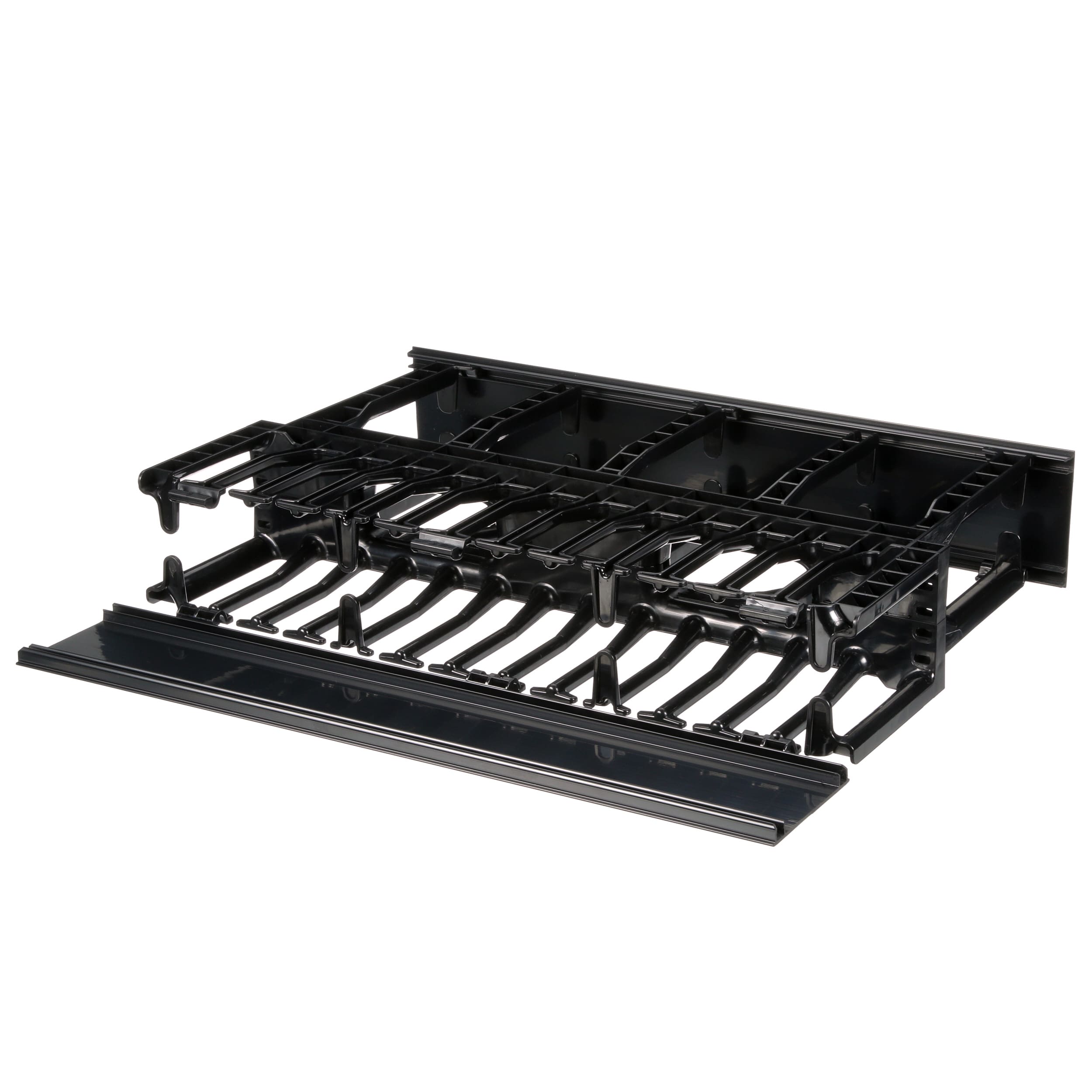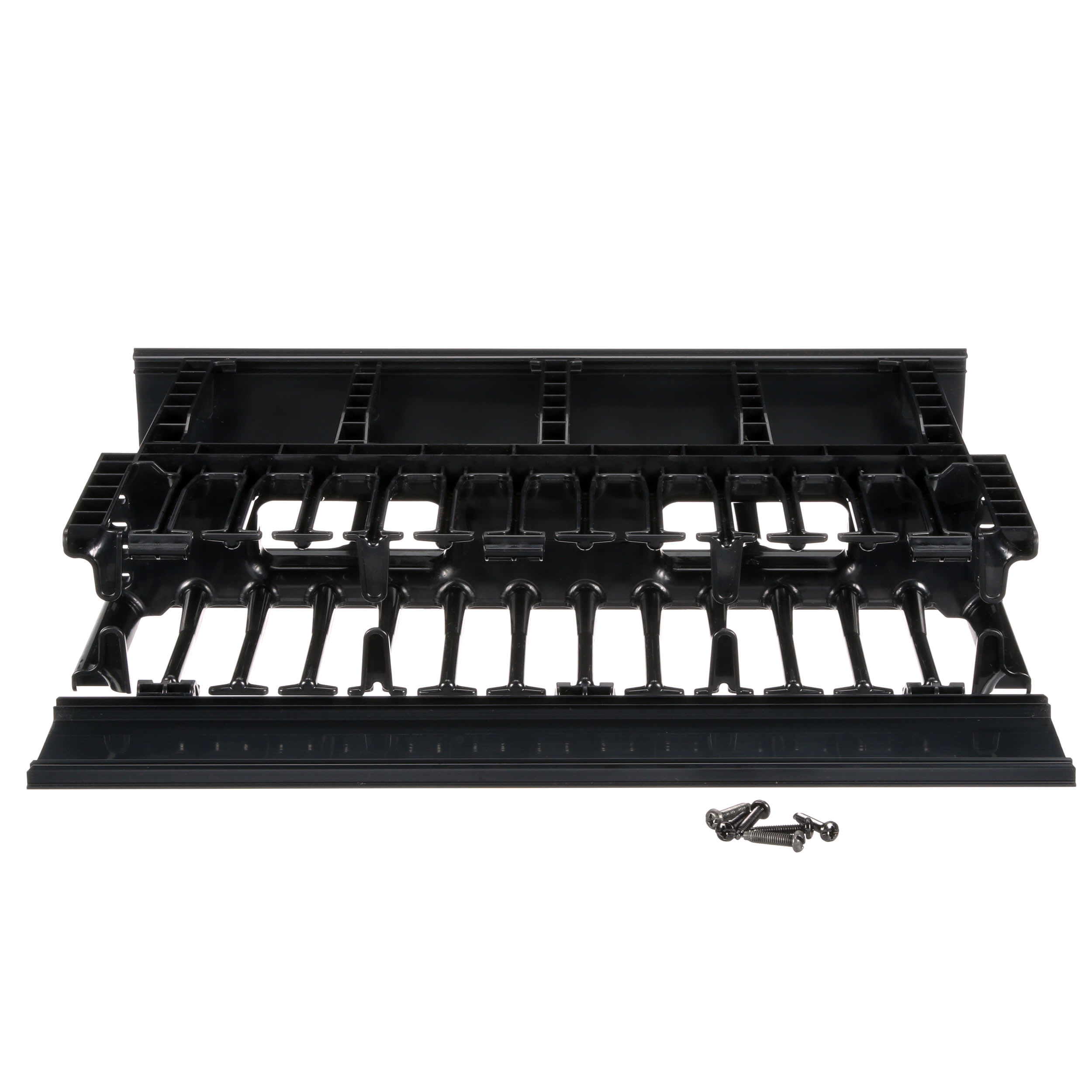 Le guide-câble horizontal NetManager™ de grande capacité permet une protection et une organisation rentables du câblage du réseau de fibre optique et de cuivre dans n'importe quel rack ou armoire EIA standard 483 mm. Les ouvertures larges à l'avant peuvent facilement accueillir des câbles de catégorie 6 et 6A, ce qui réduit le temps d'installation et les frais d'entretien. Le guidage deux faces comporte 2 U et présente des capots avant et arrière à charnière. Le guide-câble est noir.