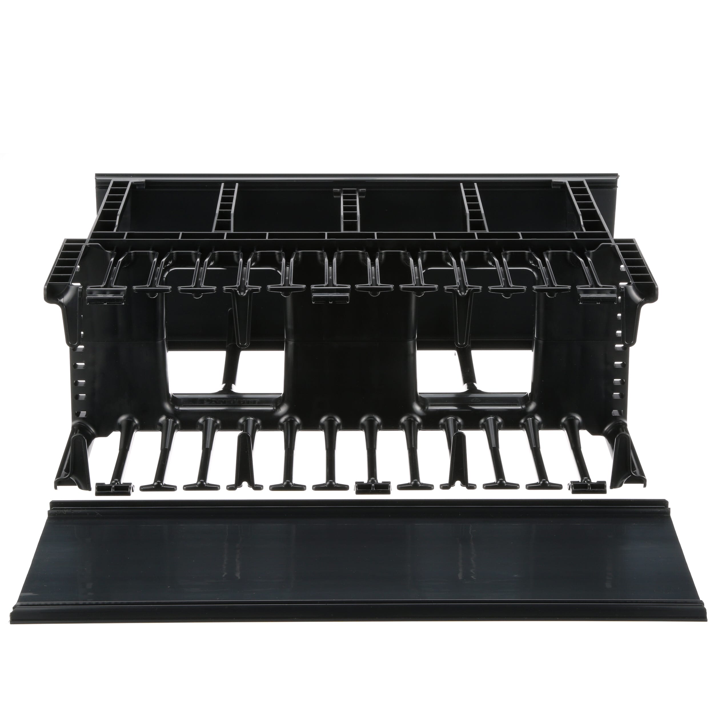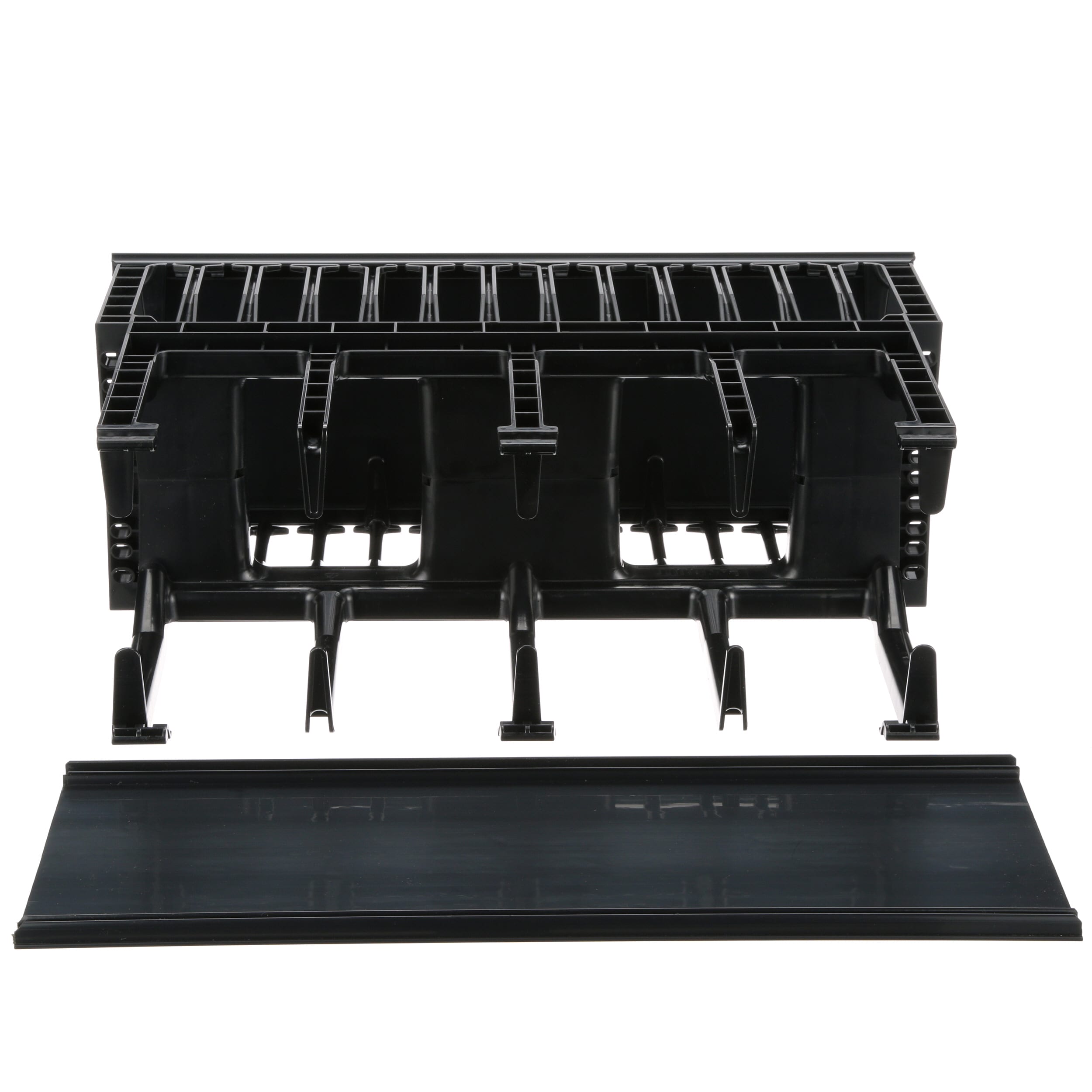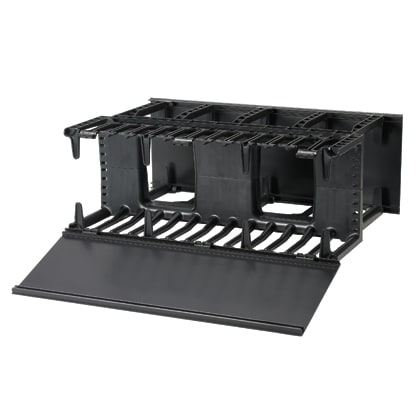 Le guide-câble horizontal NetManager™ de grande capacité permet une protection et une organisation rentables du câblage du réseau de fibre optique et de cuivre dans n'importe quel rack ou armoire EIA standard 483 mm. Les ouvertures larges à l'avant peuvent facilement accueillir des câbles de catégorie 6 et 6A, ce qui réduit le temps d'installation et les frais d'entretien. Le guidage deux faces comporte 4 U et présente des capots avant et arrière à charnière. Le guide-câble est noir.
