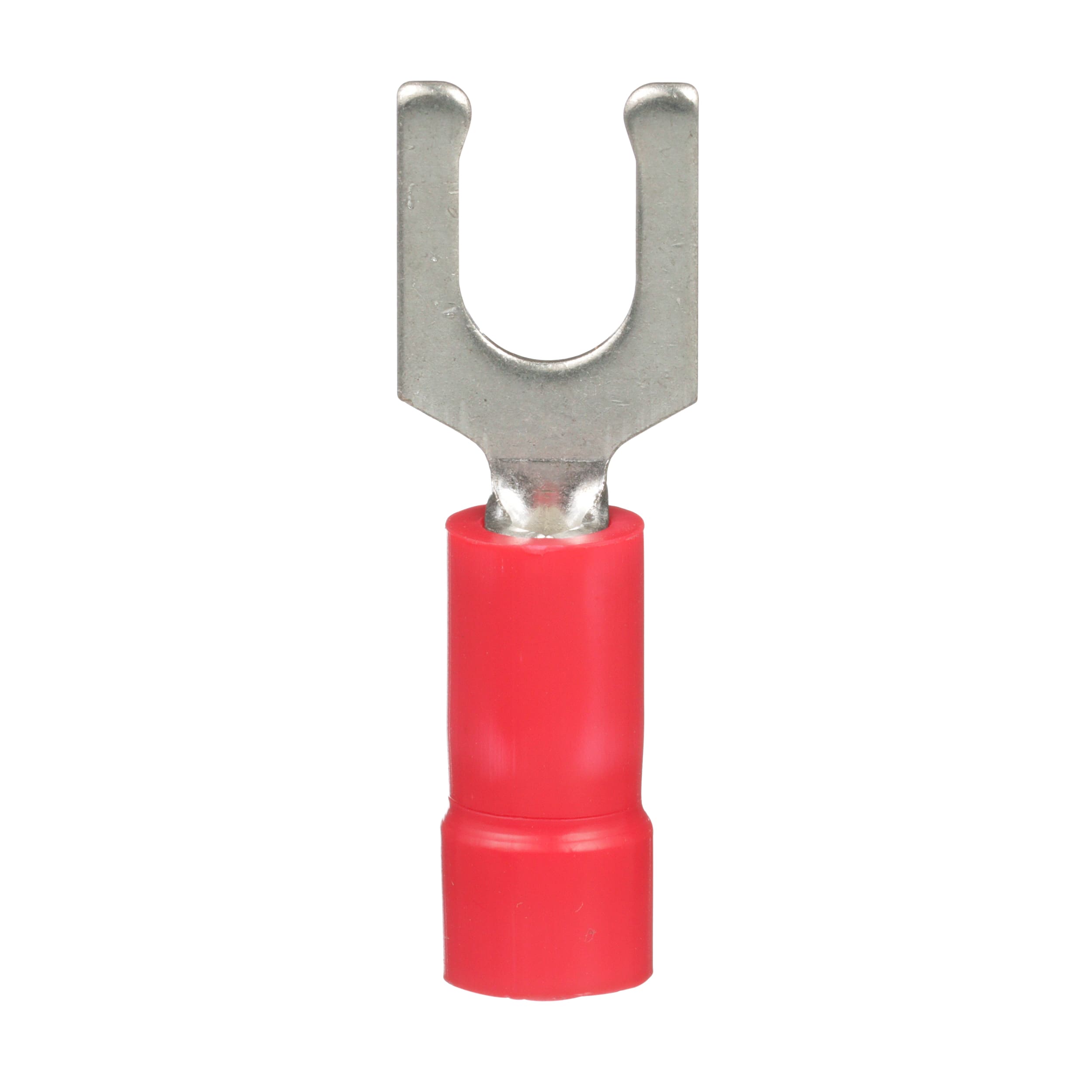 Cosse à fourche autobloquante, vinyle isolé, entrée en entonnoir, 22 - 18 AWG, taille de goujon #10, conditionnement en vrac.