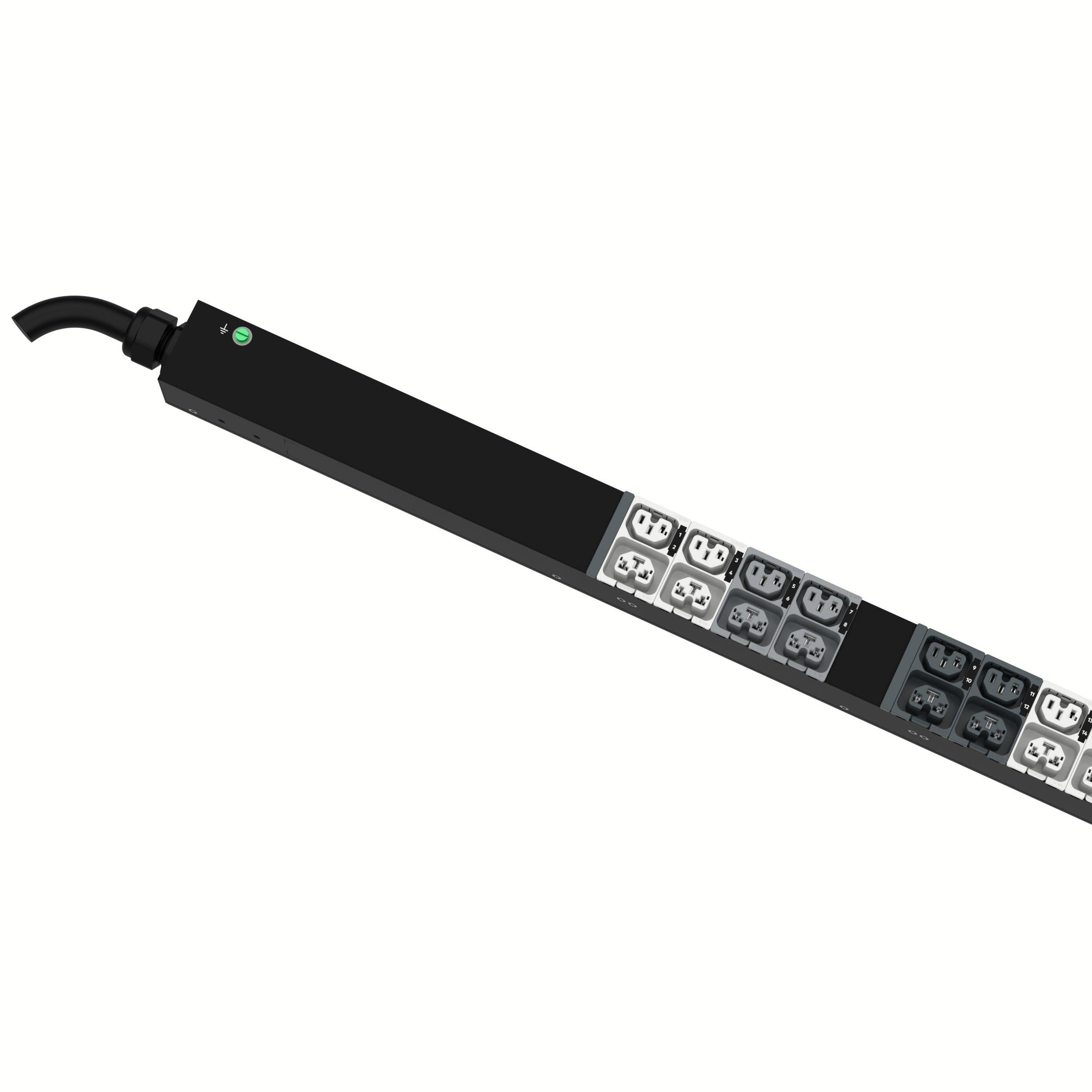 Le PDU à entrée contrôlée G5 SmartZone™ présente (24) prises C13/C15 et (24) prises C13/C15/C19/C21. Ce PDU est conçu avec des prises combinées qui permettent au receveur d'être utilisé comme prise C13/C15/C19 ou C21. Il s'agit d'un PDU triphasé 415 V double homologation 20/16 A livré avec une prise d'entrée 20 A/16 A IEC 60309 3P+N+E 6h (IP44) et un cordon d'alimentation de 3 m. Coloris du PDU : noir.