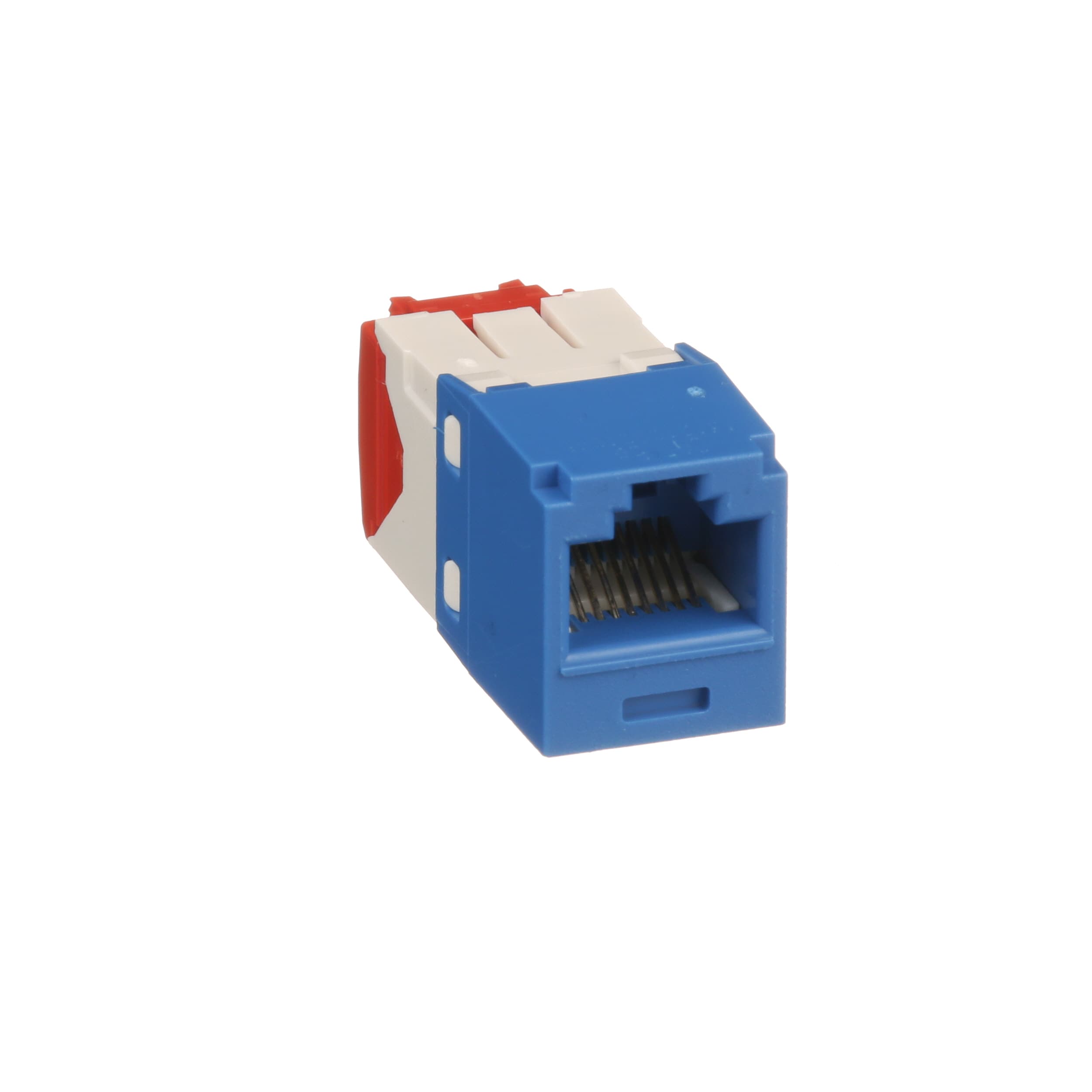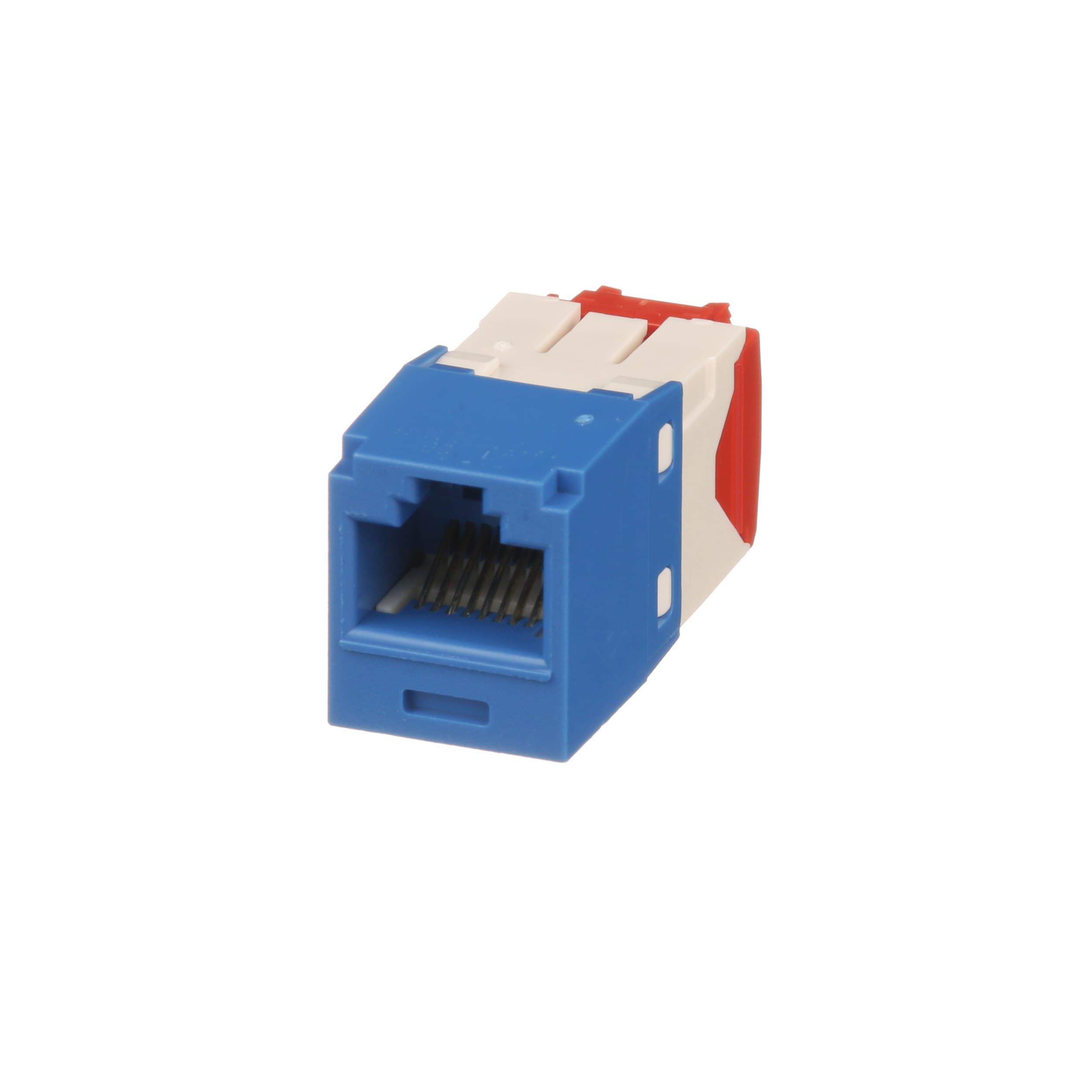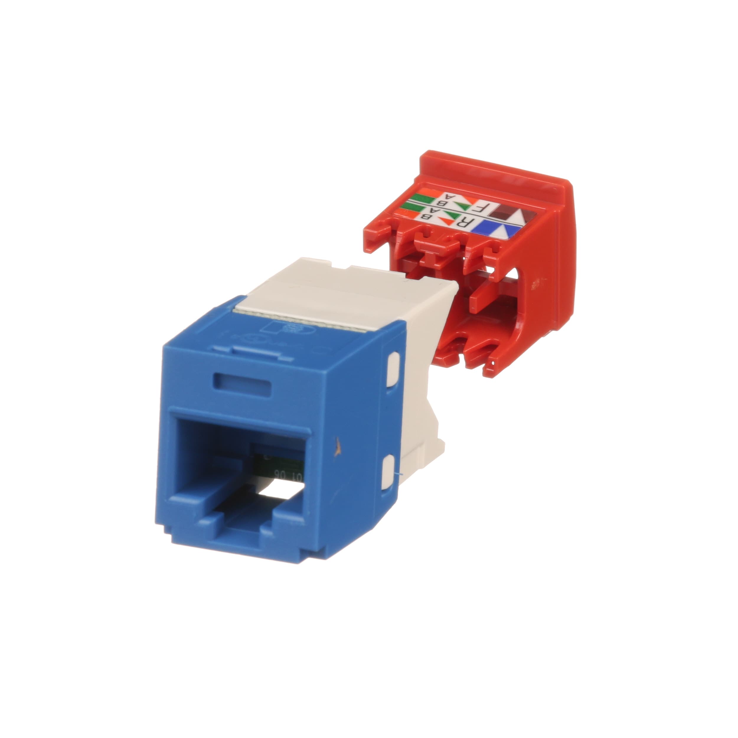 Le module jack Mini-Com™ catégorie 5e UTP RJ45 type TG est conçu pour raccorder un câble à 4 paires torsadées de 22-24 AWG. Chaque module est testé à 100 % en usine pour en assurer la continuité. Les contacts sont plaqués avec 1,3 µm d'or pour une performance supérieure. Les modules jack sont compatibles avec les panneaux de brassage modulaires et les plaques frontales Mini-Com. Coloris du module jack : bleu.