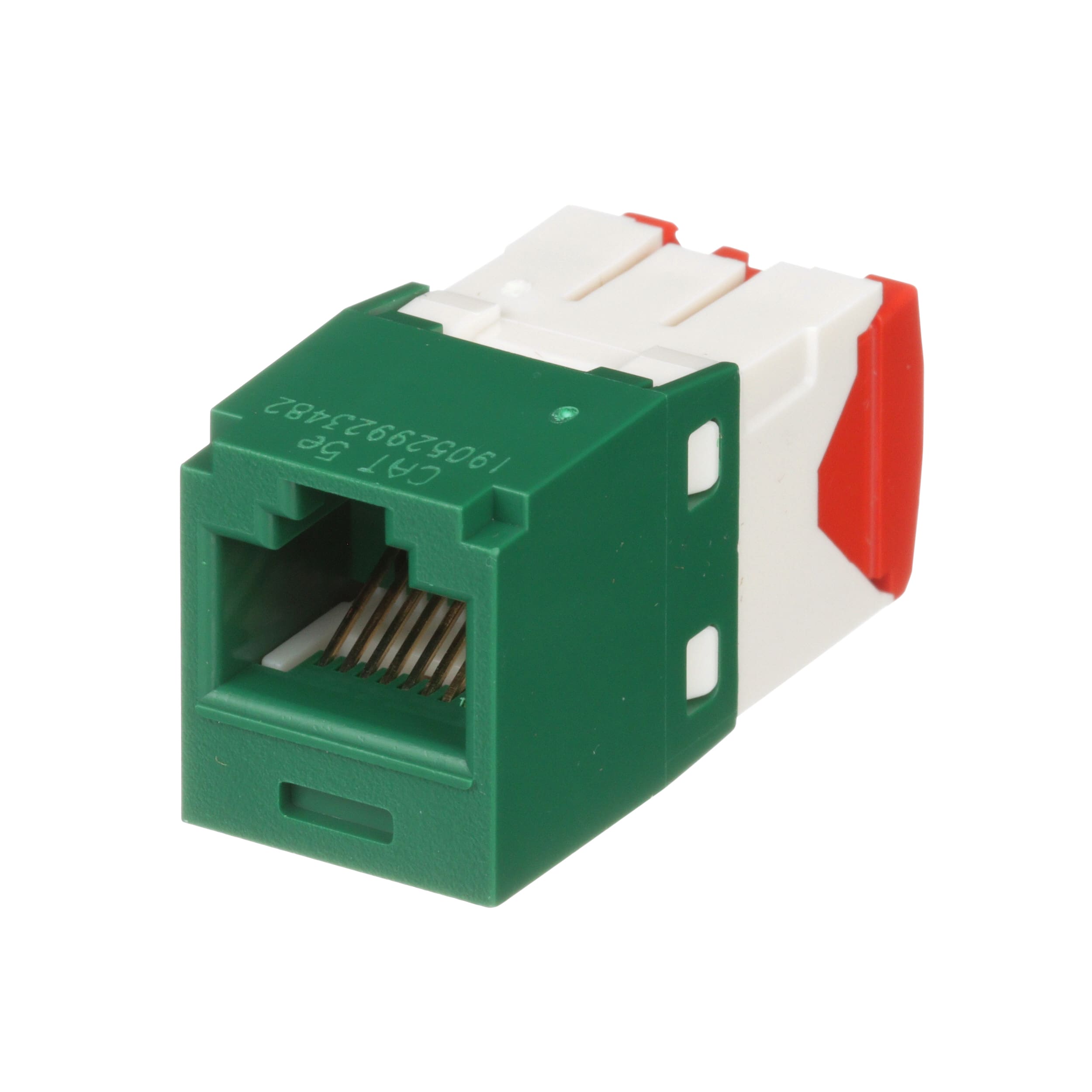 Le module jack Mini-Com™ catégorie 5e UTP RJ45 type TG est conçu pour raccorder un câble à 4 paires torsadées de 22-24 AWG. Chaque module est testé à 100 % en usine pour en assurer la continuité. Les contacts sont plaqués avec 1,3 µm d'or pour une performance supérieure. Les modules jack sont compatibles avec les panneaux de brassage modulaires et les plaques frontales Mini-Com. Coloris du module jack : vert.