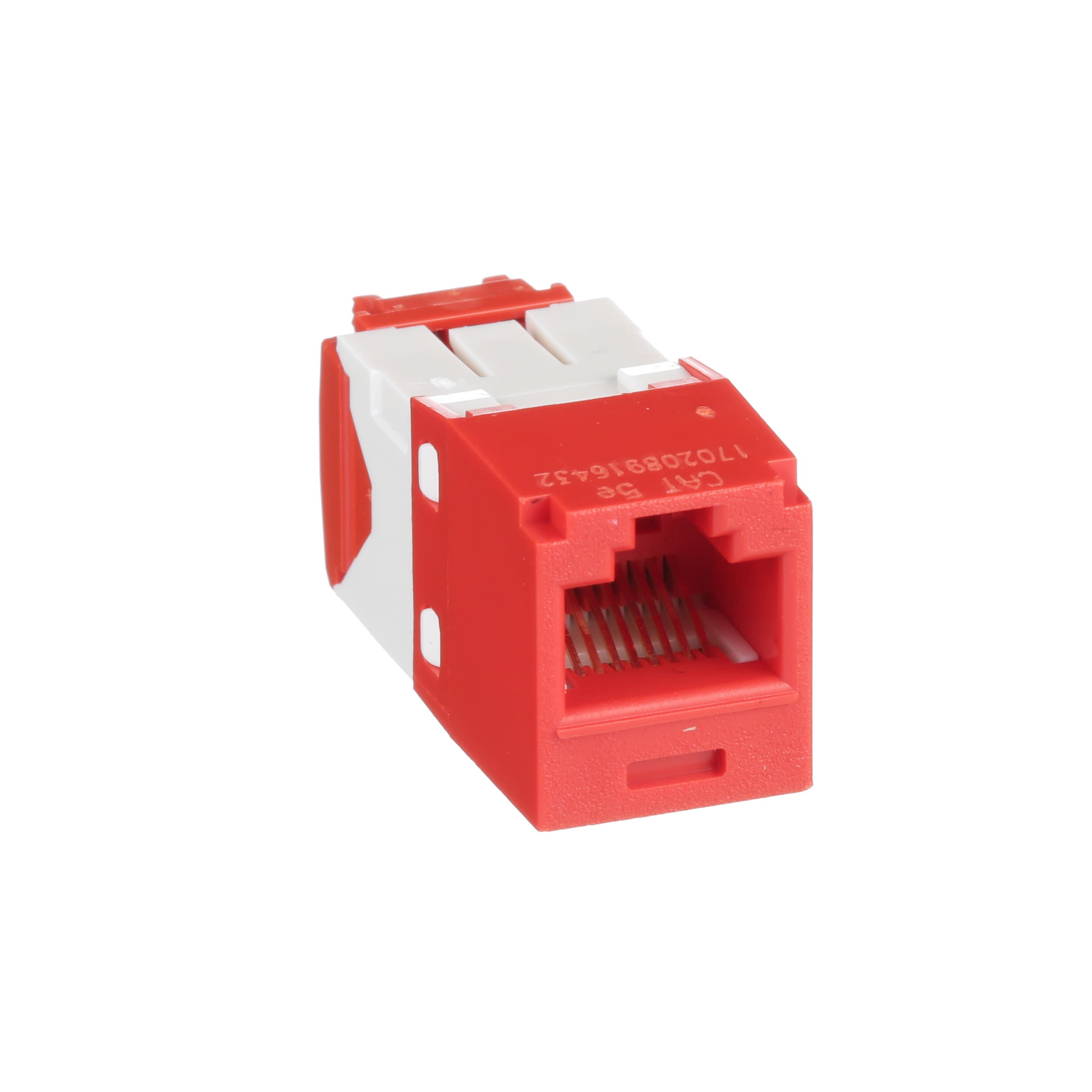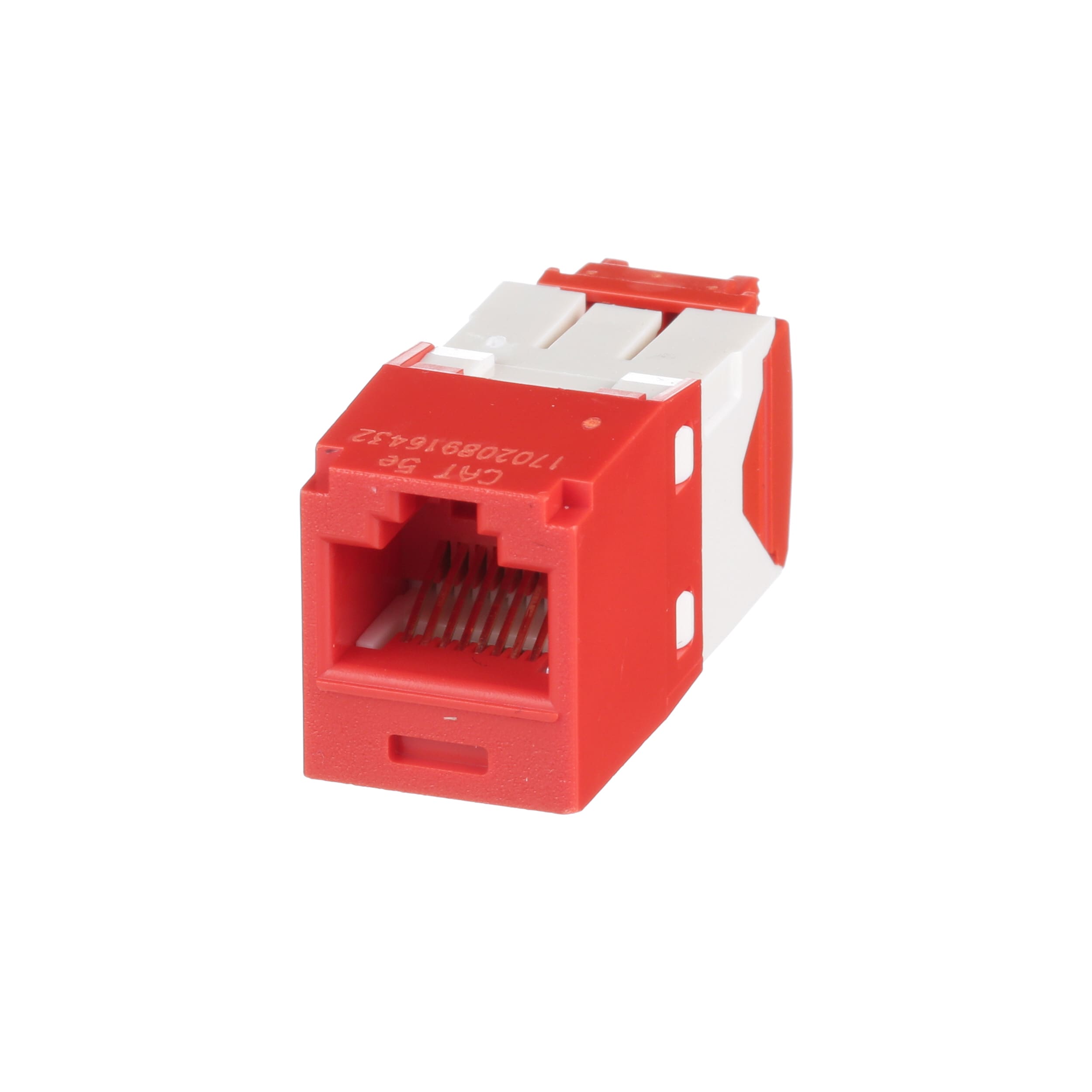 Le module jack Mini-Com™ catégorie 5e UTP RJ45 type TG est conçu pour raccorder un câble à 4 paires torsadées de 22-24 AWG. Chaque module est testé à 100 % en usine pour en assurer la continuité. Les contacts sont plaqués avec 1,3 µm d'or pour une performance supérieure. Les modules jack sont compatibles avec les panneaux de brassage modulaires et les plaques frontales Mini-Com. Coloris du module jack : rouge.