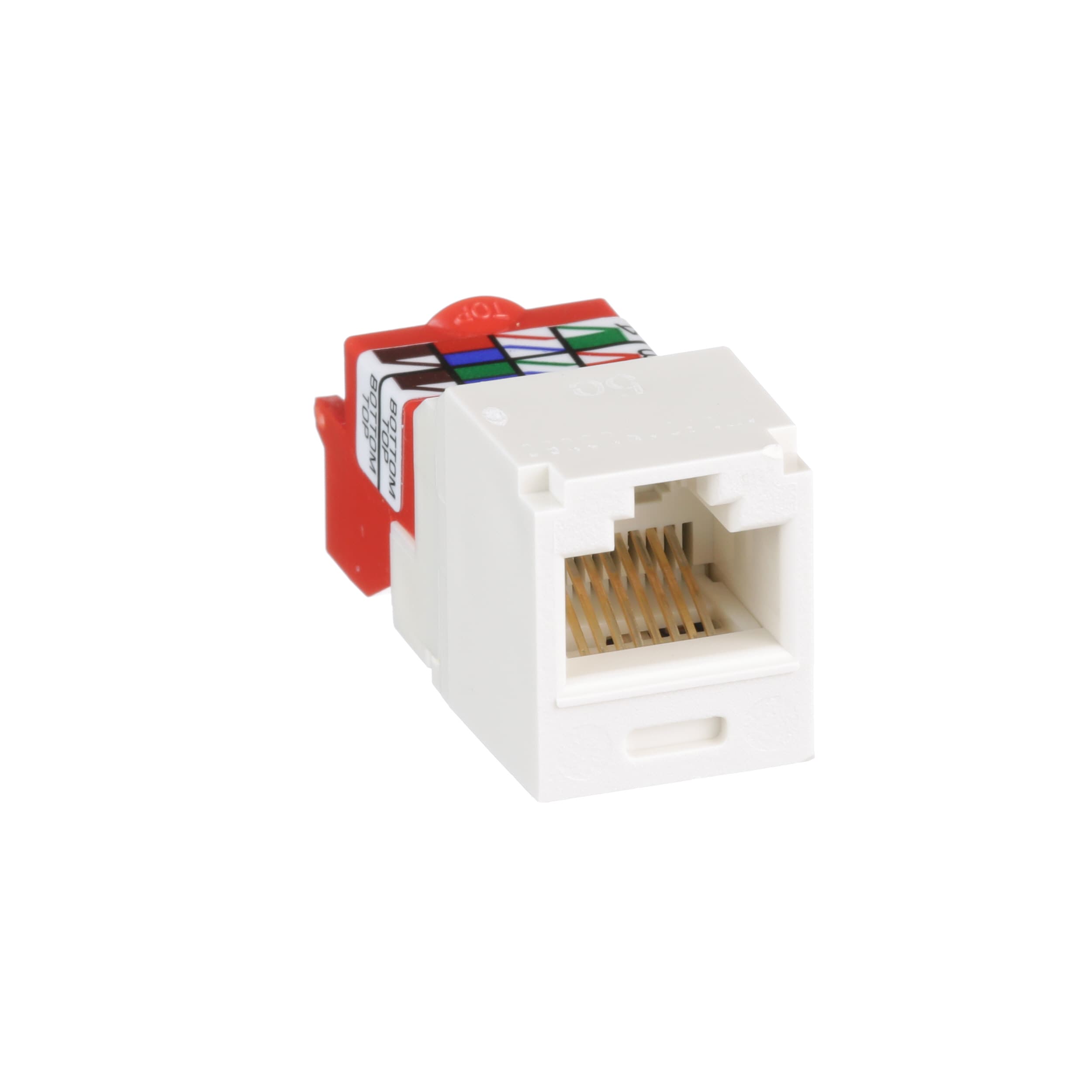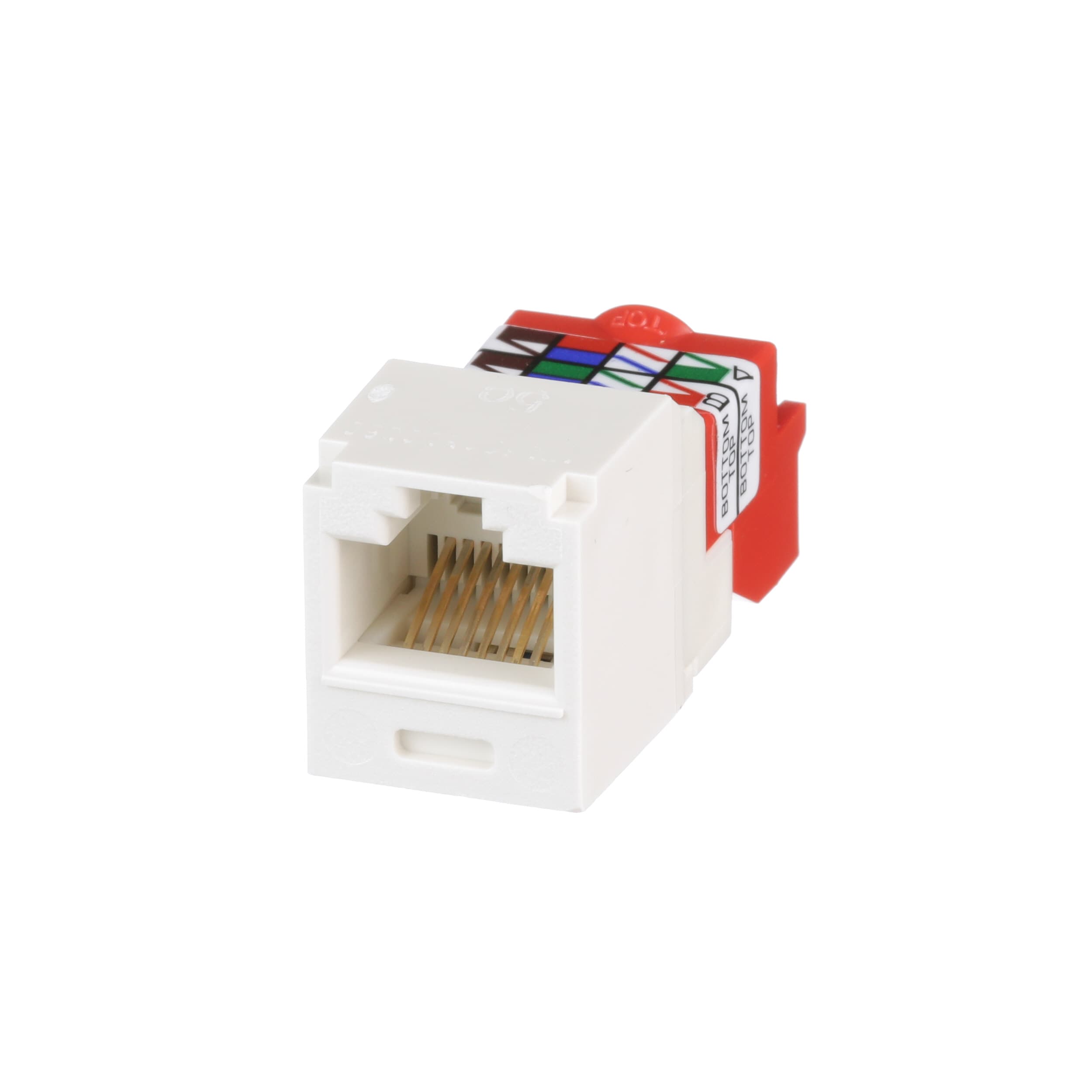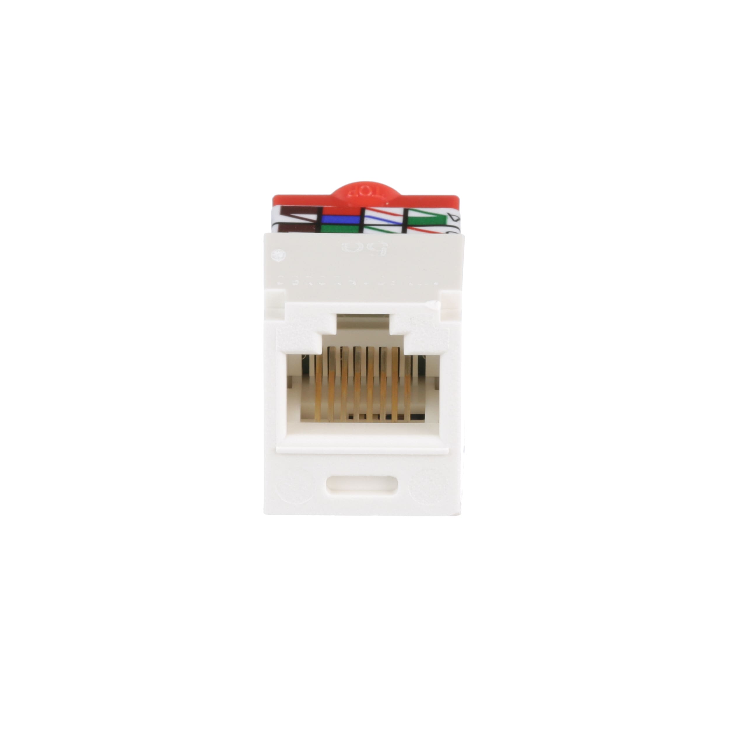Le module jack Mini-Com™ catégorie 5e UTP RJ45 type TP est conçu pour raccorder un câble à 4 paires torsadées de 22-24 AWG. Chaque module est testé à 100 % en usine pour en assurer la continuité. Les contacts sont plaqués avec 1,3 µm d'or pour une performance supérieure. Les modules jack sont compatibles avec les panneaux de brassage modulaires et les plaques frontales Mini-Com. Coloris du module jack : blanc cassé.