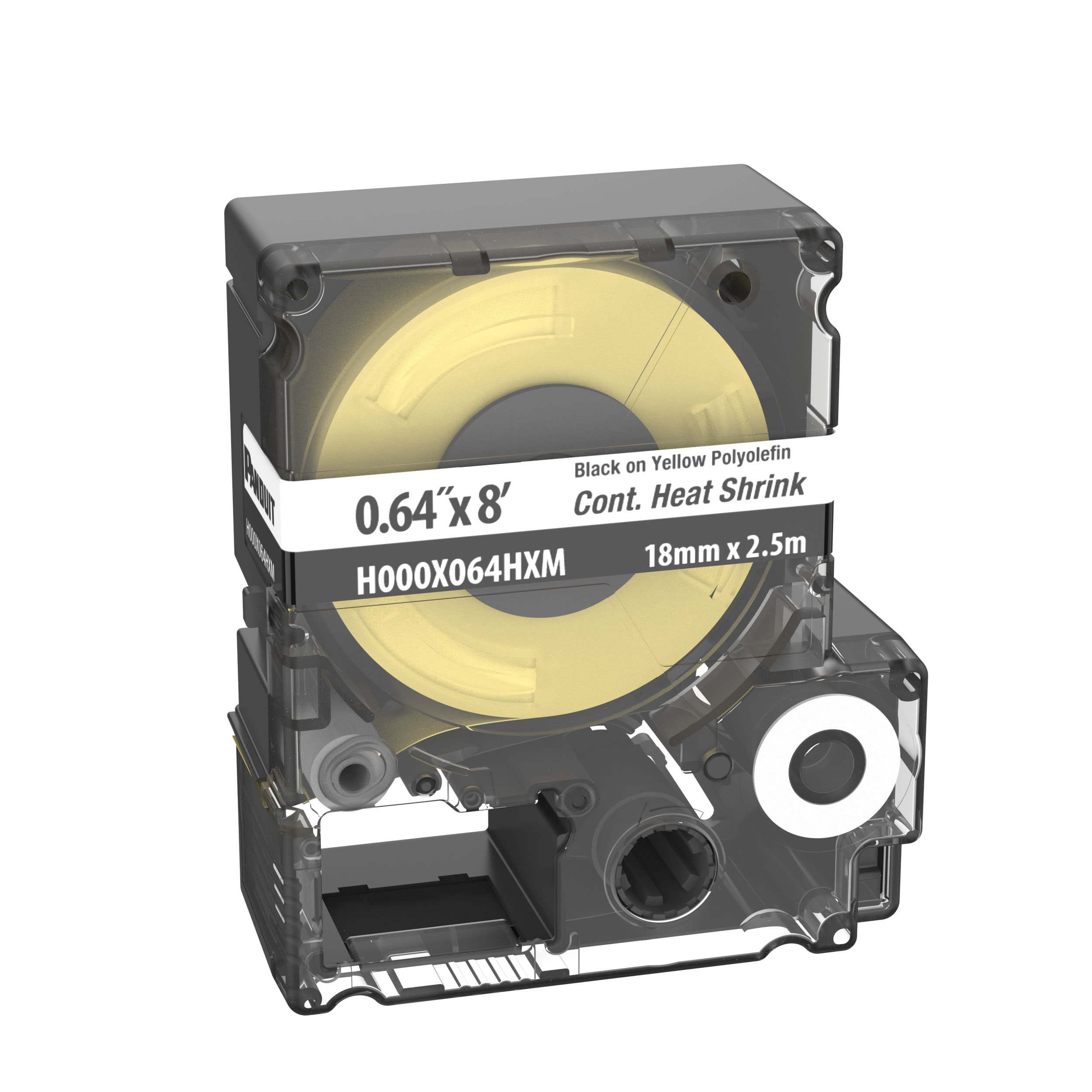 Les étiquettes jaunes à gaine thermorétractable continues pour imprimante portable sont fabriquées en polyoléfine de qualité militaire avec un rapport de 2:1. Elles mesurent 16,3 mm de diamètre et 2,4 m de long pour un calibre de fil de 12-6 AWG. La cassette d'étiquettes MP™ à chargement rapide contient à la fois le matériau pour l'étiquette ainsi que le ruban pour permettre un changement d'étiquette facile.