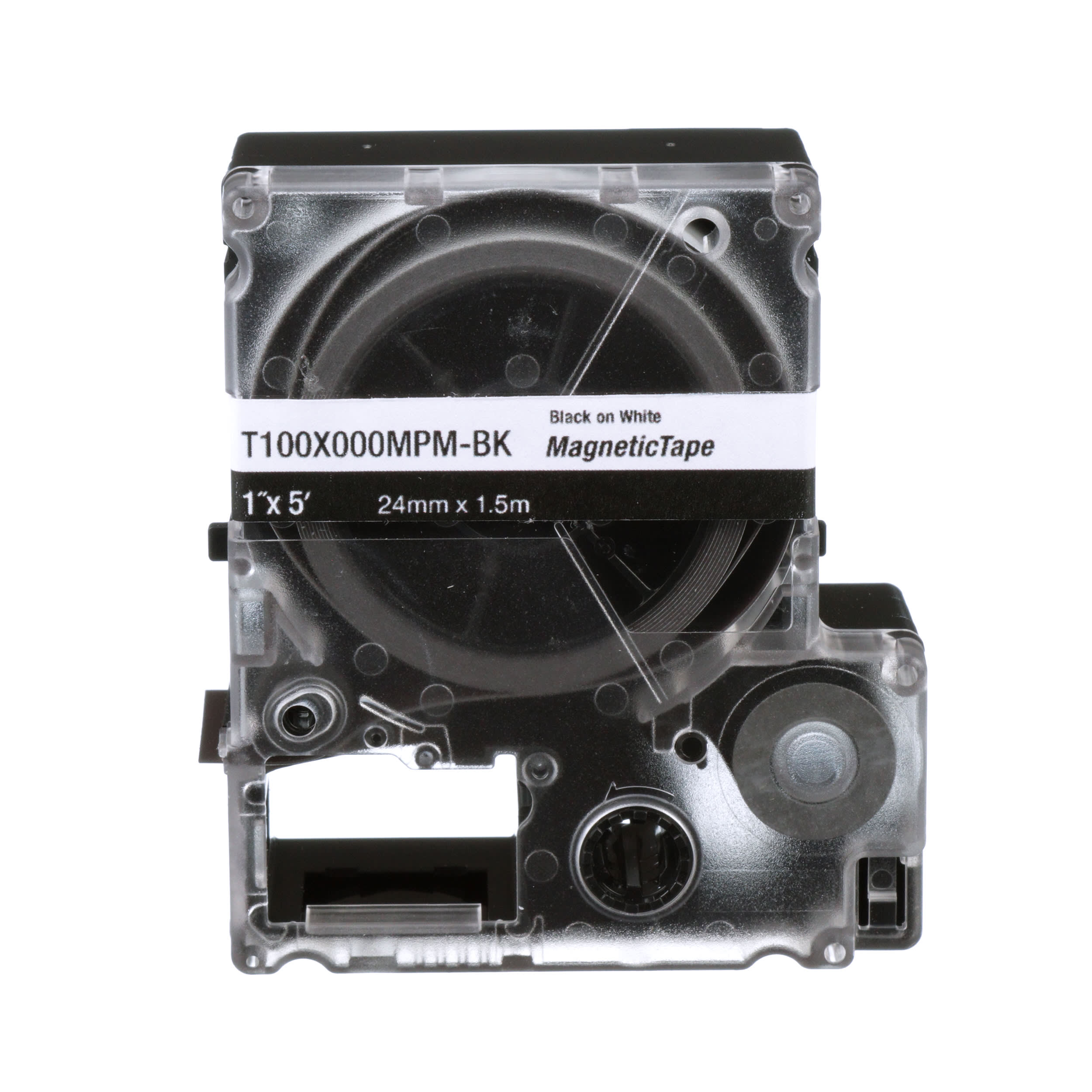 La cassette à ruban continu magnétique T100X000MPM-BK comprend à la fois du matériel d'étiquetage et du ruban pour faciliter le changement. Impression personnalisée, à la demande, de marqueurs pour tuyaux ou bacs, indicateurs de tension, panneaux et étiquettes d'identification réseau. Pour des applications d'étiquettes plates uniquement. A utiliser avec les imprimantes MP100 et MP300. Magnétique. 25,4 mm × 1,5 m. Coloris noir sur blanc. 1 cassette par package.