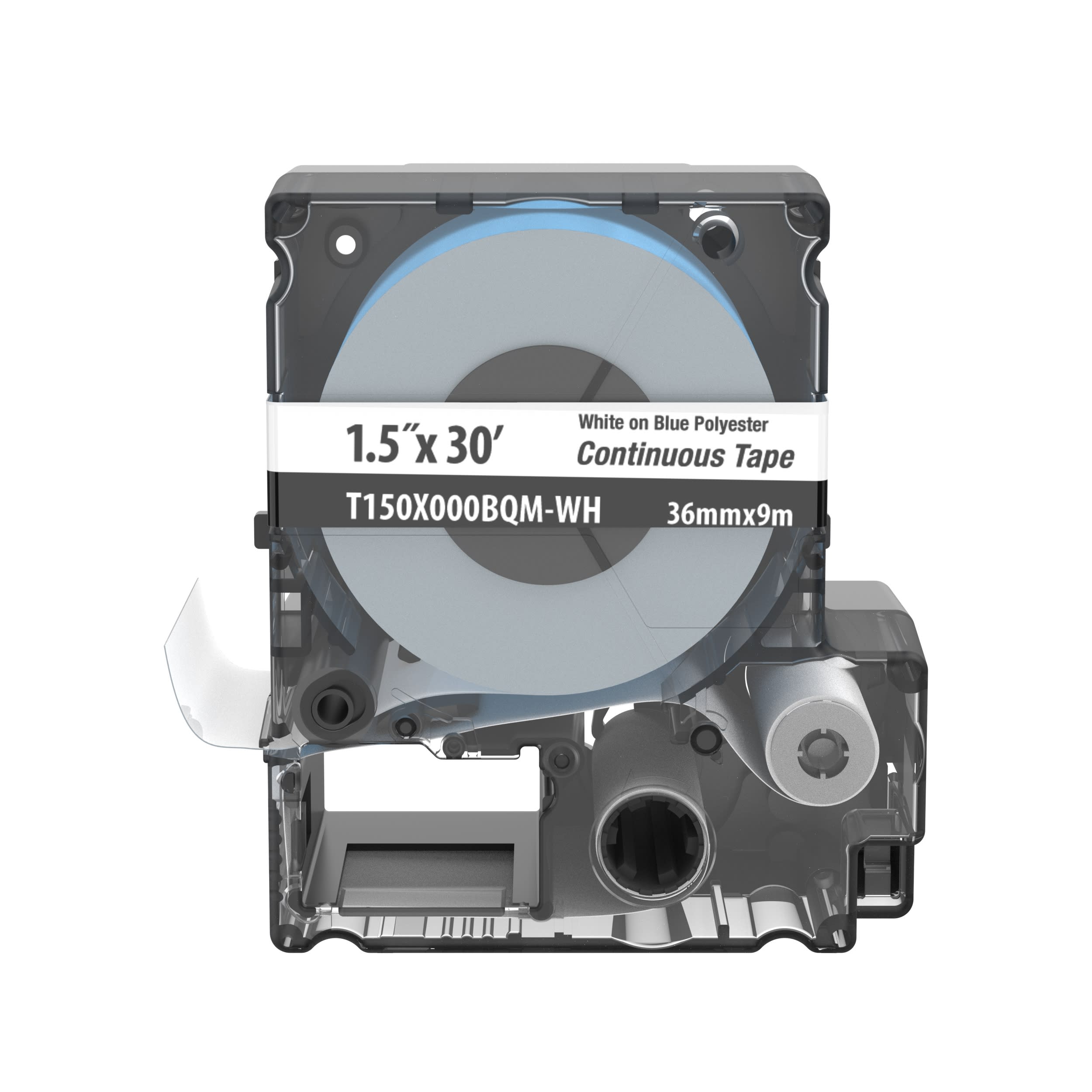 La cassette à ruban continu T150X000BQM-WH comprend à la fois du matériel d'étiquetage et du ruban pour faciliter le changement. Impression personnalisée, à la demande, de marqueurs pour tuyaux ou bacs, indicateurs de tension, panneaux et étiquettes d'identification réseau. Pour des applications d'étiquettes plates uniquement. A utiliser avec l'imprimante MP300. Polyester. 36 mm × 9,1 m. Coloris : blanc sur bleu clair. 1 cassette par package.