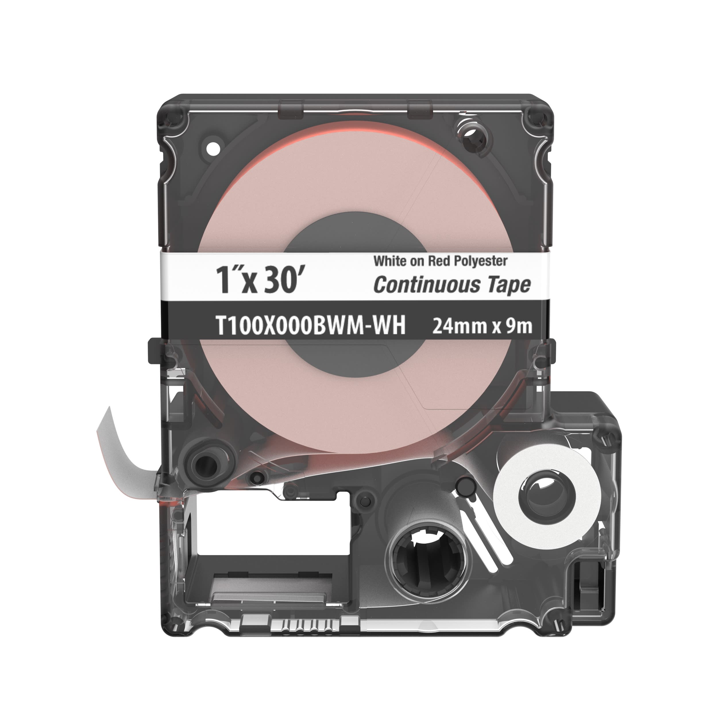 La cassette à ruban continu T100X000BWM-WH comprend à la fois du matériel d'étiquetage et du ruban pour faciliter le changement. Impression personnalisée, à la demande, de marqueurs pour tuyaux ou bacs, indicateurs de tension, panneaux et étiquettes d'identification réseau. Pour des applications d'étiquettes plates uniquement. A utiliser avec les imprimantes MP300, MP200 et MP100. Polyester. 25,4 mm × 9,1 m. Coloris : blanc sur rouge clair. 1 cassette par package.