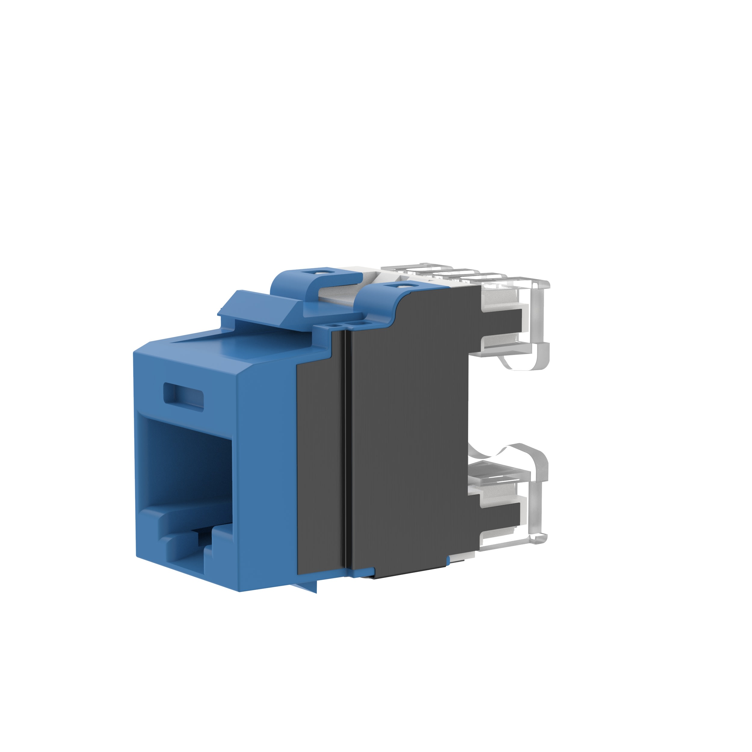 Le module jack keystone à enfichage UTP RJ45 Cat 6A NetKey™ permet de raccorder les câbles à paires torsadées 22-26 AWG 4 paires. Chaque jack est intégralement testé en usine afin de surpasser les exigences de performances standard du secteur. Les contacts sont plaqués avec 1,3 µm d'or pour une performance supérieure. Les jacks disposent d'un numéro de série individuel à des fins de traçabilité et sont compatibles avec les interfaces keystone telles que les plaques frontales NetKey™, les panneaux de brassage modulaires et les boîtes pour embase en surface. Coloris du jack : bleu. Chaque package contient 25 unités.