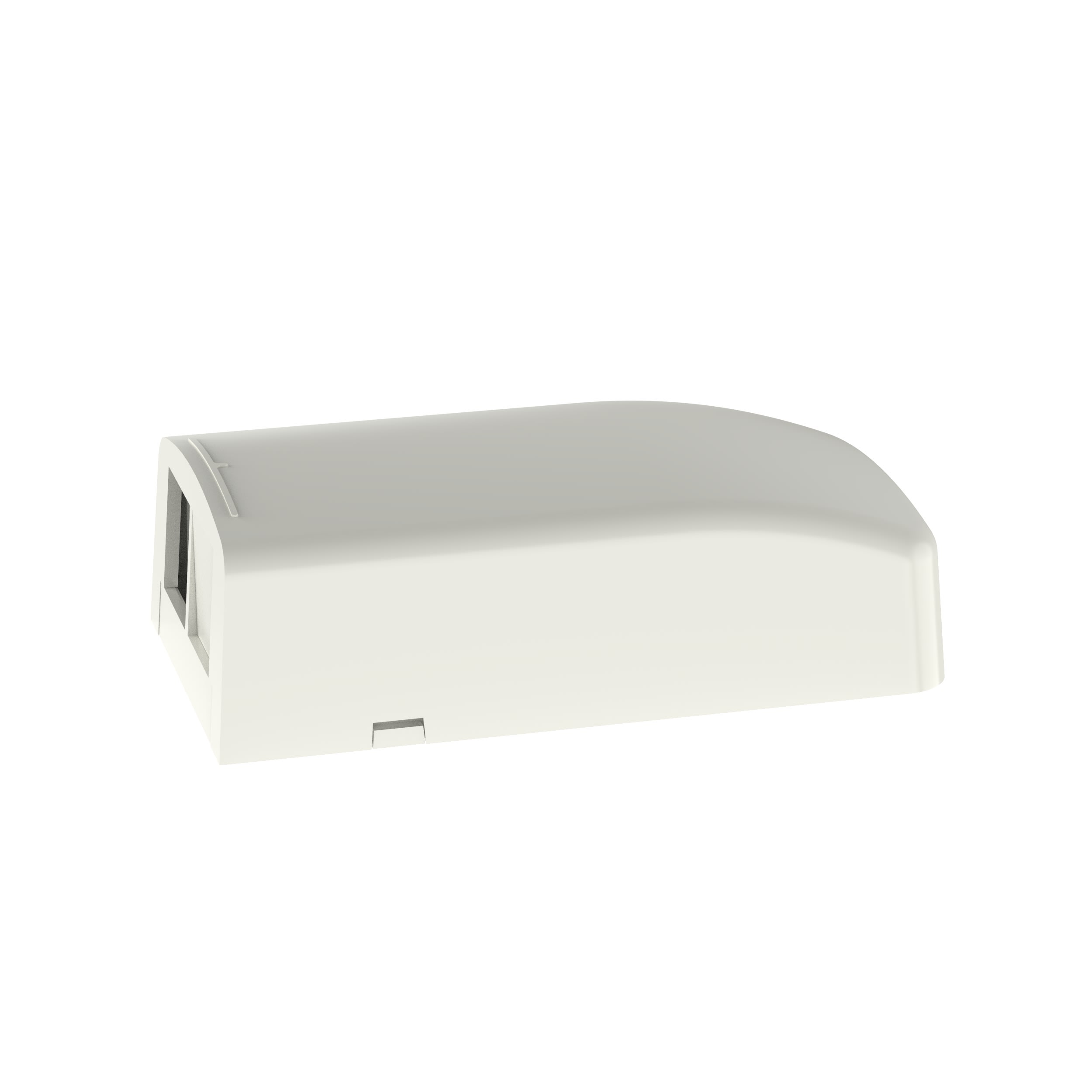 Le boîtier de fixation en saillie NetKey™ est homologué plénum et peut accueillir deux modules keystone. Le boîtier offre de nombreuses options de montage utilisant du ruban adhésif, des vis ou un aimant en option. Le boîtier peut être identifié à l'aide d'une étiquette adhésive et est de coloris blanc arctique.