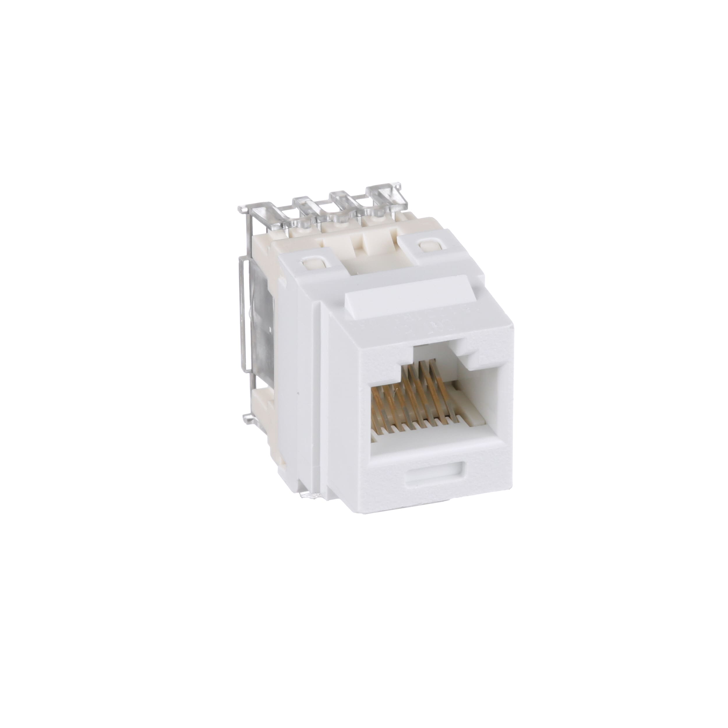 Le module jack keystone à enfichage UTP RJ45 Cat 5e NetKey™ permet de raccorder les câbles à paires torsadées 22-26 AWG 4 paires. Chaque module est testé à 100 % en usine pour dépasser les exigences standard du secteur. Les contacts sont plaqués avec 1,3 µm d'or pour une performance supérieure. Les jacks disposent d'un numéro de série individuel et sont compatibles avec les interfaces keystone telles que les plaques frontales NetKey™, les panneaux de brassage modulaires et les boîtes pour embase en surface. Coloris du module : blanc.