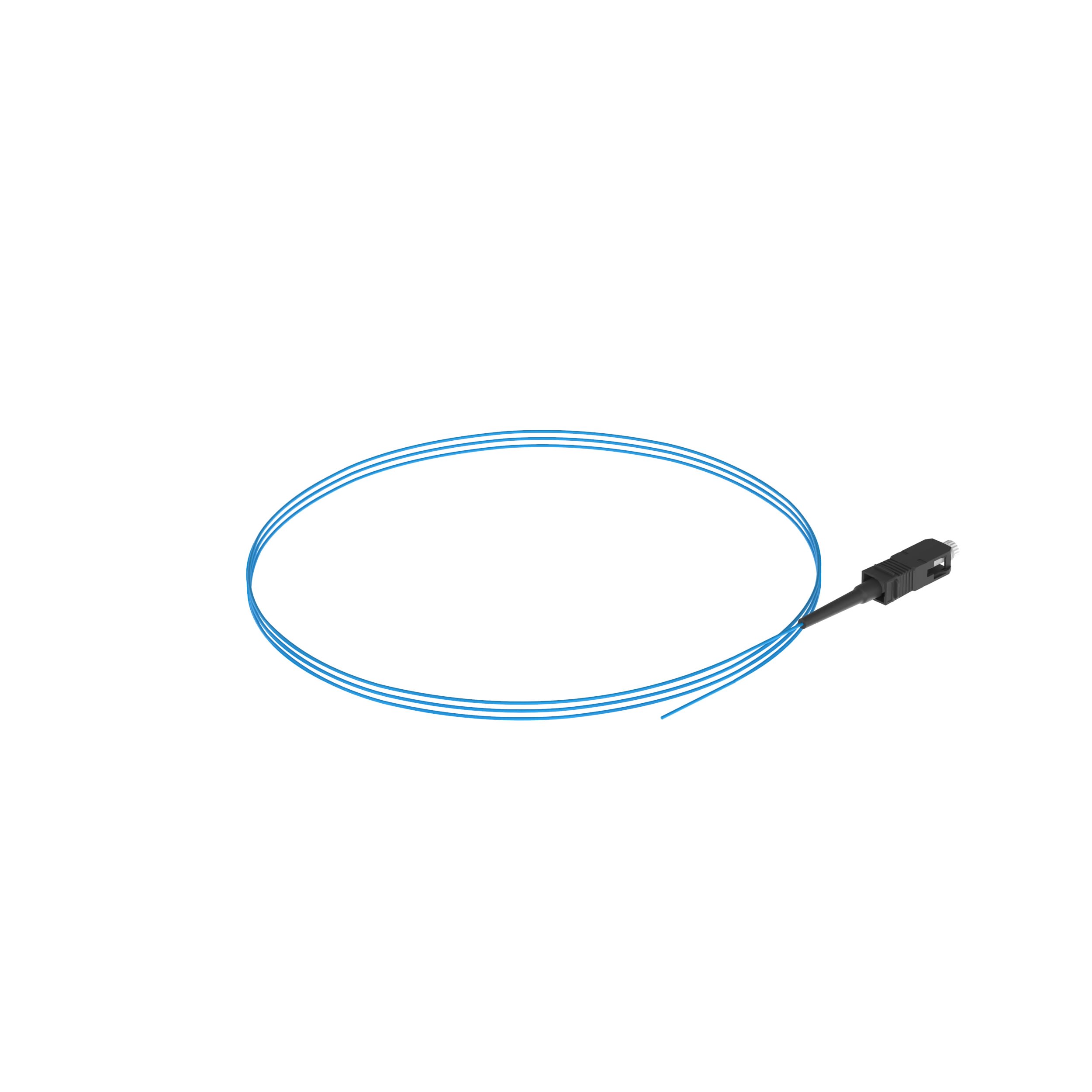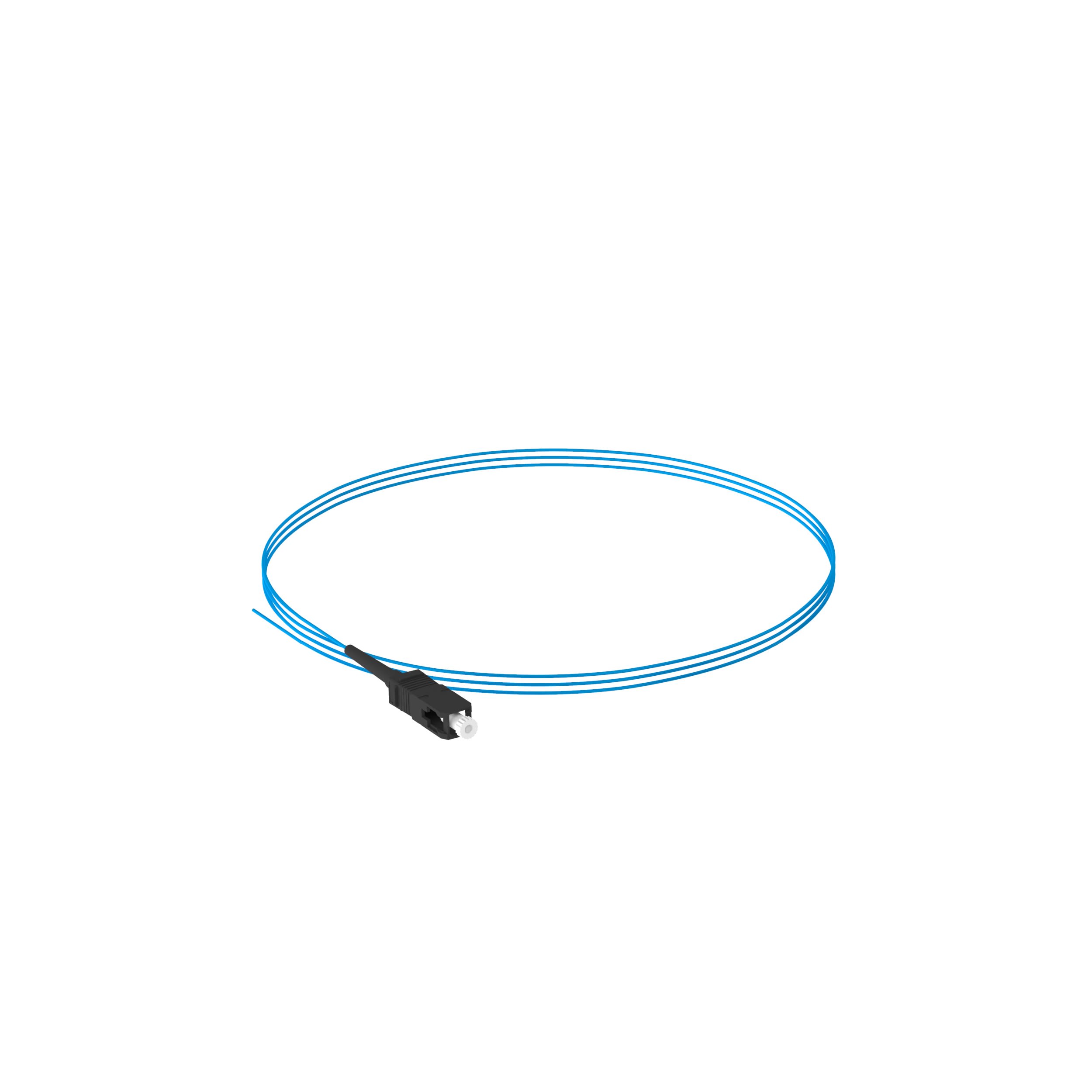Le cordon de raccordement simplex pour fibre est un cordon pour fibre avec tampon OM3 de 900 µm sans gaine. Il possède des connecteurs SC vers pigtail. Il dispose d'une perte d'insertion standard, est de coloris bleu aqua et mesure 3 mètres de long.