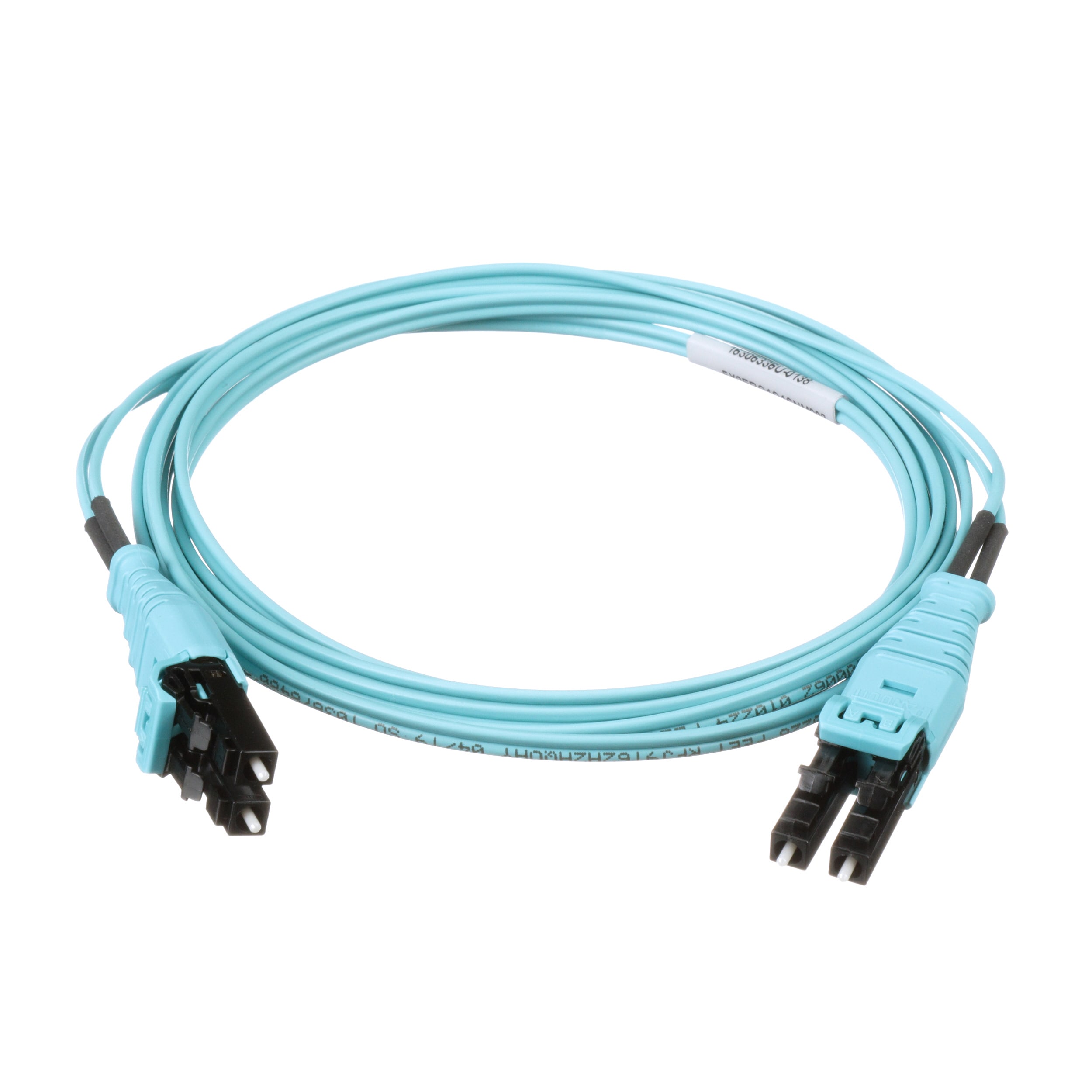 Cordon de raccordement de 2 fibres OM3, LC push-pull vers LC push-pull, gaine de 16 mm, homologué ascendant (OFNR), PI standard 2 mètres