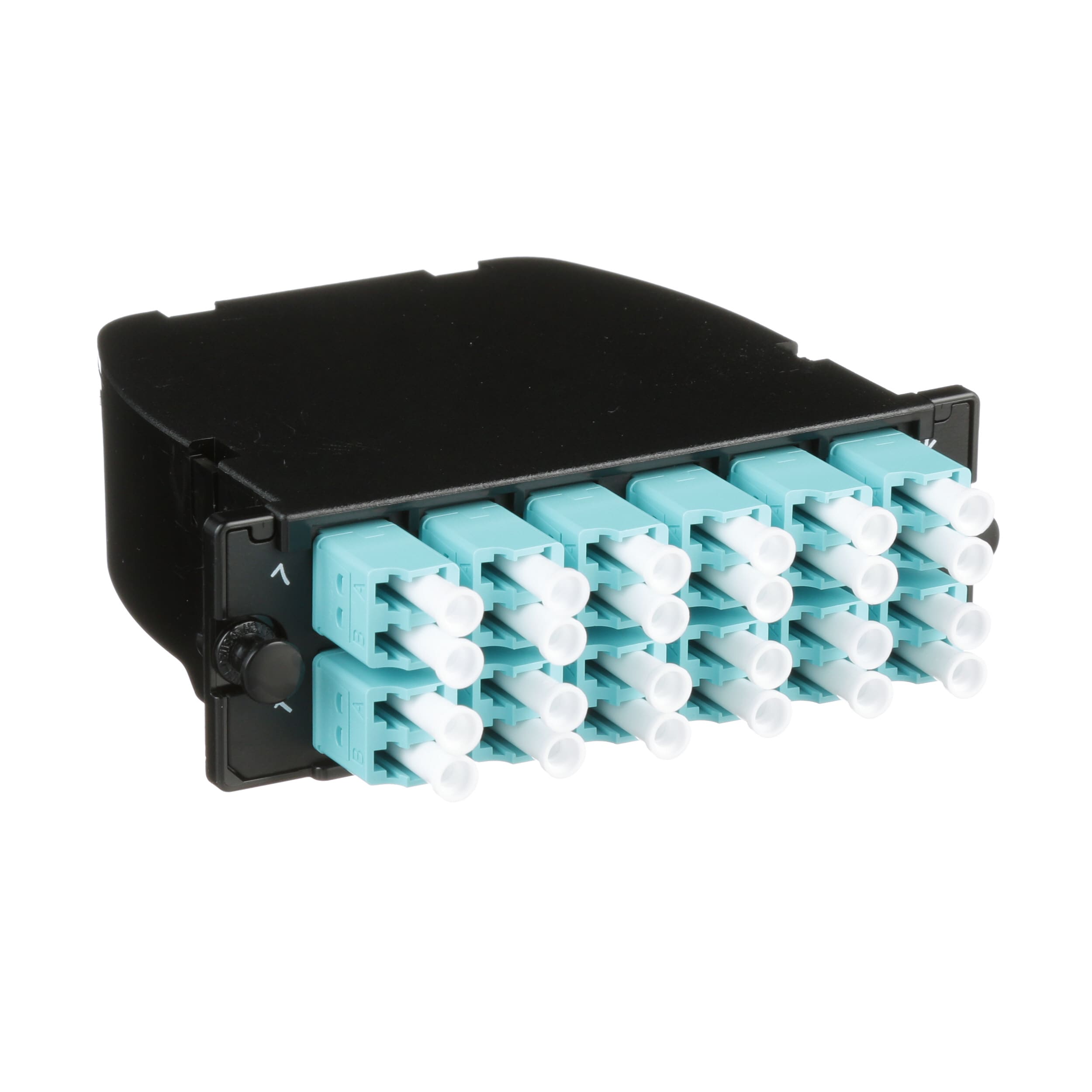 FIBRE OM3+, PERTE FAIBLE OPTIMISEE, 24 FIBRES AU TOTAL, ADAPTATEUR DUPLEX LC (COLORIS ET MANCHON FENDU DICTES PAR LE TYPE DE FIBRE), METHODE STANDARD A
