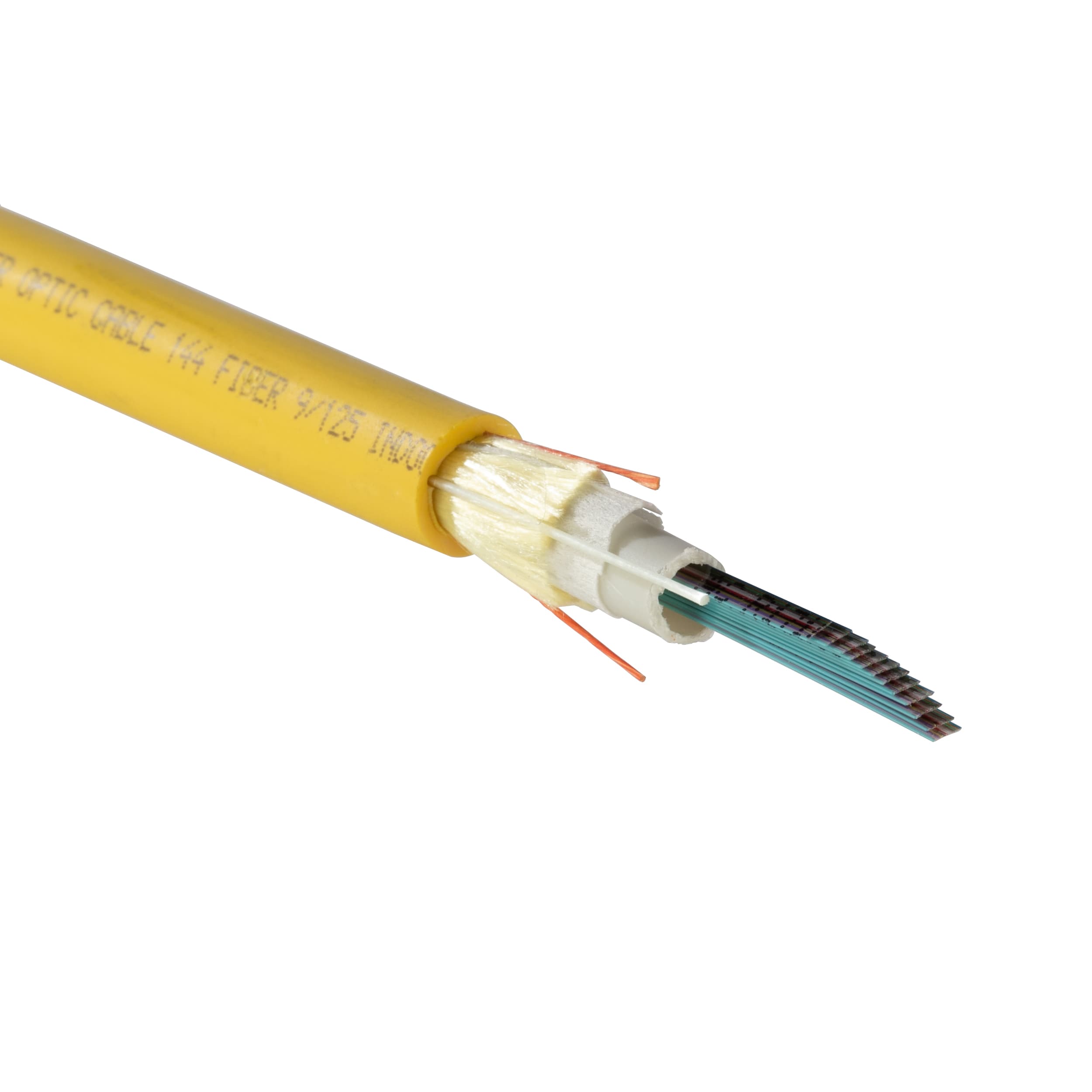 Ce câble à 144 fibres à ruban plat pour utilisation en intérieur/extérieur est un câble OS2 homologué Riser (OFNR) à faible émission de fumée sans halogène (LSZH), homologué CPR et Euroclasse B2ca (MT).