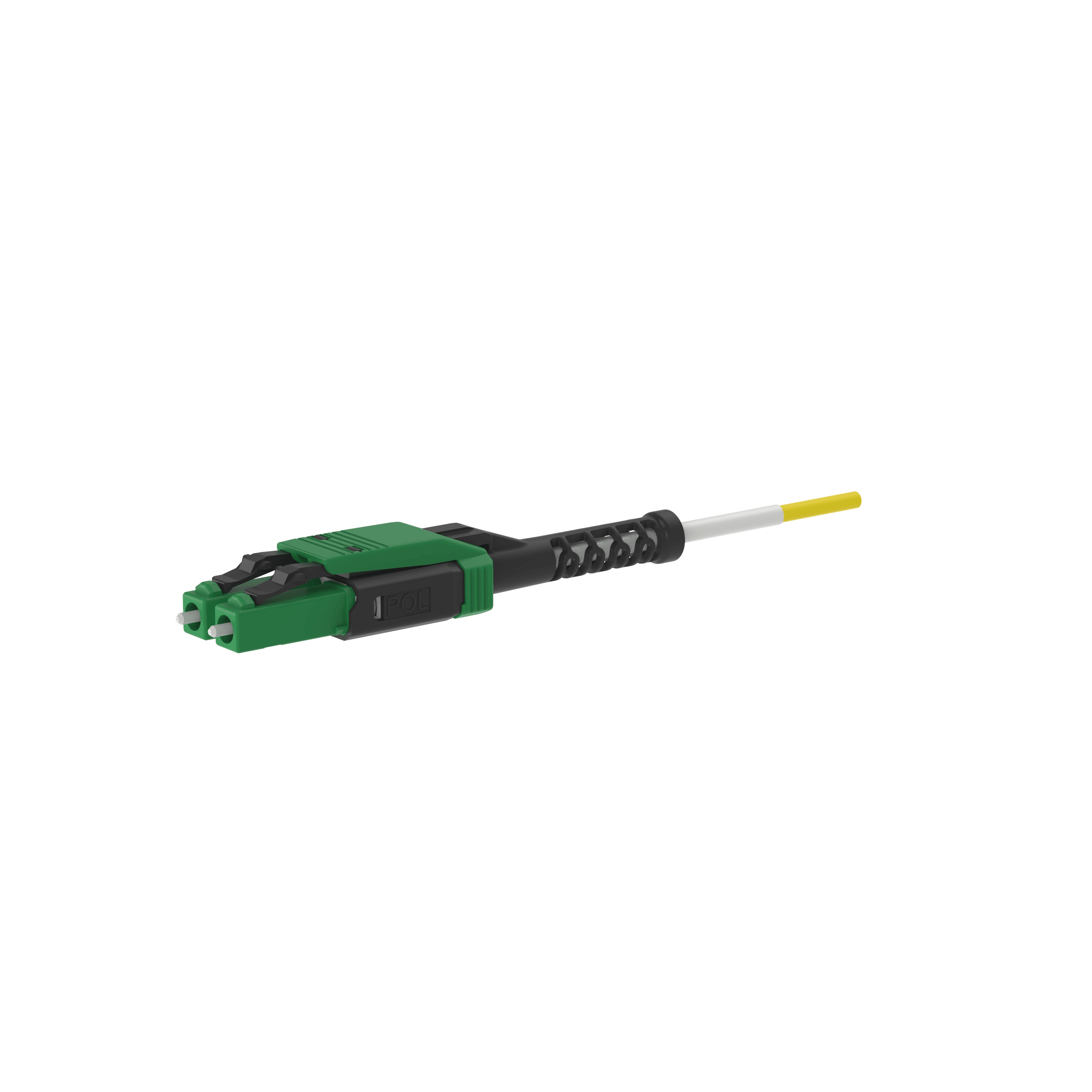 Cordon de raccordement duplex OS2 pour fibre avec une gaine de câble de 2,0 mm. Cet élément à faible émission de fumée sans halogène (LSZH) présente des connecteurs pull-boot LC APC Uniboot, dispose d'une perte d'insertion optimisée et mesure 3 mètres de long.