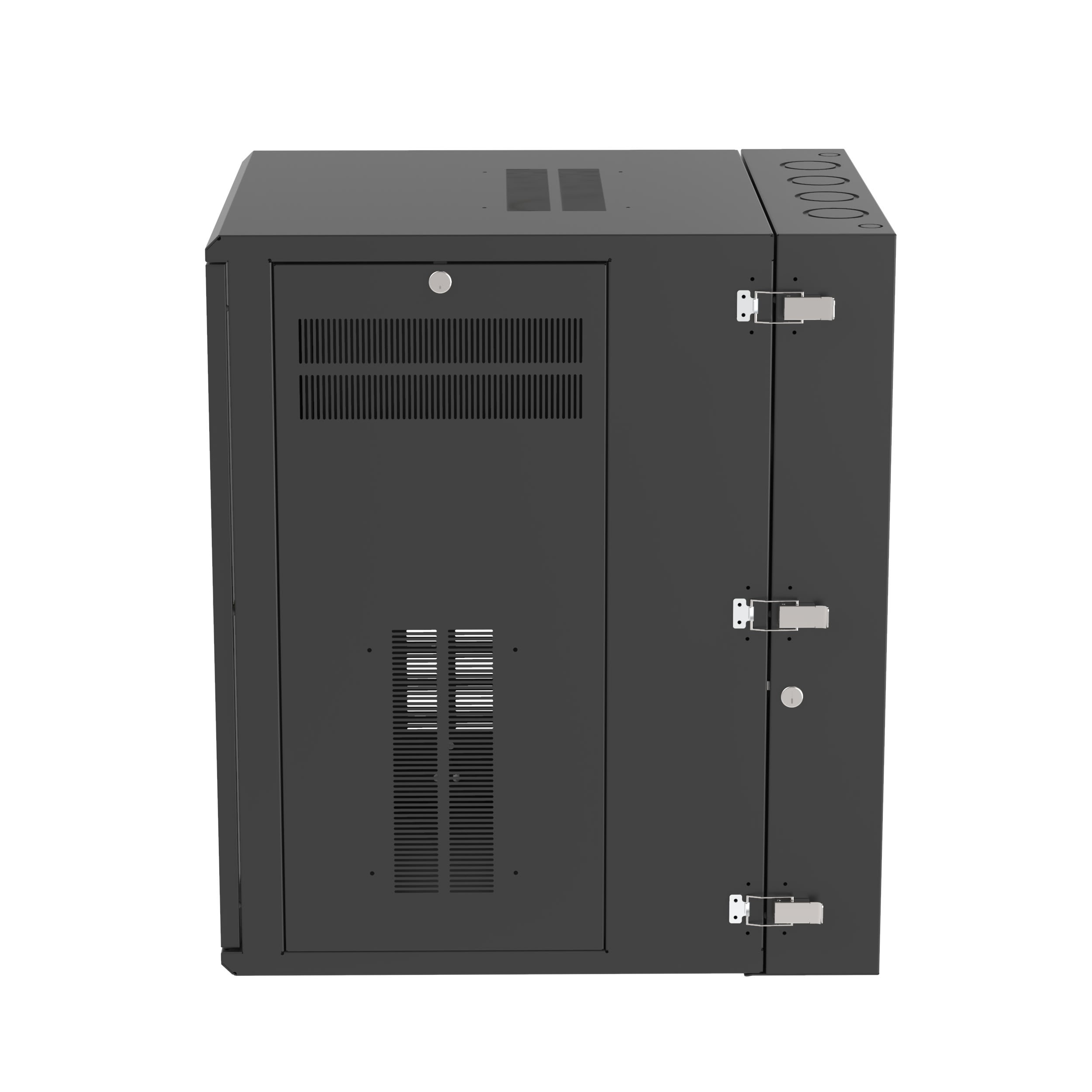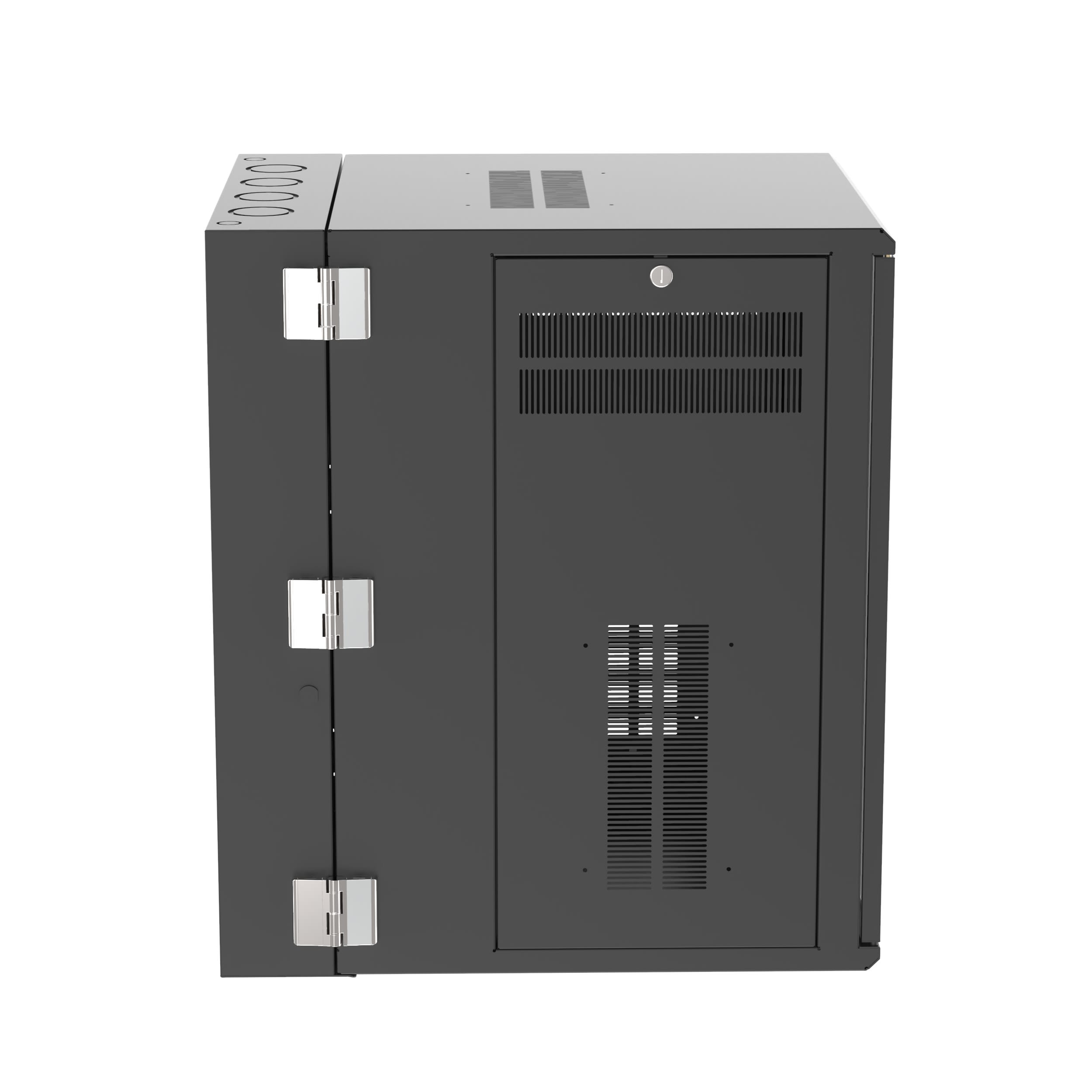 L'armoire à fixation murale PanZone est dotée d'une porte avec fenêtre de 30 pouces de profondeur. Ses portes à charnière à l'avant et à l'arrière permettent un accès total à l'équipement réseau afin de faciliter les déplacements, ajouts et modifications. Les panneaux latéraux amovibles permettent un accès au routage de câble. Le boîtier est conçu pour permettre un contrôle adapté de la température pour une utilisation avec différents équipements réseau. Le boîtier de 18 U présente une capacité de charge jusqu'à 136,08 kg et est de coloris noir.