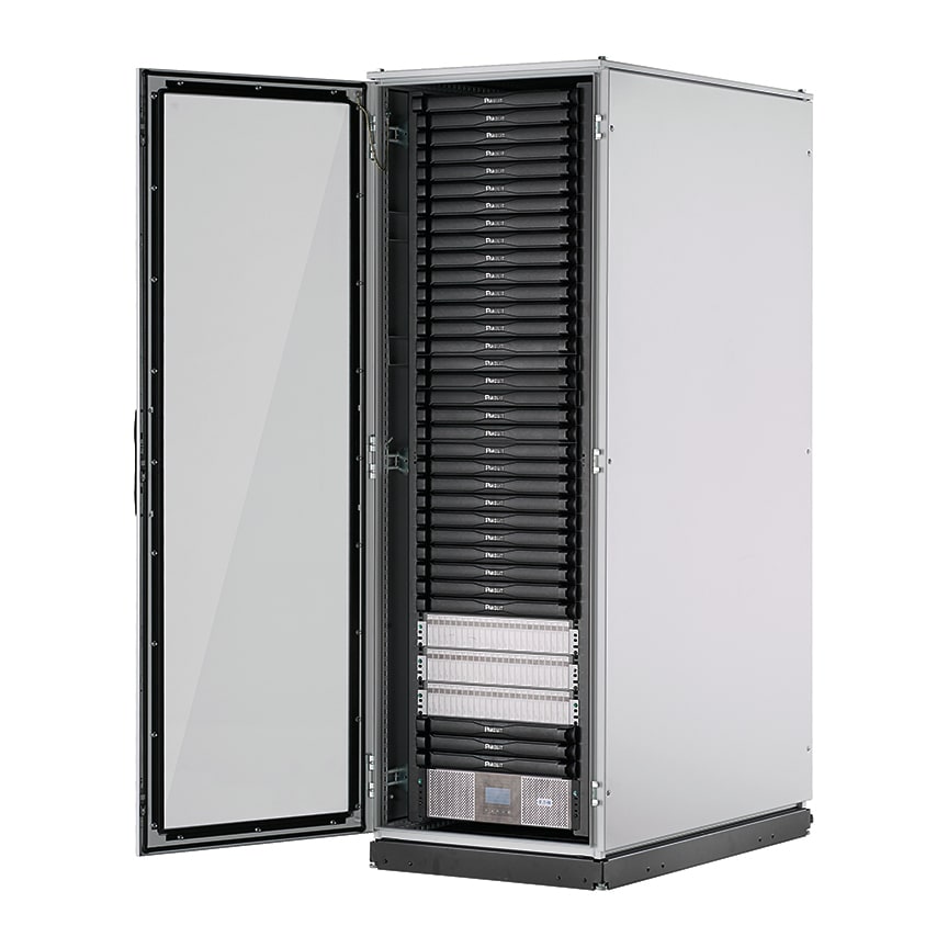MICRO DATA CENTER (MDC) PRECONFIGURE, NEMA TYPE 12, 42 U, UN PANNEAU LATERAL PLEIN, UN PANNEAU LATERAL AVEC DECOUPE POUR CA 12 000 BTU, CABLAGE RESEAU, PANNEAUX DE BRASSAGE, GUIDE-CABLES, MISE A LA TERRE ET ROULETTES