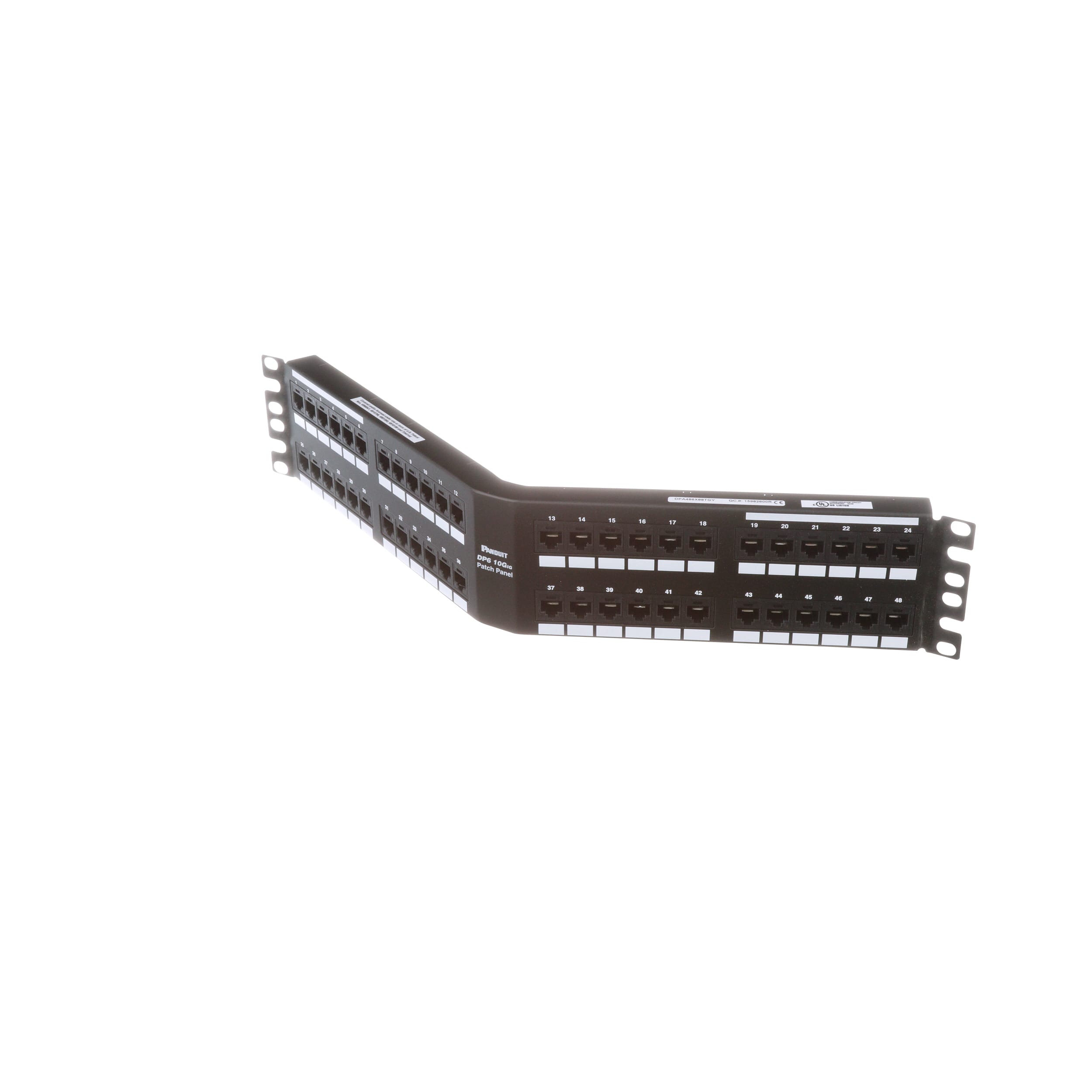 Panneau de brassage à enfichage, 48 ports, coudé, noir
